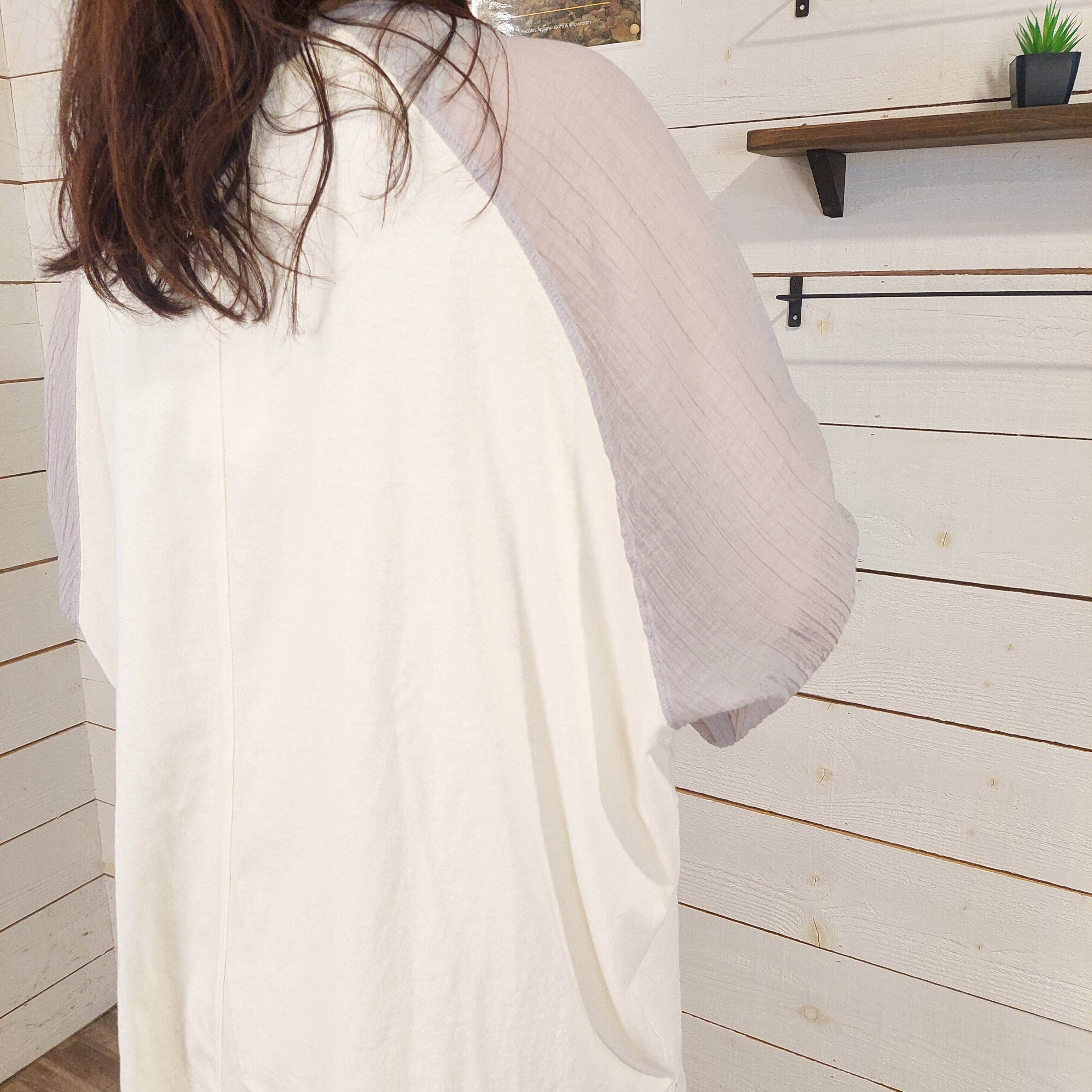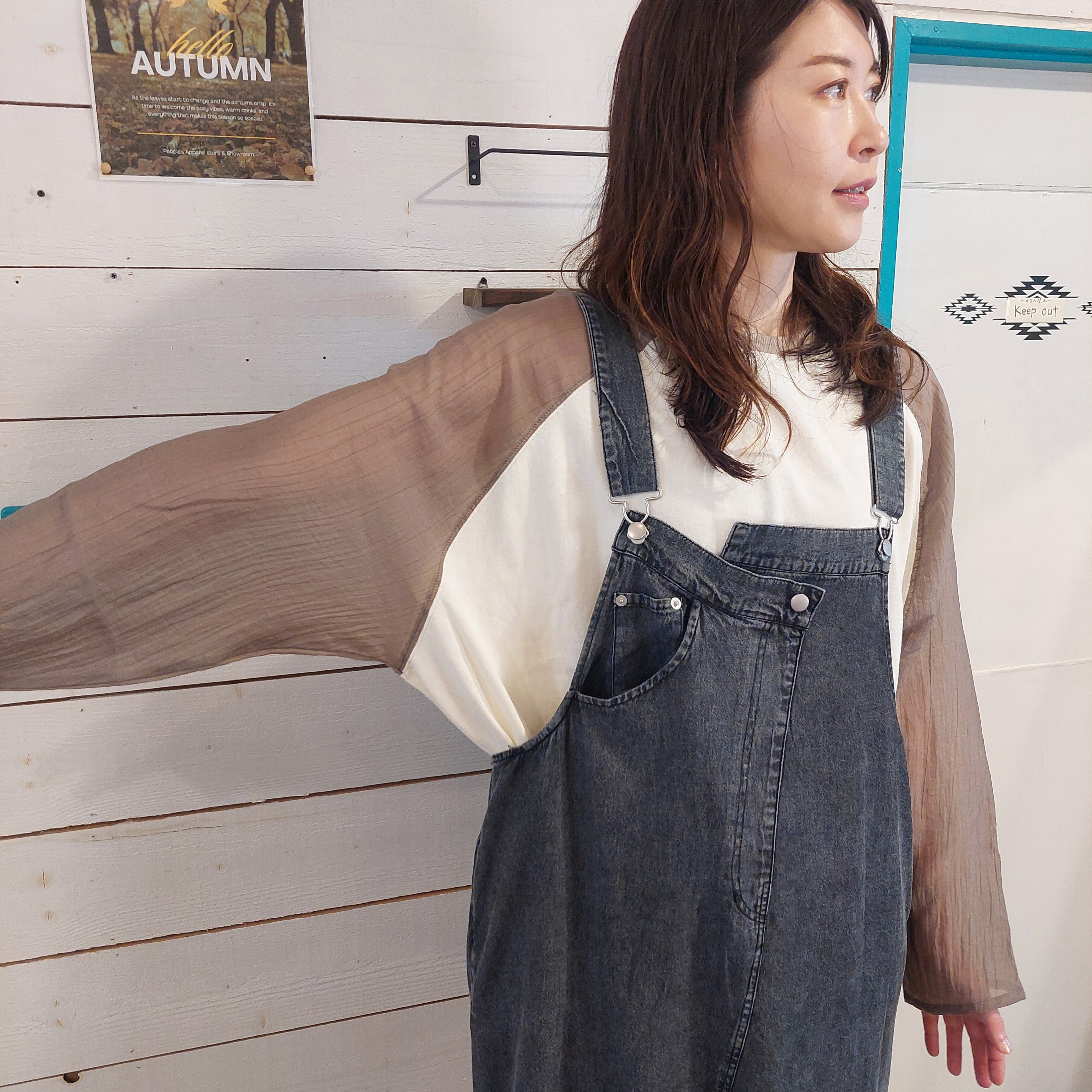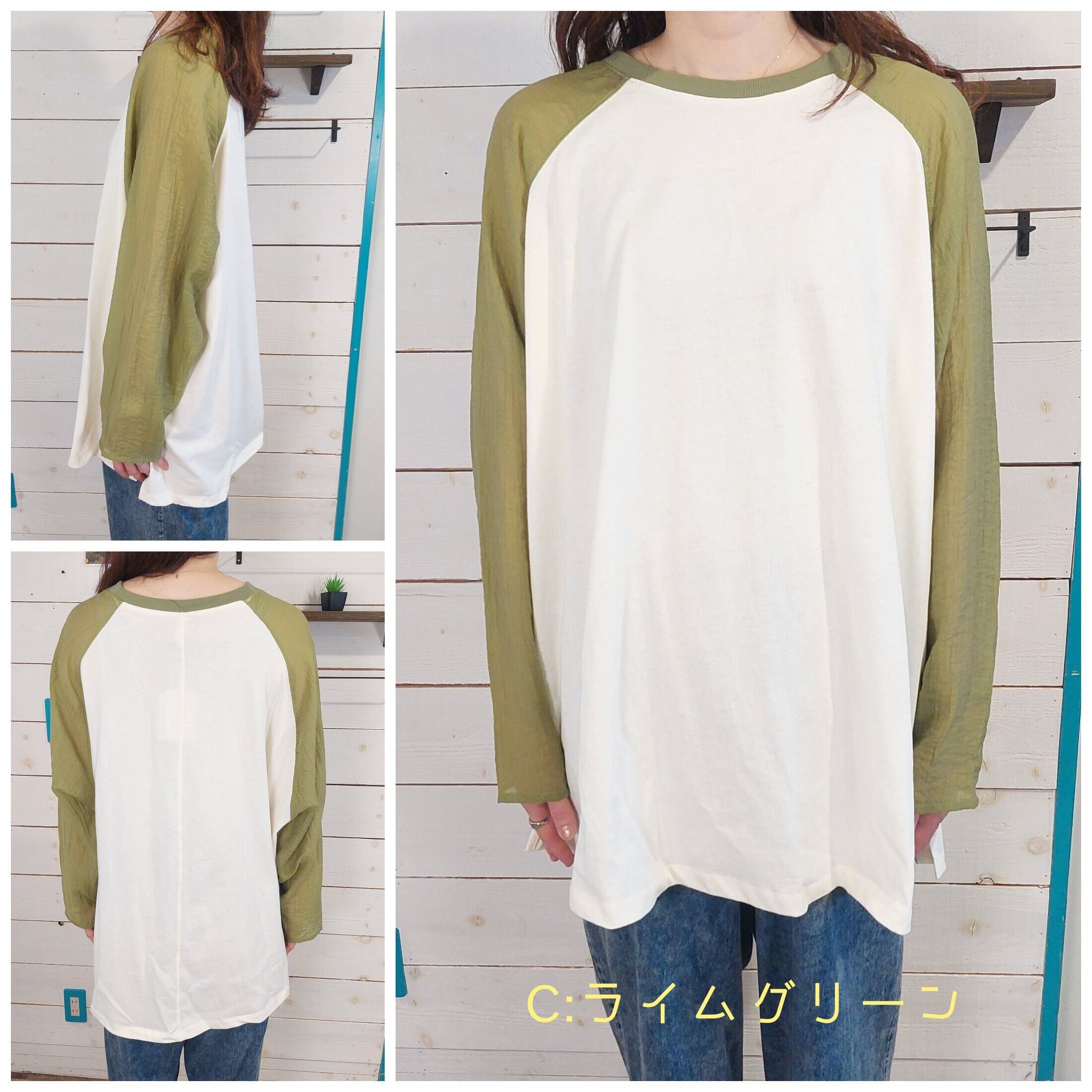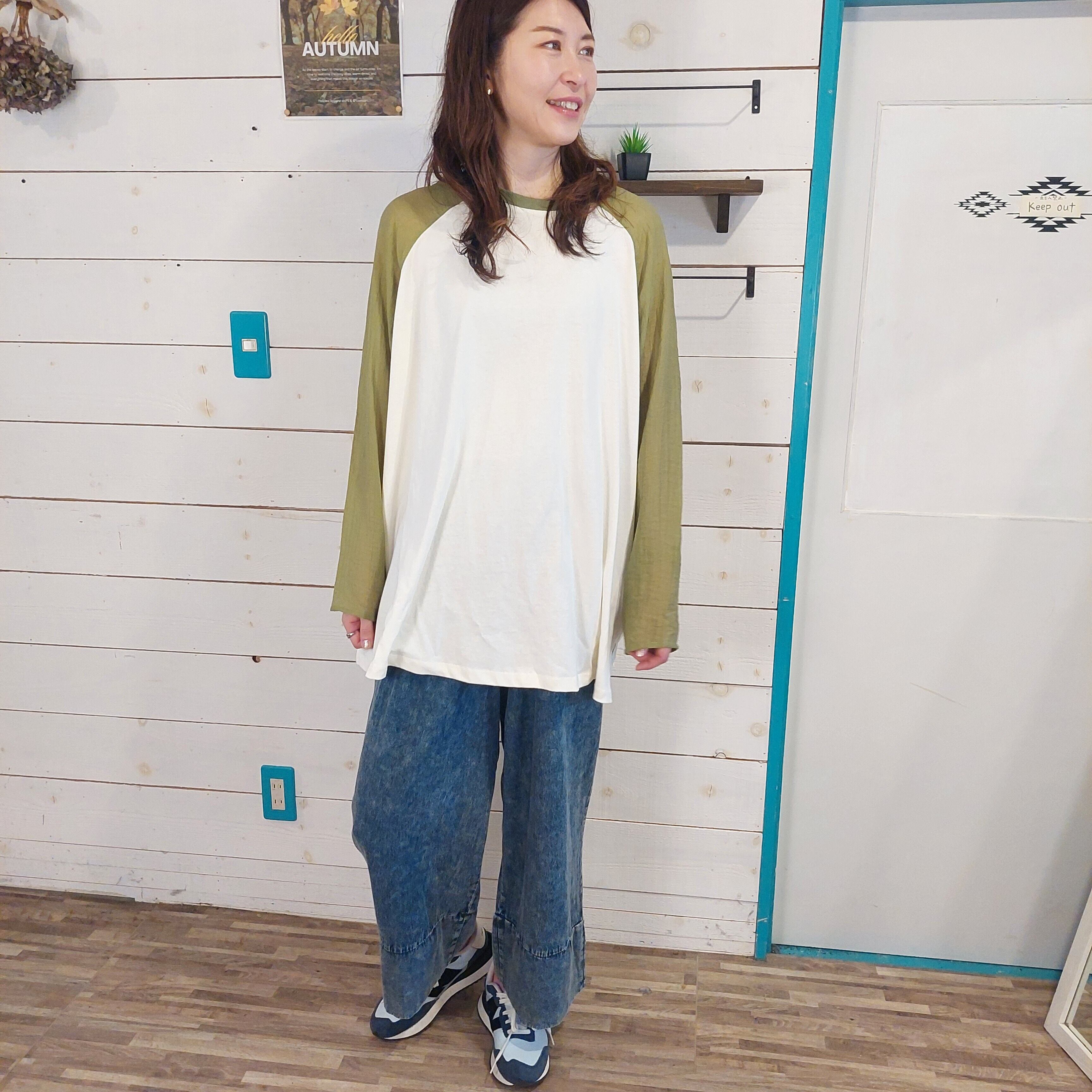 このラグランスリーブプルオーバーは、袖にシアー素材を使用しており、透け感が涼しげで軽やかな印象を与えます。ゆったりとしたシルエットながらもカジュアルの中に華やかさが漂い、どんなスタイルにも合わせやすい1枚です。普段使いからちょっとしたお出かけまで幅広いシーンで活躍するアイテムです。