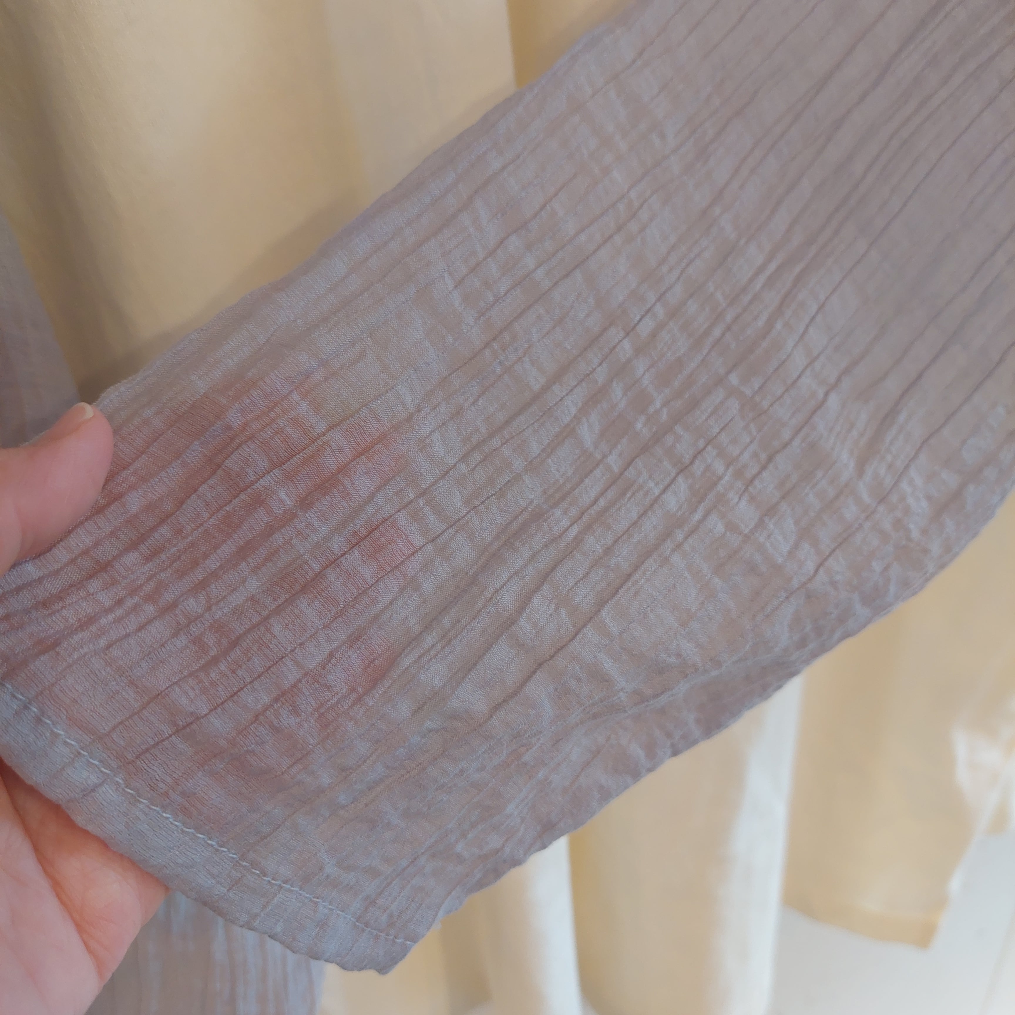 しばらく干していただくか、アイロンがけで解消されますので不良品には該当致しません。