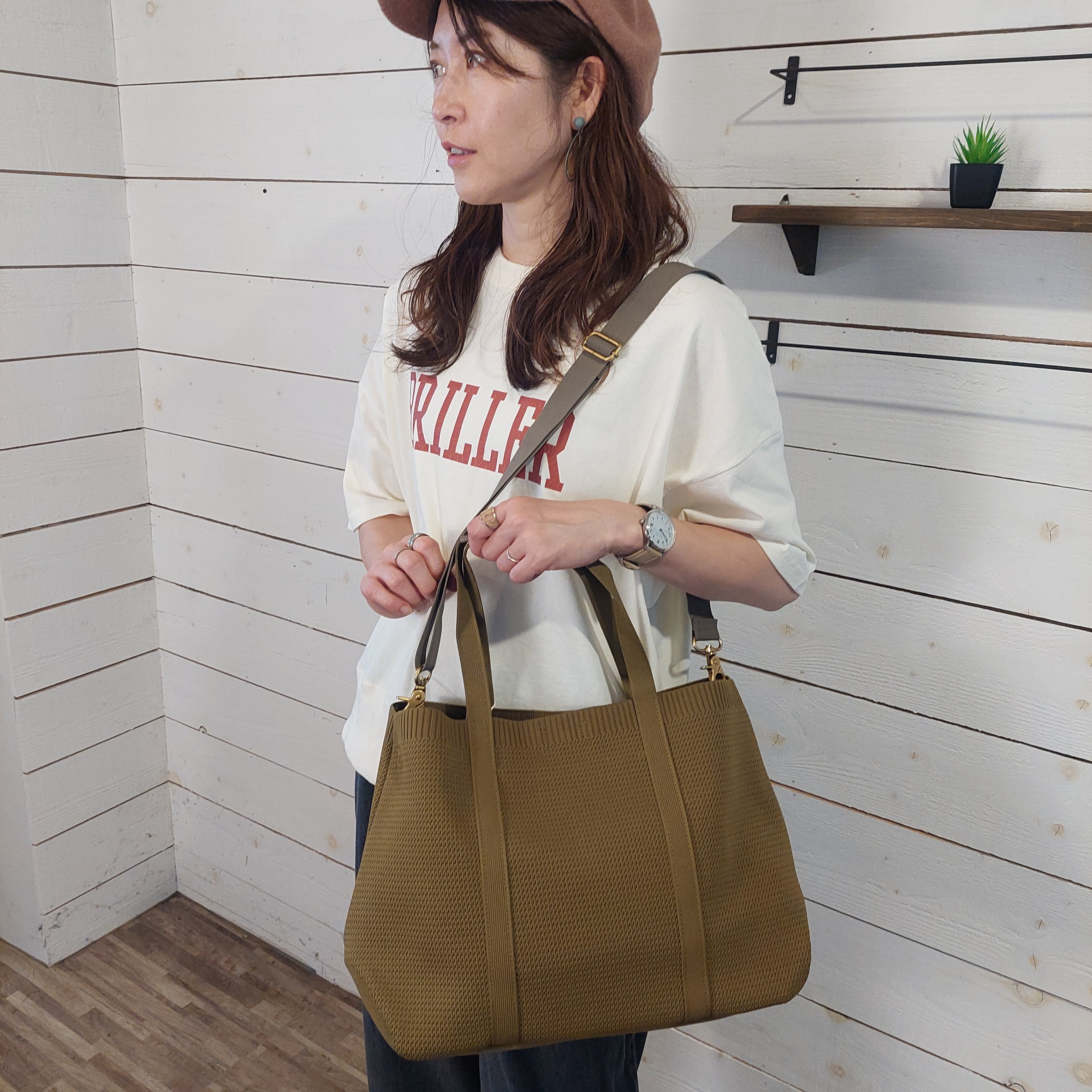 ・トートでもショルダーでもOKな2WAY仕様/長めハンドルで肩掛けも○