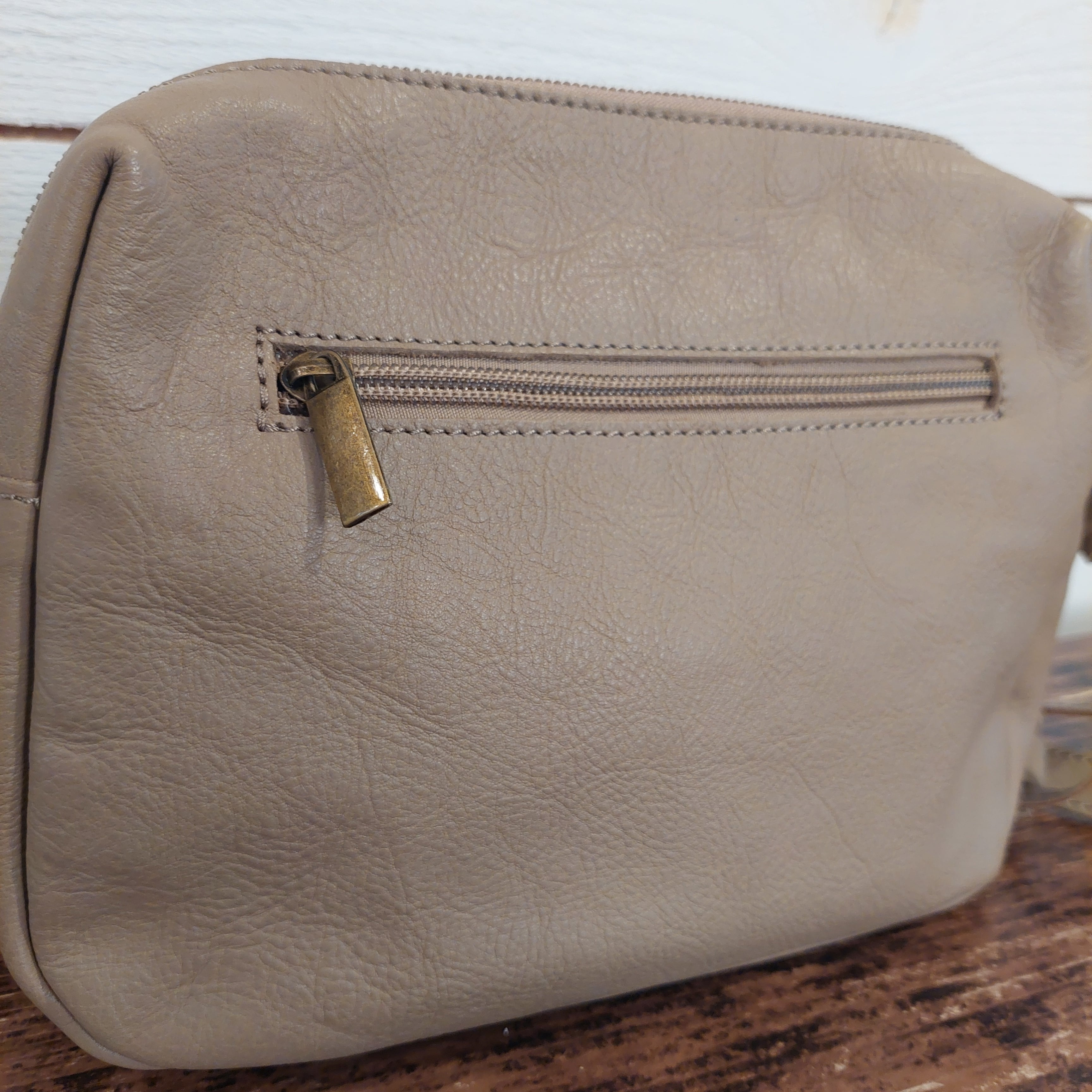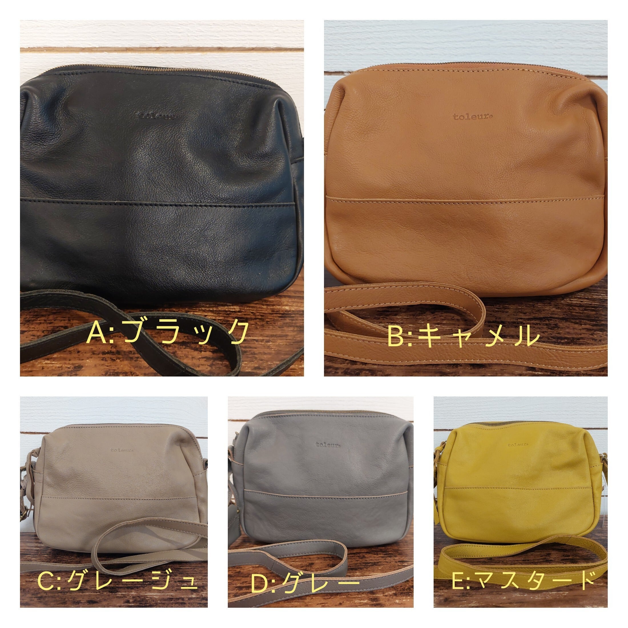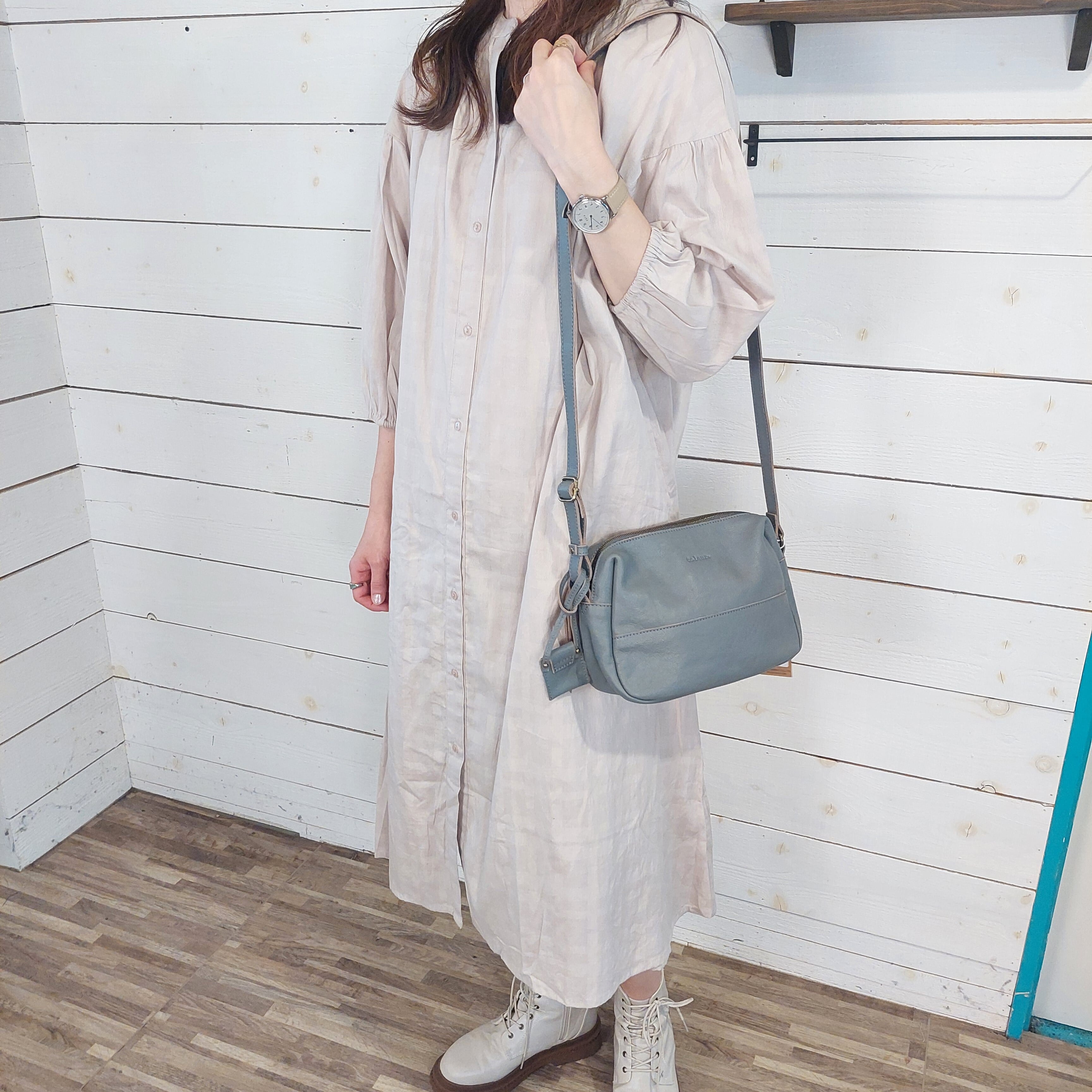 中央の切り替えラインがポイント上質レザーが引き立つ、ミニマルなショルダーバッグ。