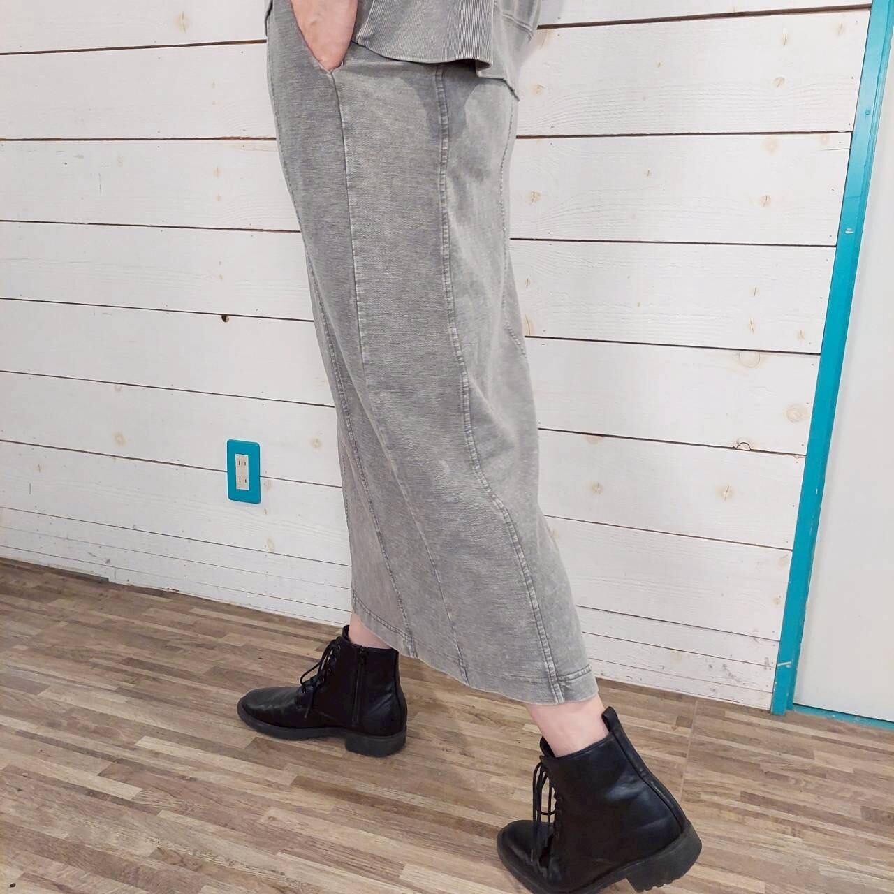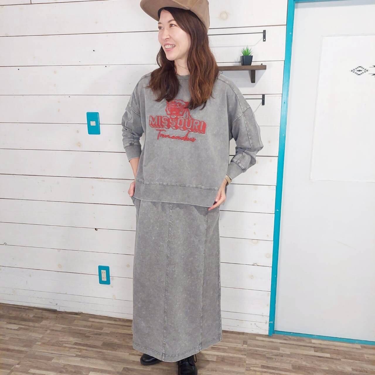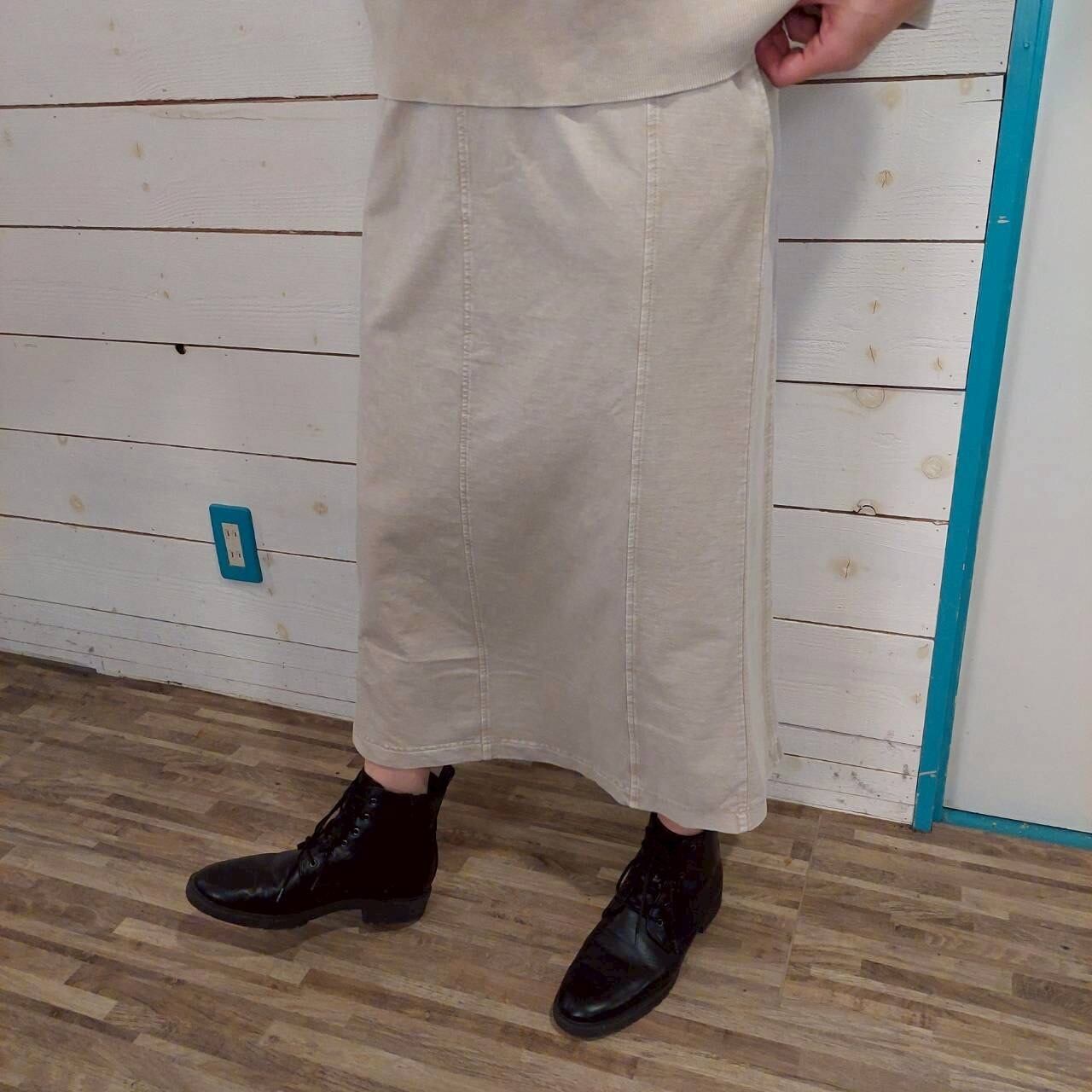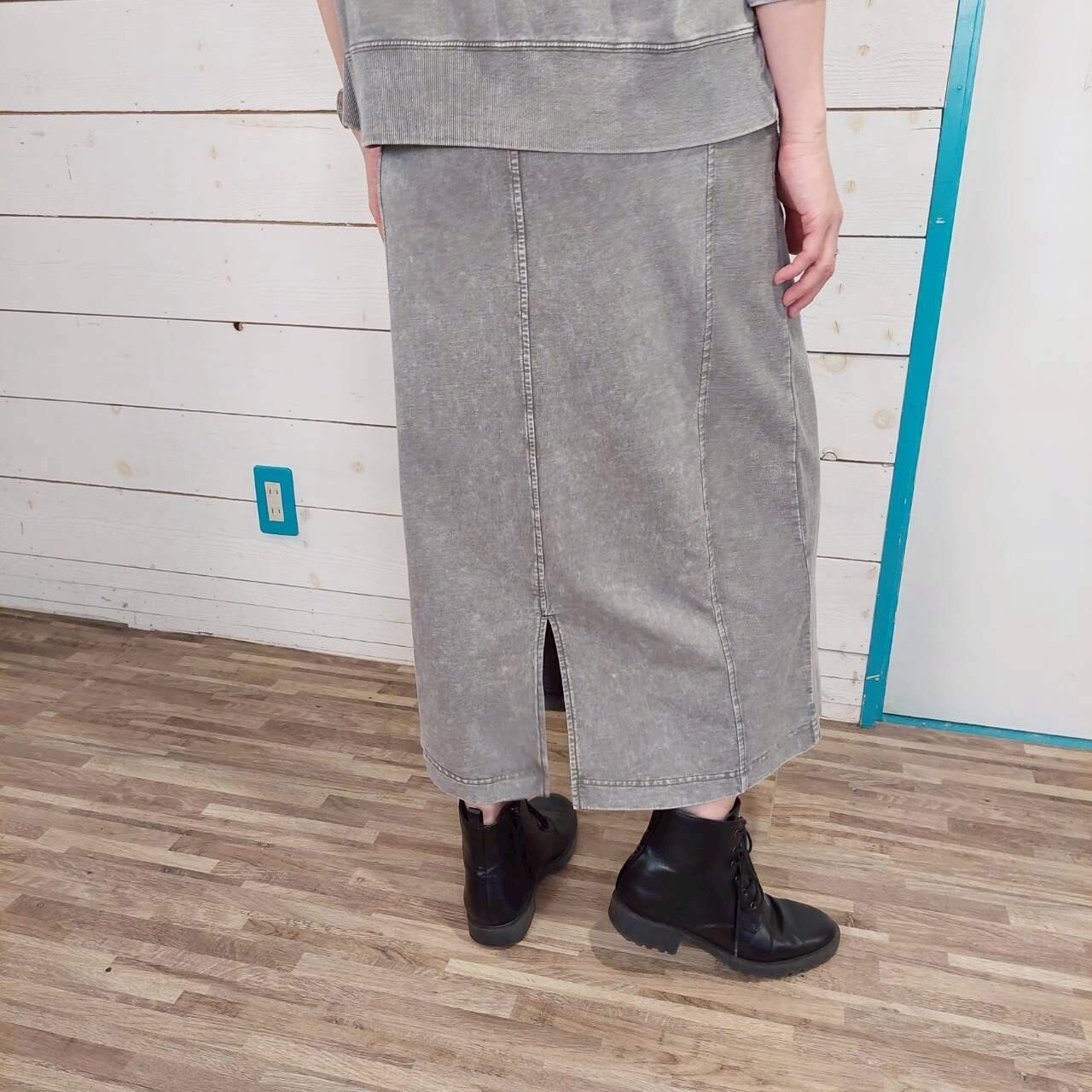 KAKELAの切り替えロングタイトスカートは、裏毛ピグメントを使用し、ビンテージ加工が施された個性的な一着です! 綺麗なラインが魅力的で、どんなトップスとの相性も抜群。チラリとのぞくワンポイント刺繍が、さりげないアクセントになっているのも嬉しいポイントです。カジュアルな日常使いはもちろん、リラックスしたお出かけにも最適なアイテムです!