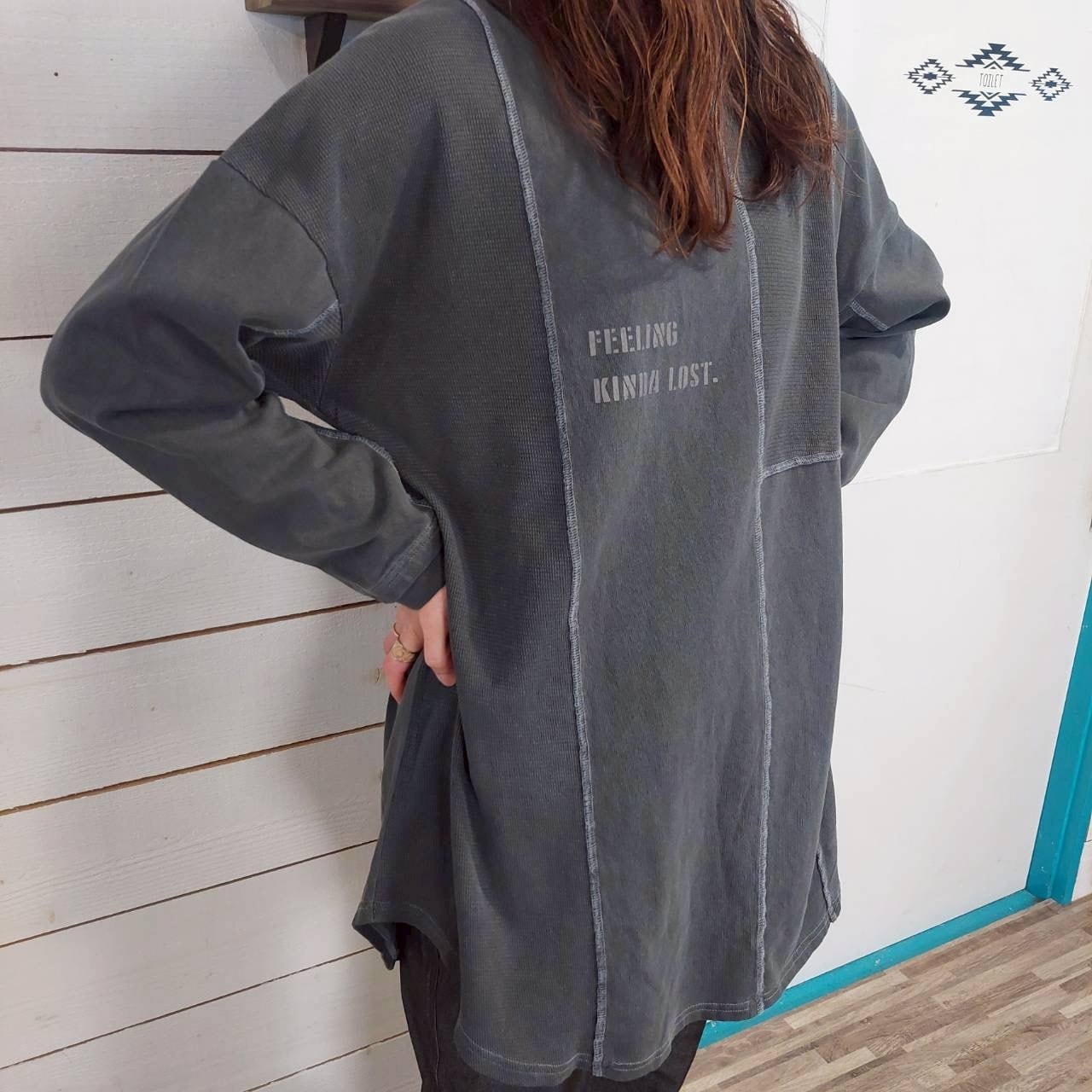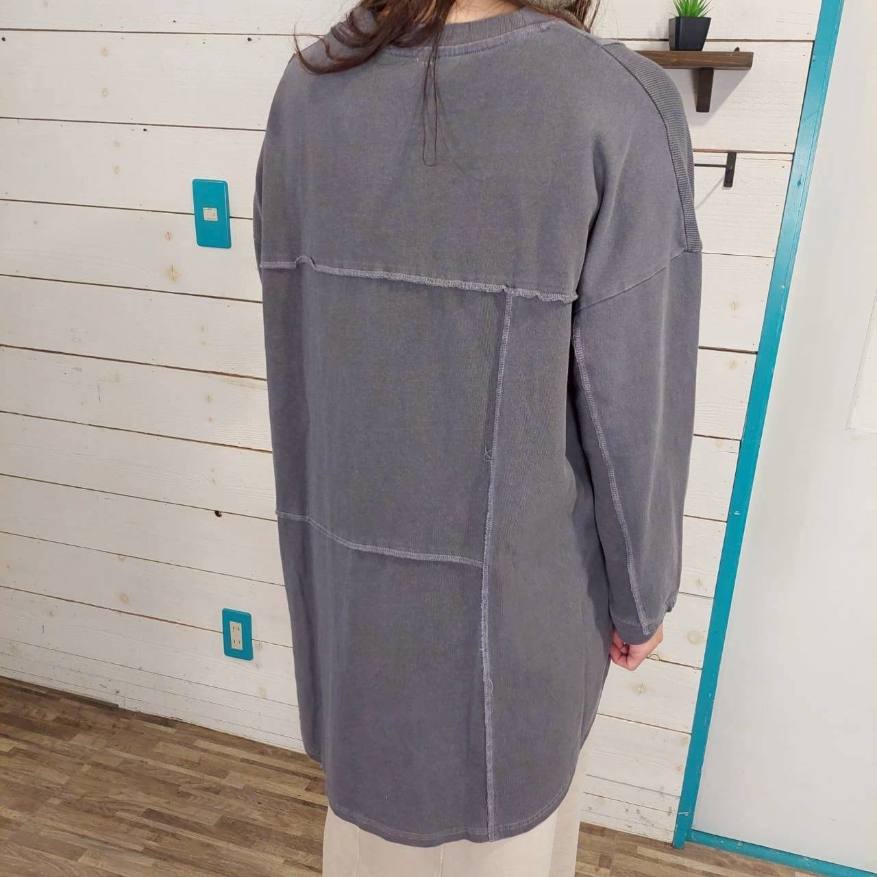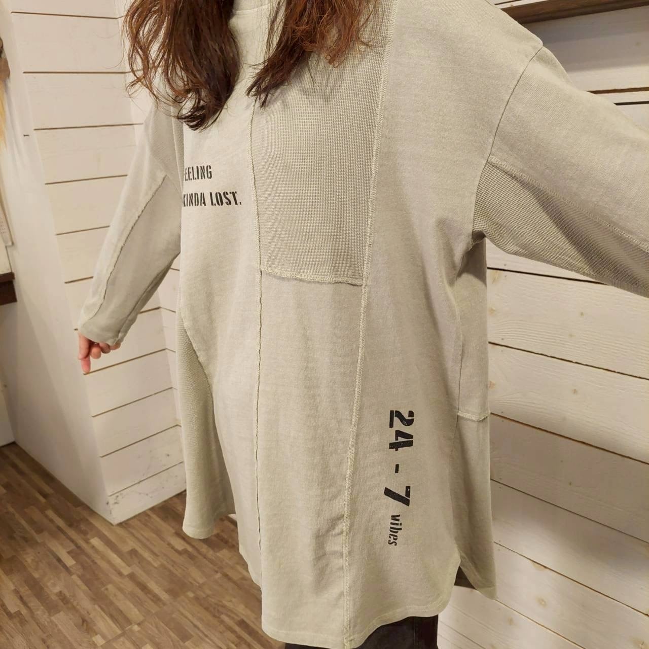 このパッチワークチュニックは、ヴィンテージの古着のような風合いで、さっと着るだけでこなれ感を演出できるアイテムです! 凹凸のある生地の切り替えがアクセント。さらにネックと袖はリブでしっかり引き締まるデザインでバランスよく着こなすことができます。カジュアルなスタイルにも、ちょっとしたお出かけにもぴったりな一着です!
