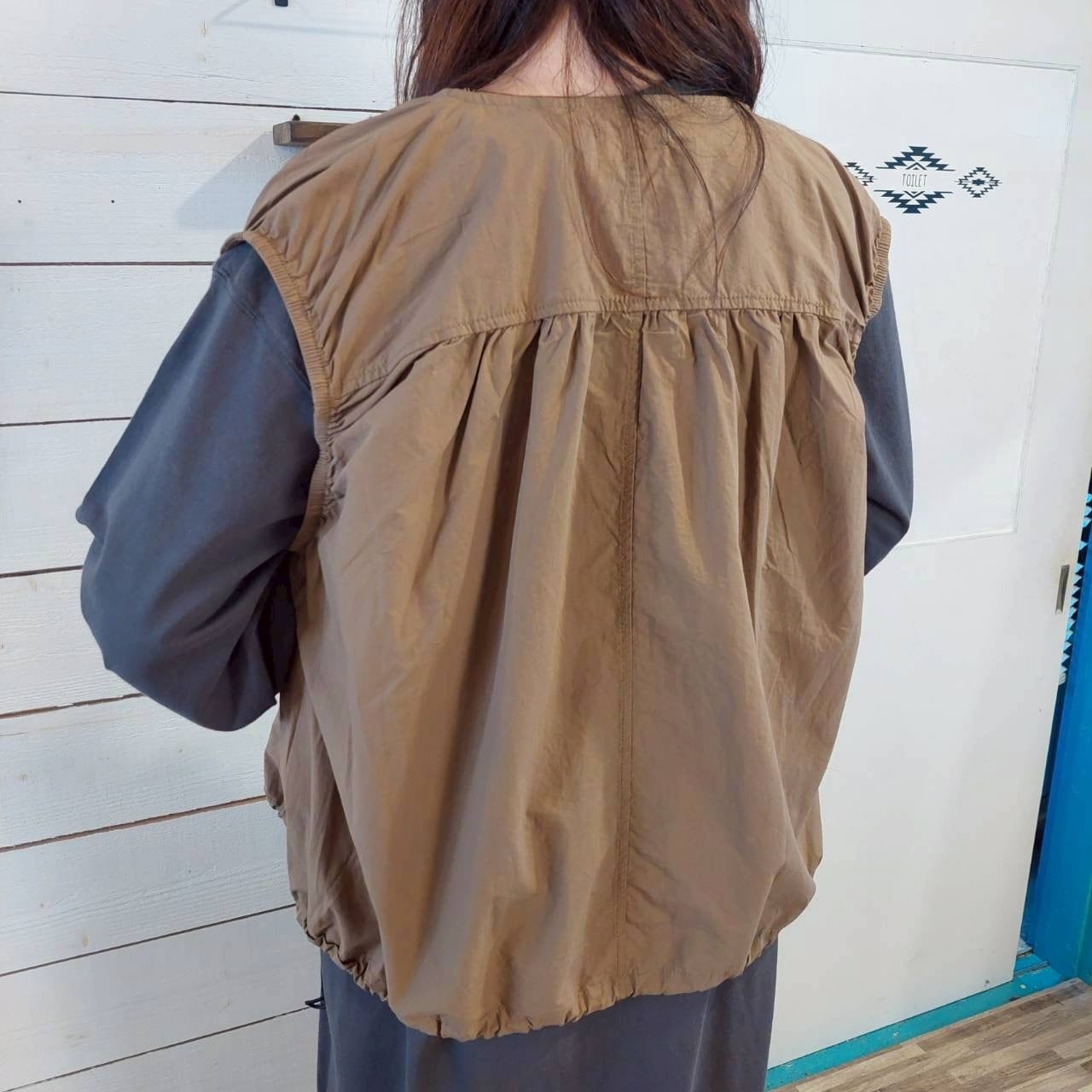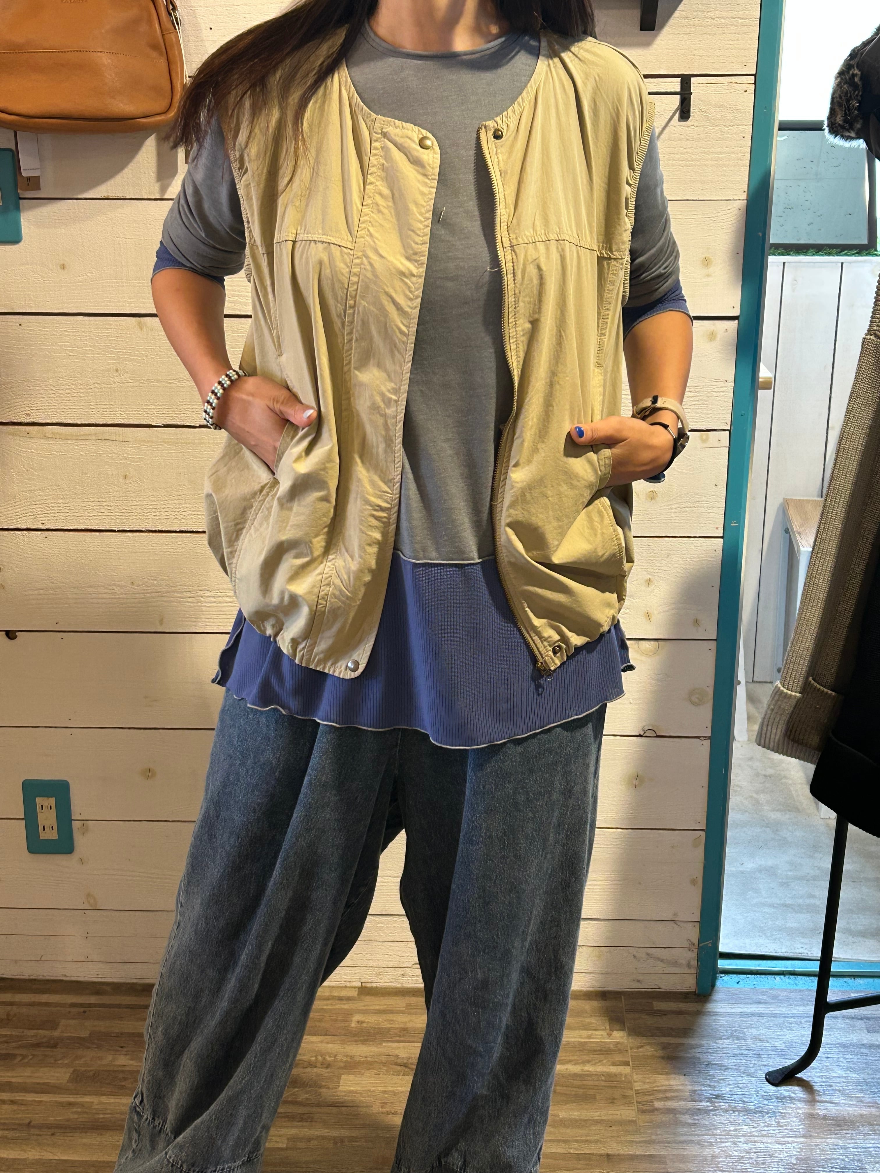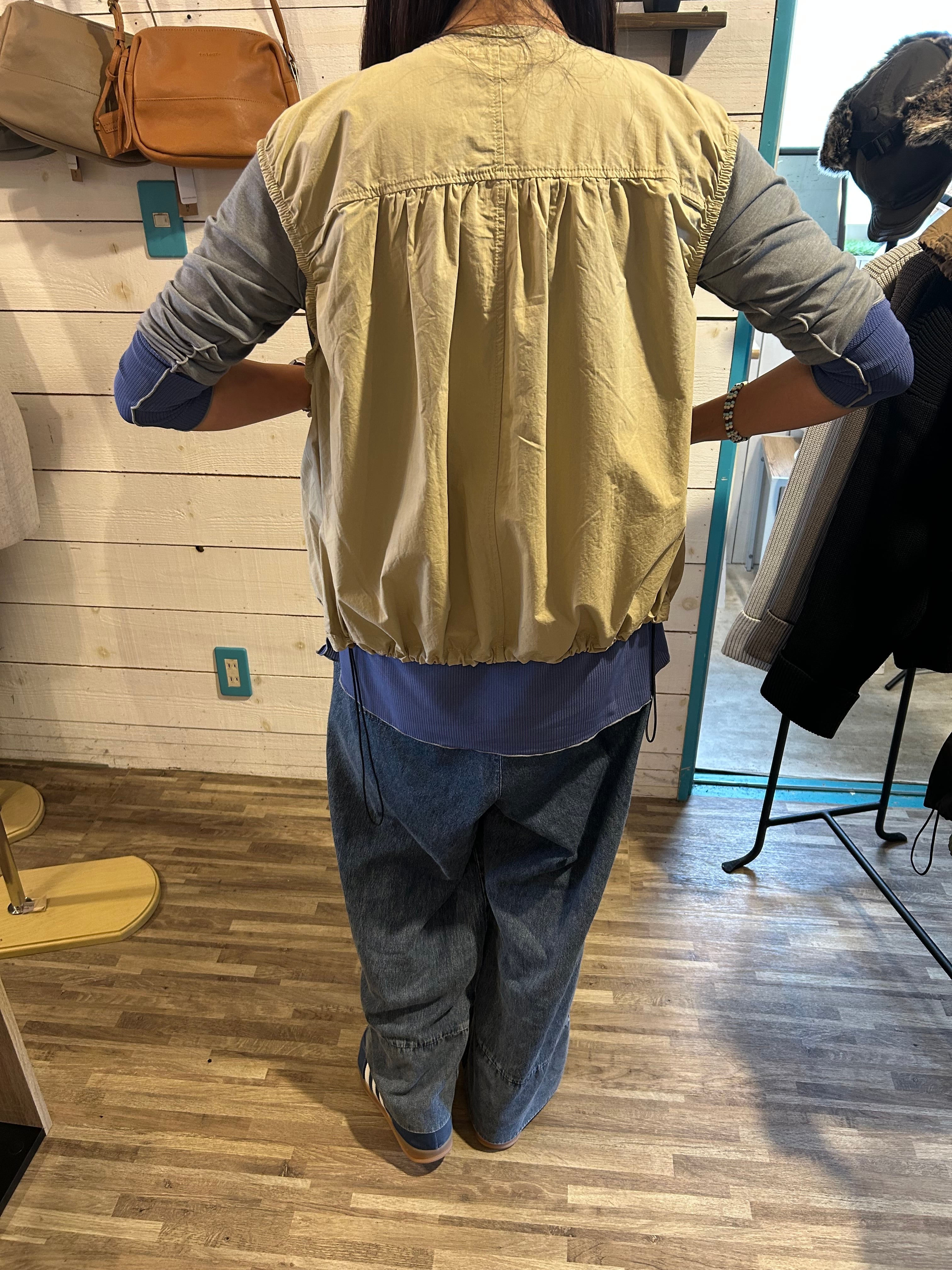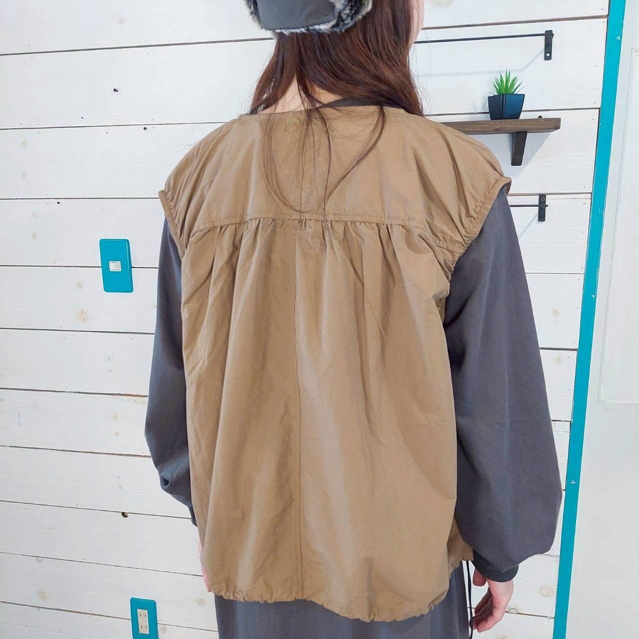 軽やかな着心地が特徴のコットンタイプライターギャザージップベスト。柔らかなコットン素材が心地よく、着こなしの幅を広げてくれます。ギャザーが施されたデザインが、女性らしさを引き立て、さりげないおしゃれ感を演出します。ジッパー付きで、気軽に着脱ができるため、カジュアルにもきれいめにも幅広く活躍する一枚です!