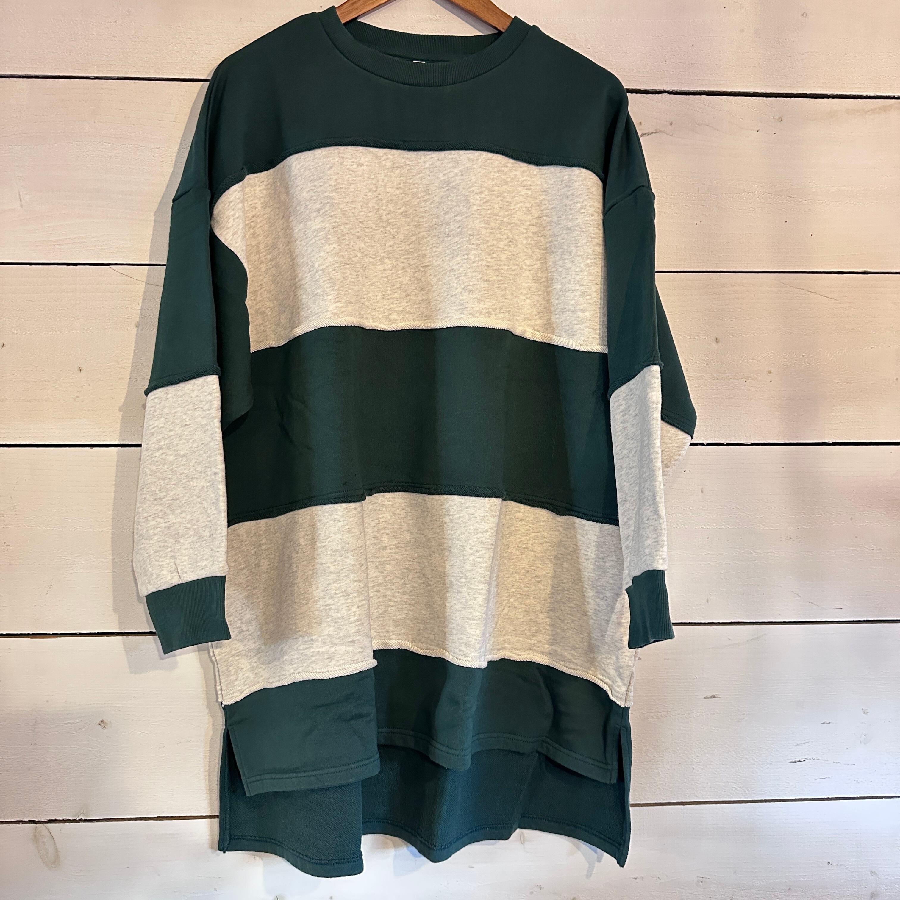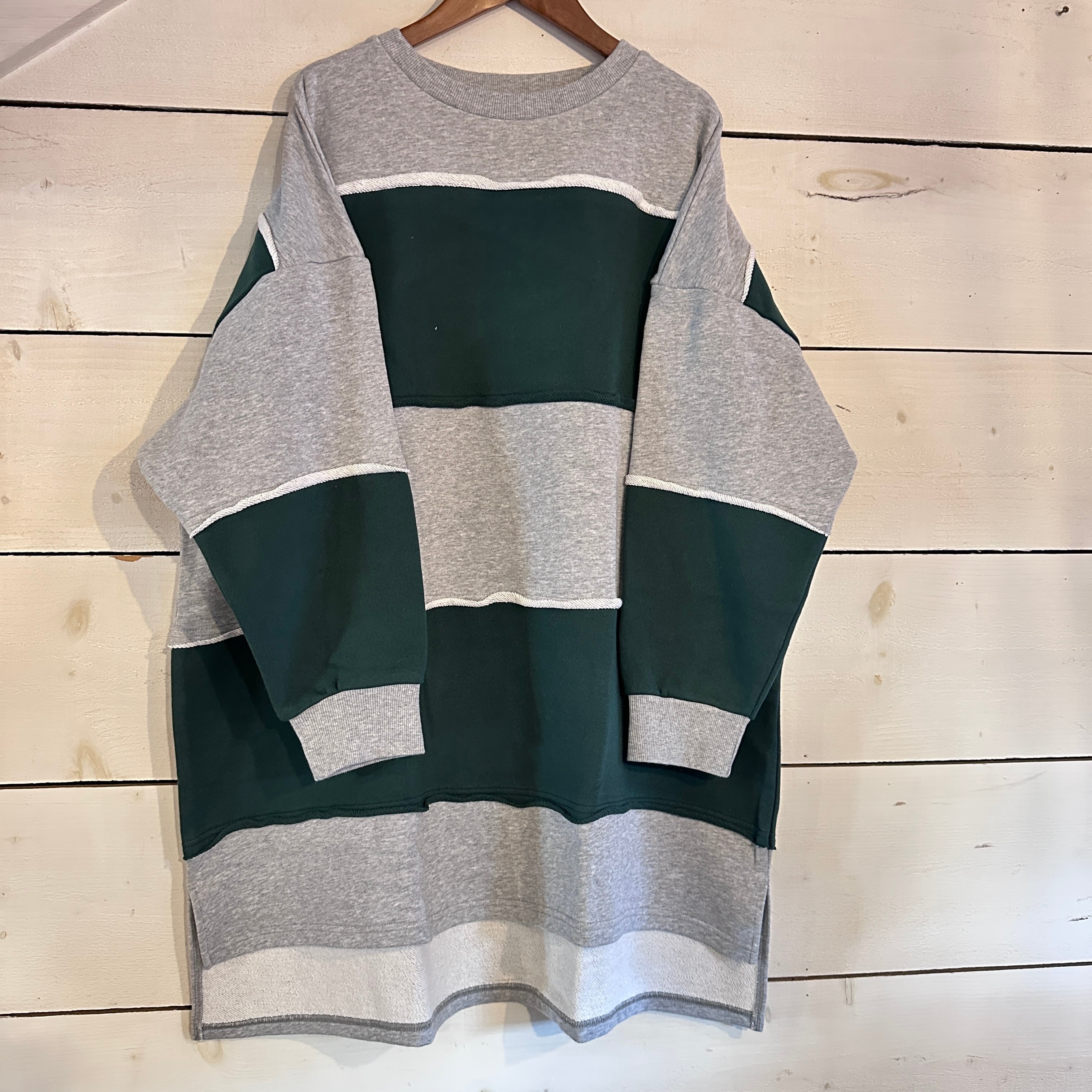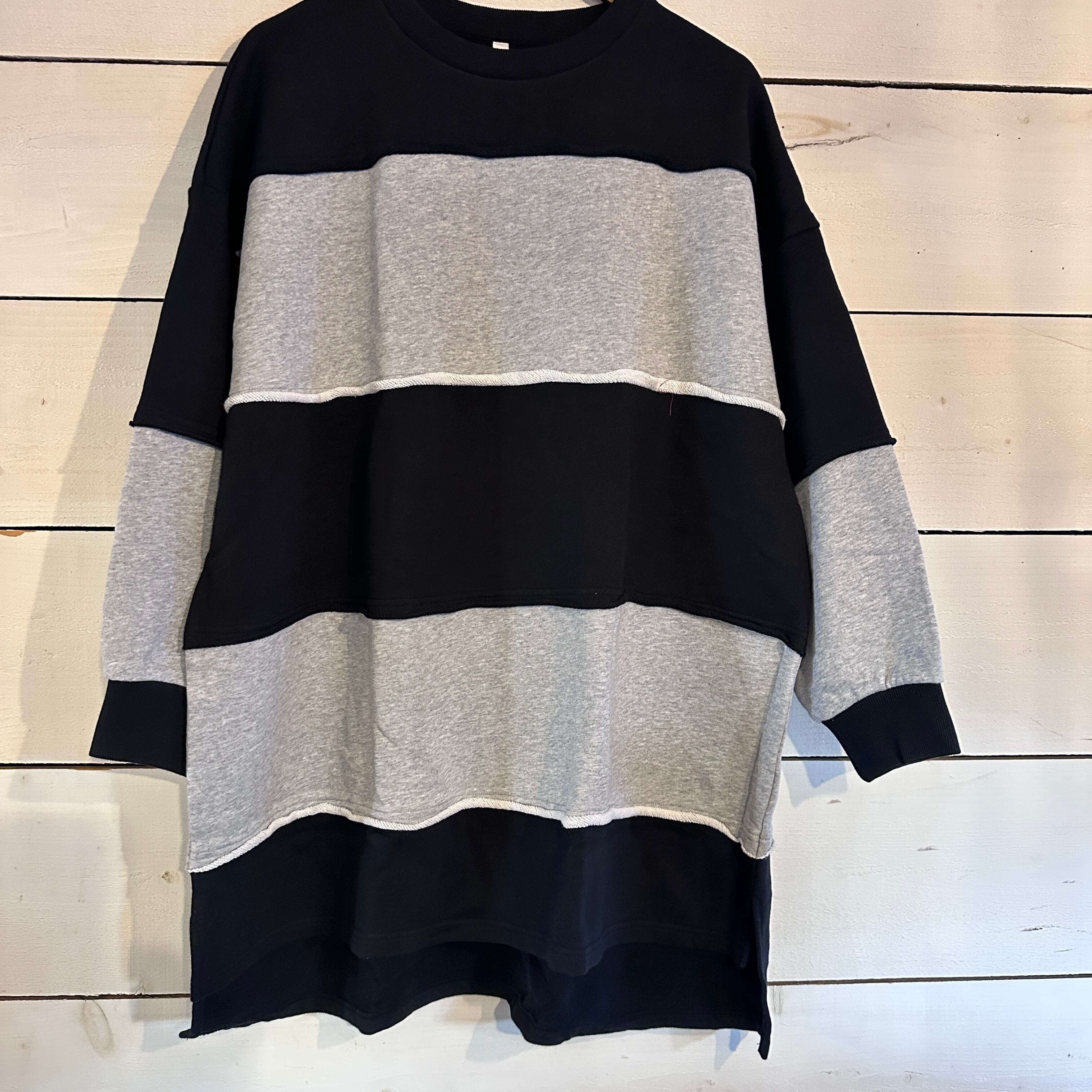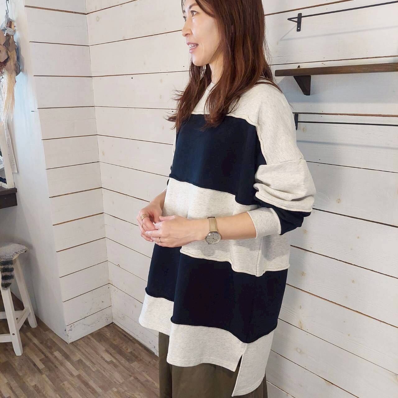 軽やかでおしゃれなヘビーウェイト裏毛ボーダー切替チュニック。オーバーサイズのデザインがゆったりとしたシルエットを実現し、配色カラーが可愛い印象を与えます。シンプルながらも個性的なボーダー切替がスタイルにアクセントを加え、普段使いからお出かけまで幅広く活躍します!この一着で、リラックスした雰囲気を演出し、さまざまなコーディネートにマッチします。