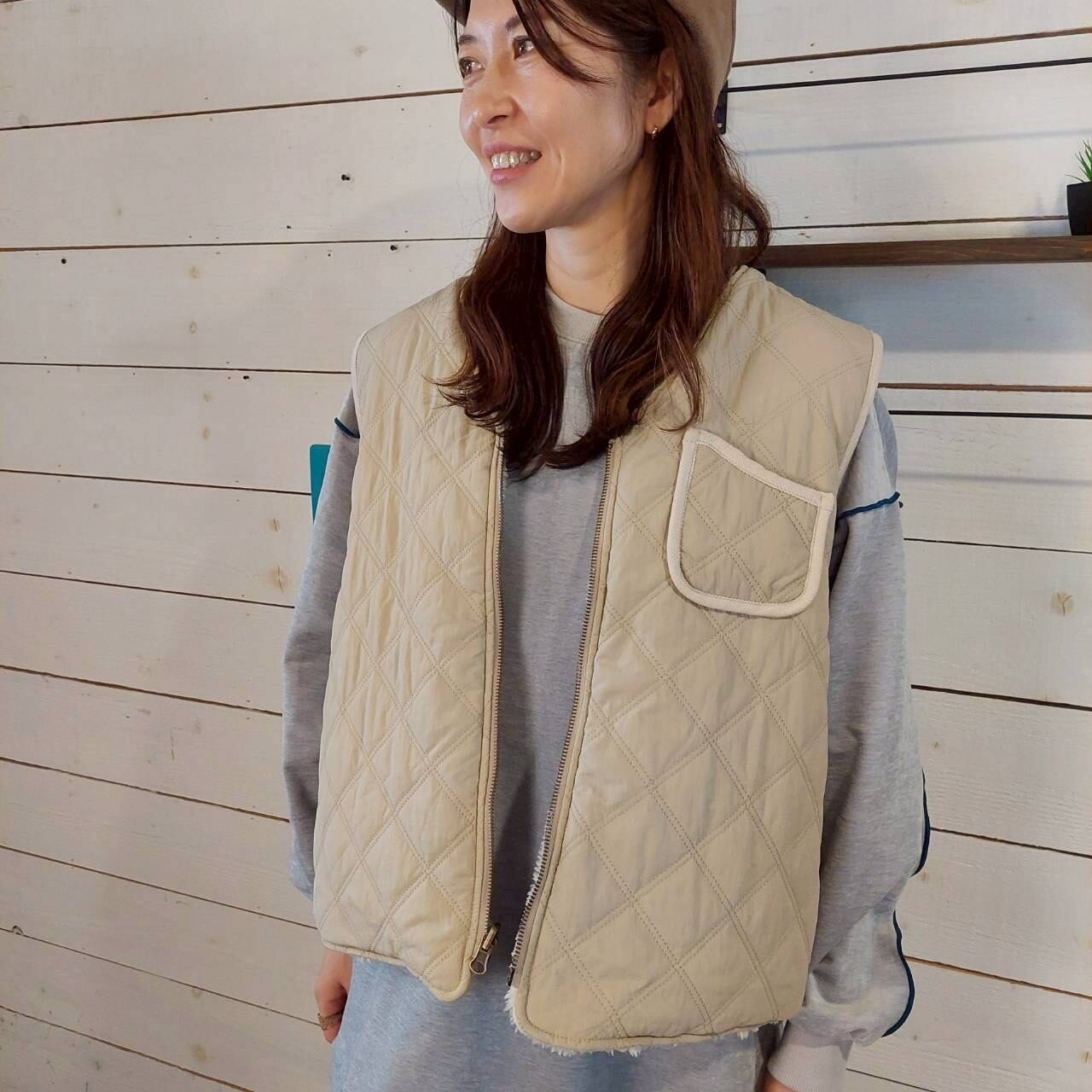 軽やかでおしゃれな型おしボア×キルティングリバーシブルベスト。ボアとナイロンを使用した両面仕様が特徴で、可愛い模様のボア面がスタイリングに遊び心をプラスします!ナイロンのキルティング面は、シンプルながらも上品な輝きを放ち、さまざまなコーディネートに対応。季節を問わず活躍する一着です!リラックスしたオシャレをお楽しみいただけます。