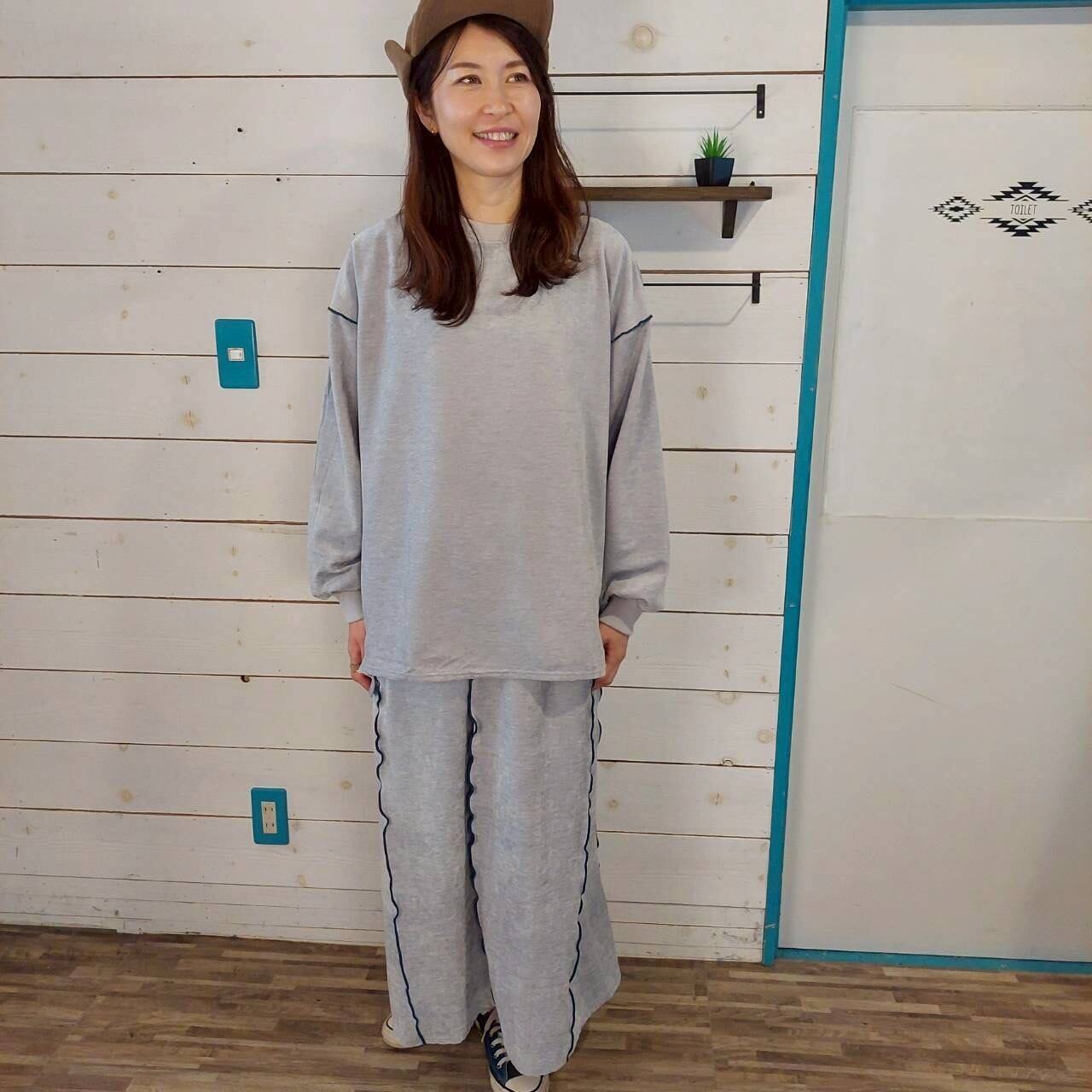 ポップなカラーの配色メロウロックステッチが施され、目をひく一着です。