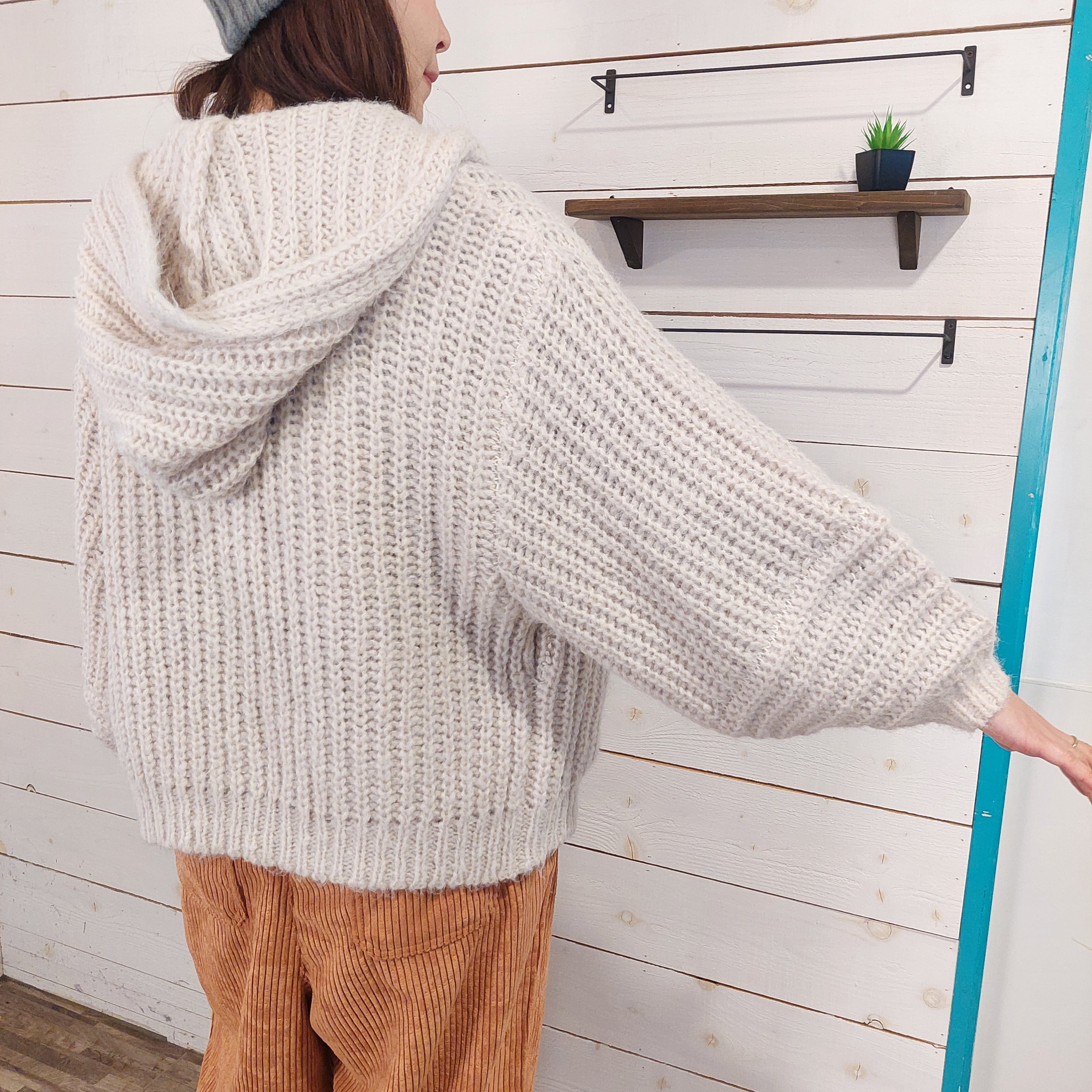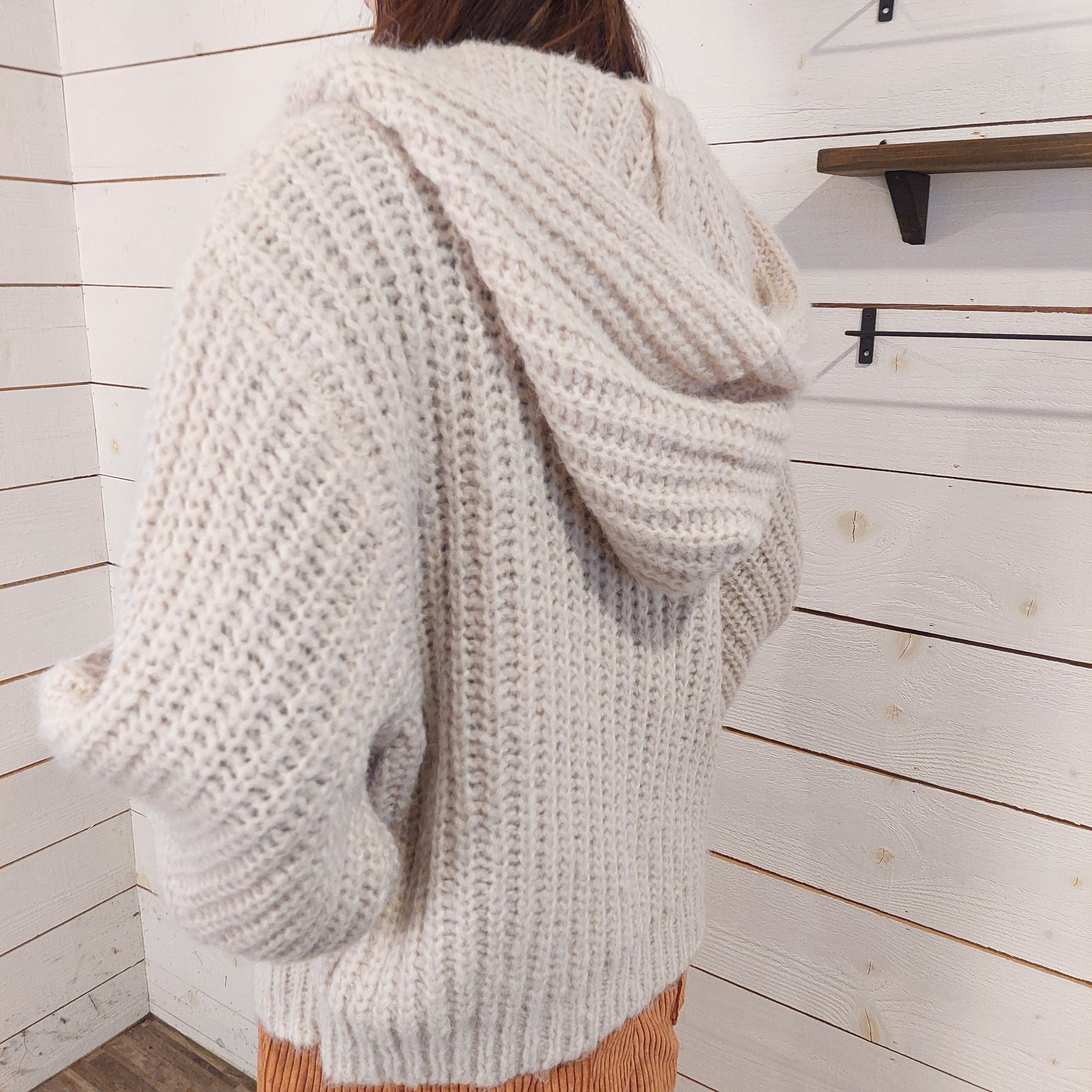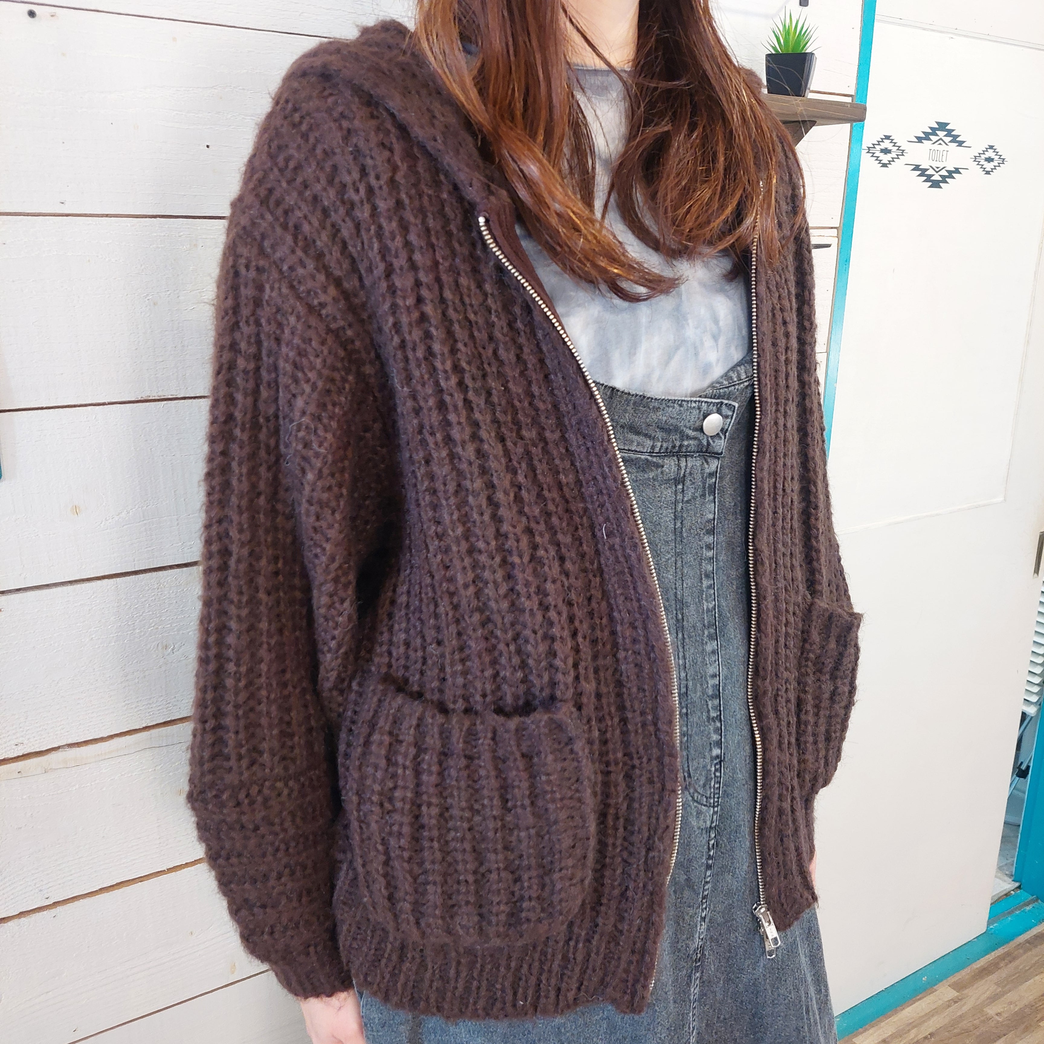 カジュアルなスタイルを楽しみつつも、洗練された印象を与えるデザインが特徴です。ざっくりと編まれたニット素材により、リラックス感が漂います。フード付きのデザインがほど良くラフさをプラスし、コーディネートにぬけ感を演出します。シンプルながらもこなれ感のあるスタイルで、デイリーユースにも最適です。トレンドを意識したアイテムをぜひ手に入れて、さまざまなスタイリングを楽しんでください!