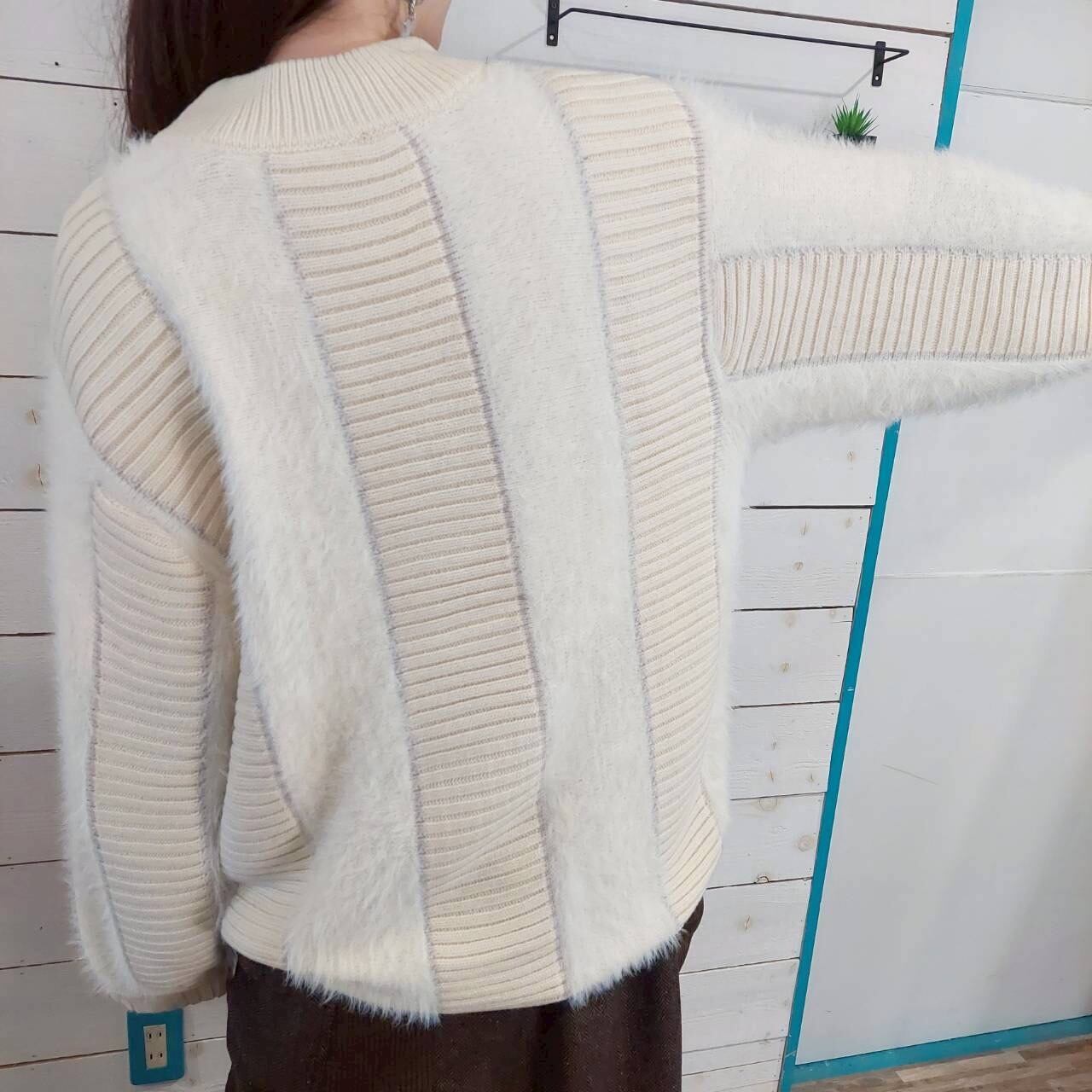シャギーニット切替プルオーバーは、洗練されたデザインが魅力の一着です。切り替え部分のリブデザインが、全体を引き締めつつも、女性らしさを引き立てます。ゆったりとしたシルエットは、気持ちの良い着心地を実現し、リラックスしたひとときを提供します。どんなシーンでも活躍するこのプルオーバーで、スタイリッシュなコーディネートを楽しんでください!