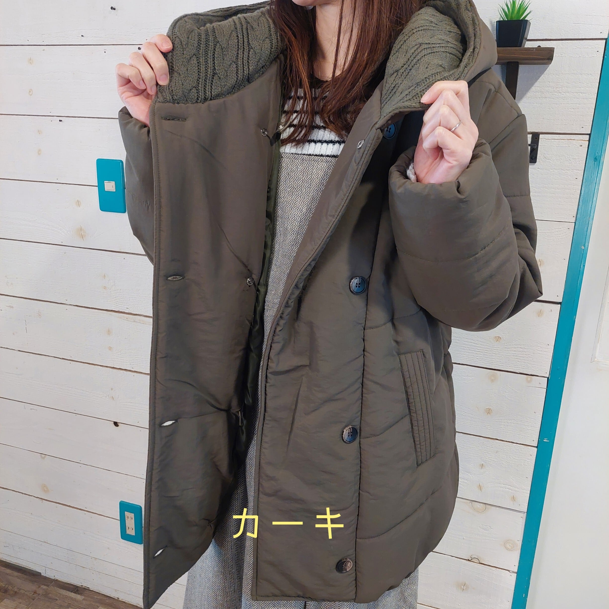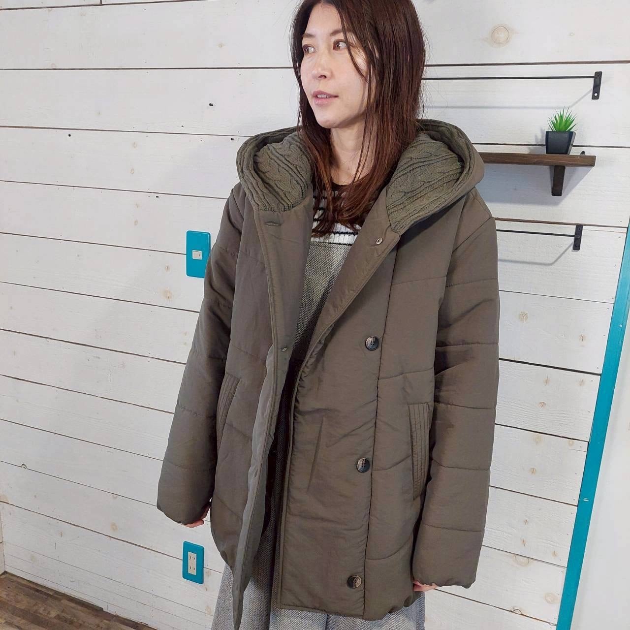 ニットナイロンワッシャーフード裏ニット中綿ブルゾンは、冬の寒さをしっかりと防ぎつつもおしゃれさを両立させた、一着で多彩なスタイルを実現するアイテムです。フードの裏地には温かみのあるニット素材を使用しており、心地よい着心地を提供します。また、ダブルボタン仕様が程よいアクセントとなり、上品な印象を与えます。フード付きなので、風の強い日でも安心です。