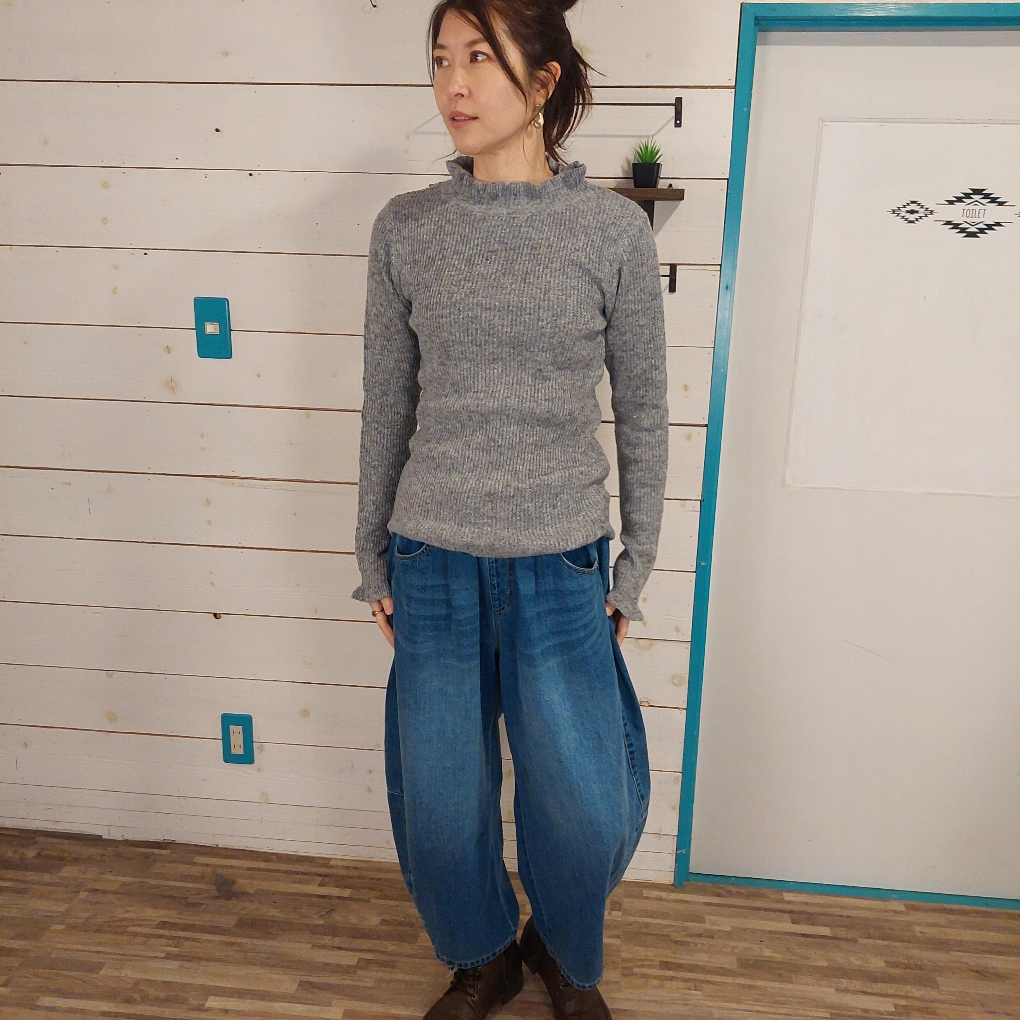 実店舗でのたたみシワ、発送時の折りシワが生じることがあります。