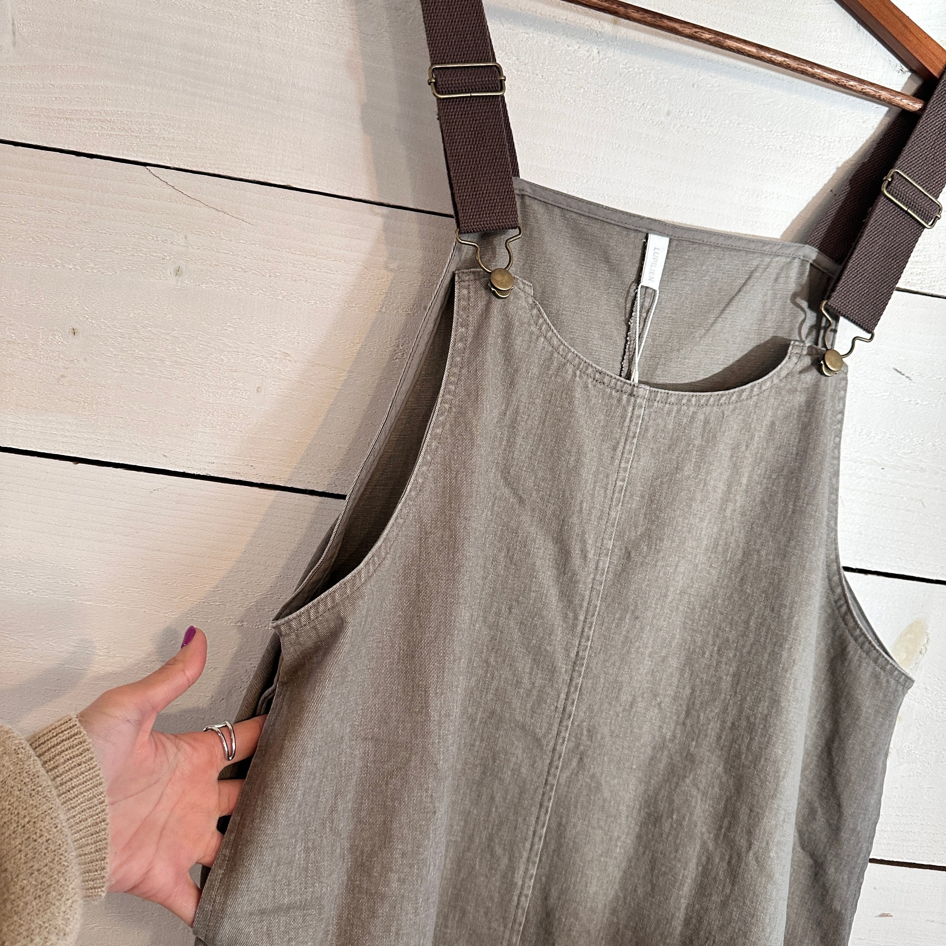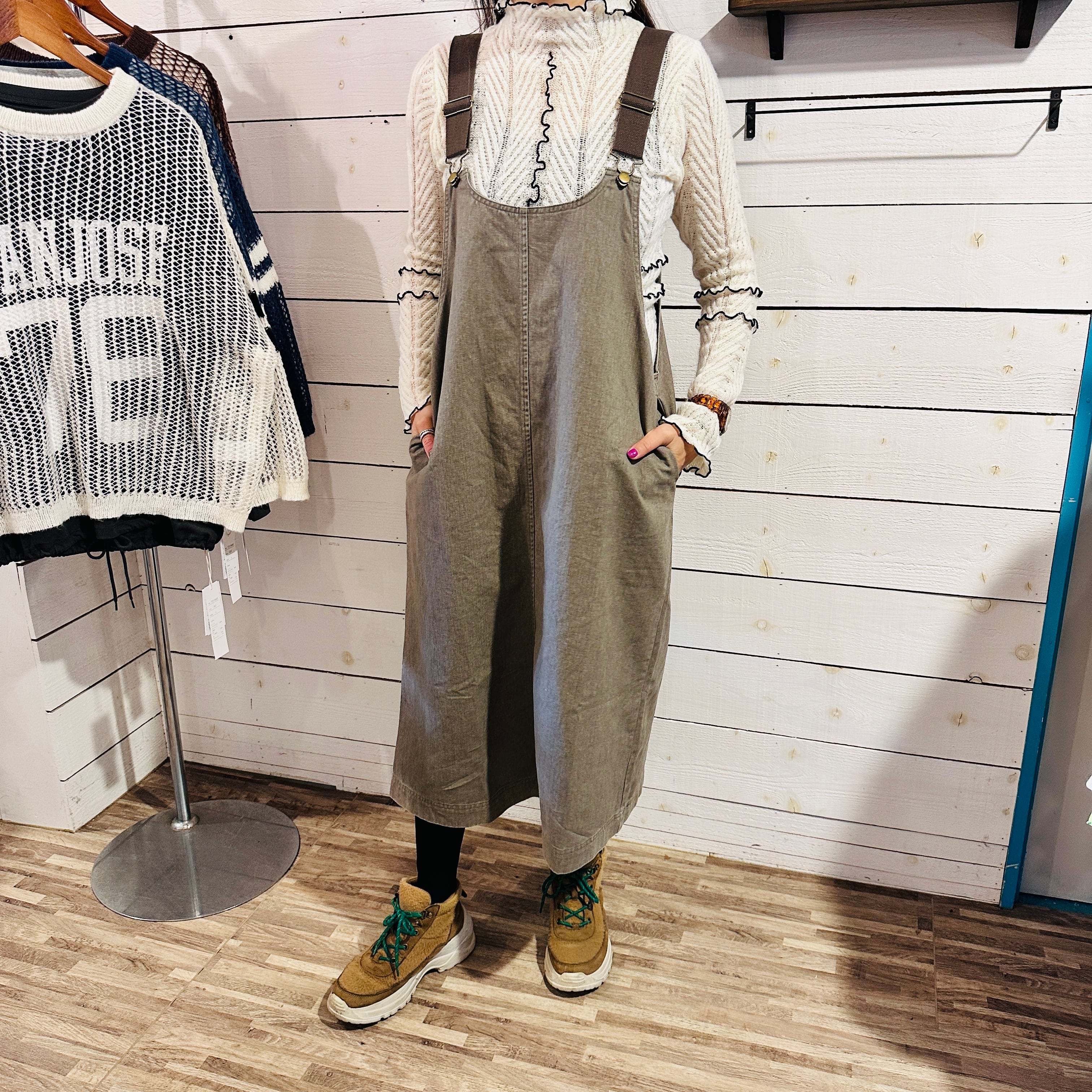 このジャンパースカートは、リラックスしたシルエットが特徴で、カジュアルにもエレガントにもコーディネートしやすい一着。シンプルなトップスやアクセサリーとの相性も抜群で、どんなスタイルにも合わせやすいのが嬉しいポイントです。これからの季節、アウターとの重ね着や小物とのコーディネートを楽しむために、ぜひ取り入れていただきたいアイテムです。