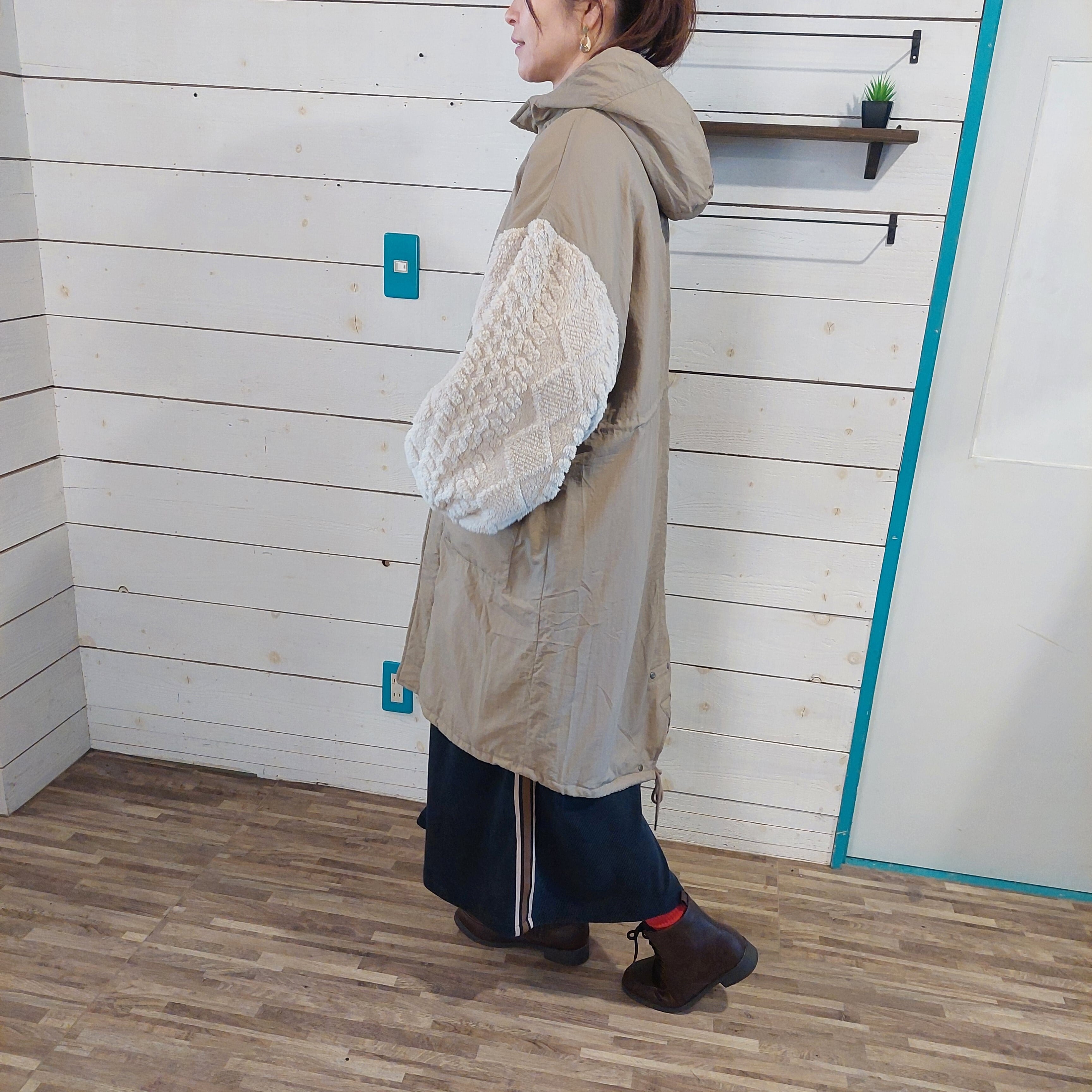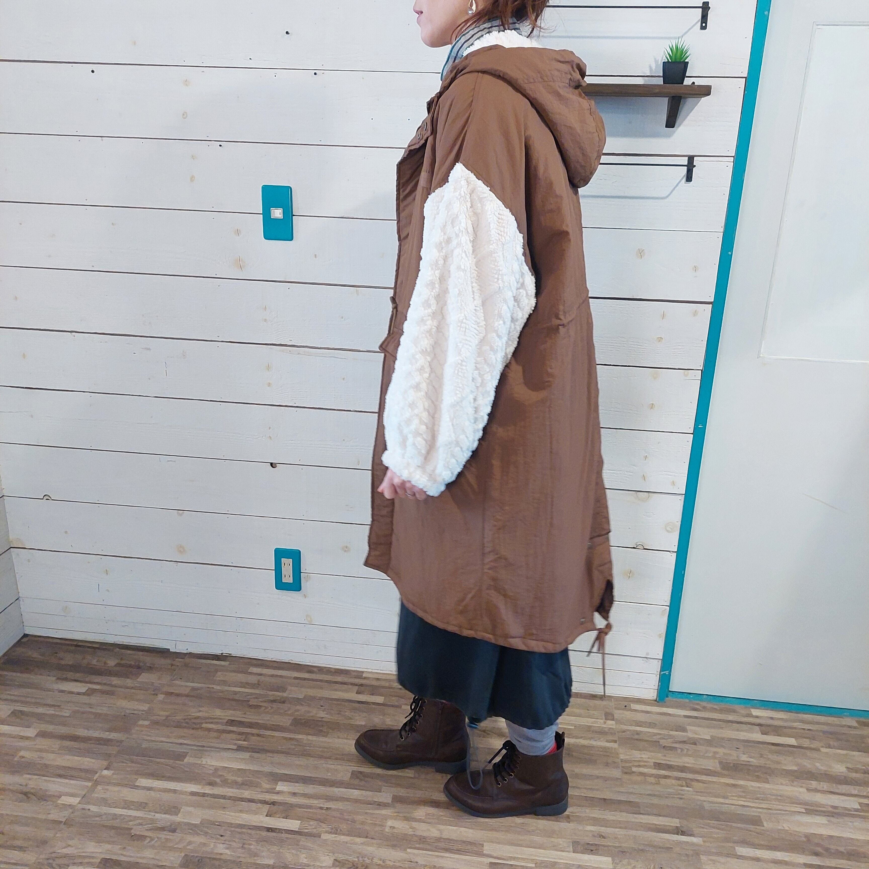 ゆったりとしたサイズ感で、インナーに厚手のセーターを重ねても窮屈さを感じさせません。袖口にはボア素材を使用しており、冷たい風をシャットアウト。見た目にも温もりを感じさせるデザインに仕上がっています。また、長めの着丈は隠したいところをしっかりとカバーし、安心感がアップ!
