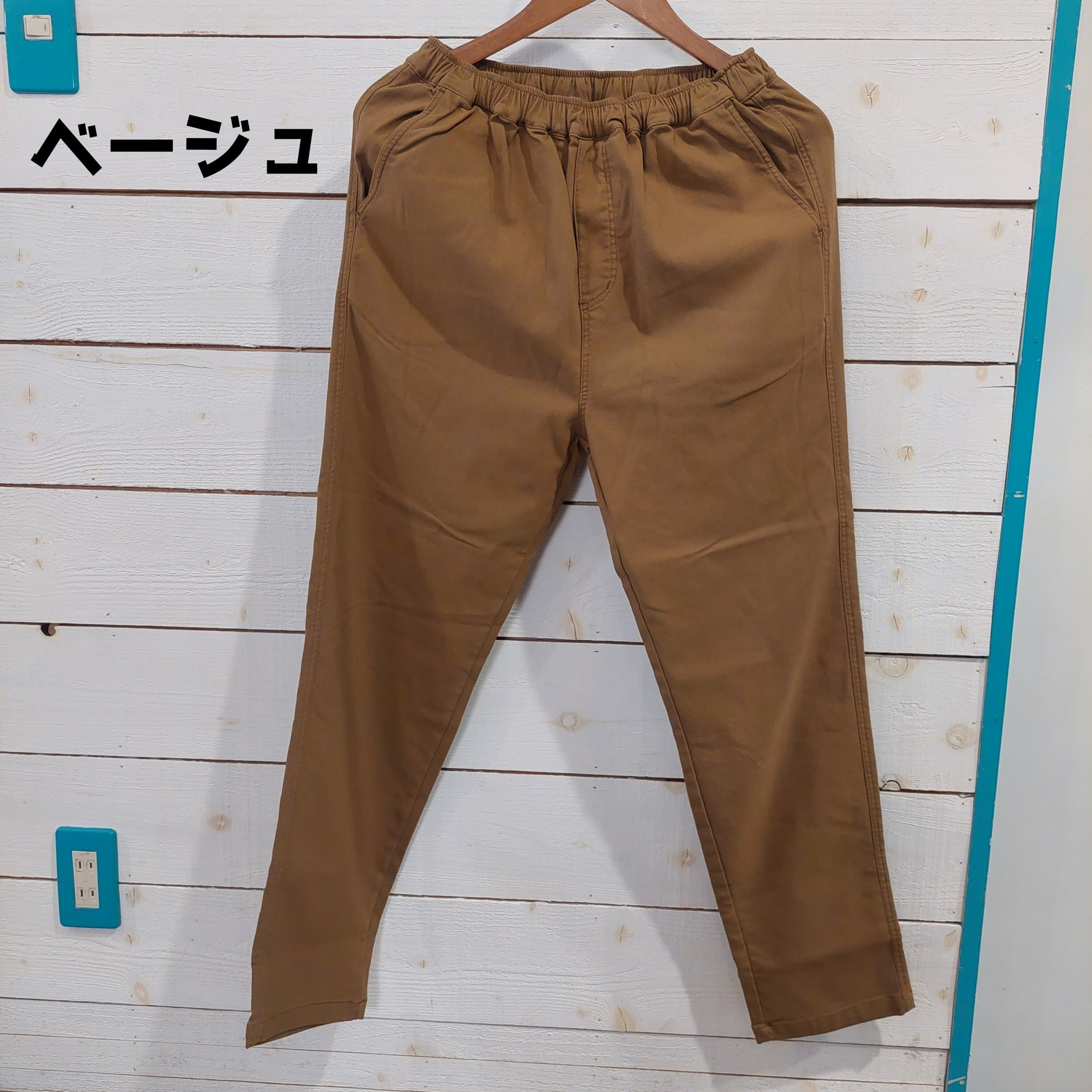 ウエスト部分は総ゴム仕様で、リラックスしたデザインながら、両サイドにはシンプルなポケットを配置。すっきりとしたシルエットでありながら、テーパードのデザインが美脚効果を引き出します。パンツはカジュアルながらも、きれいめな印象を与えるため、Tシャツやカットソーだけでなく、シャツを合わせてきれいに仕上げることもできます。