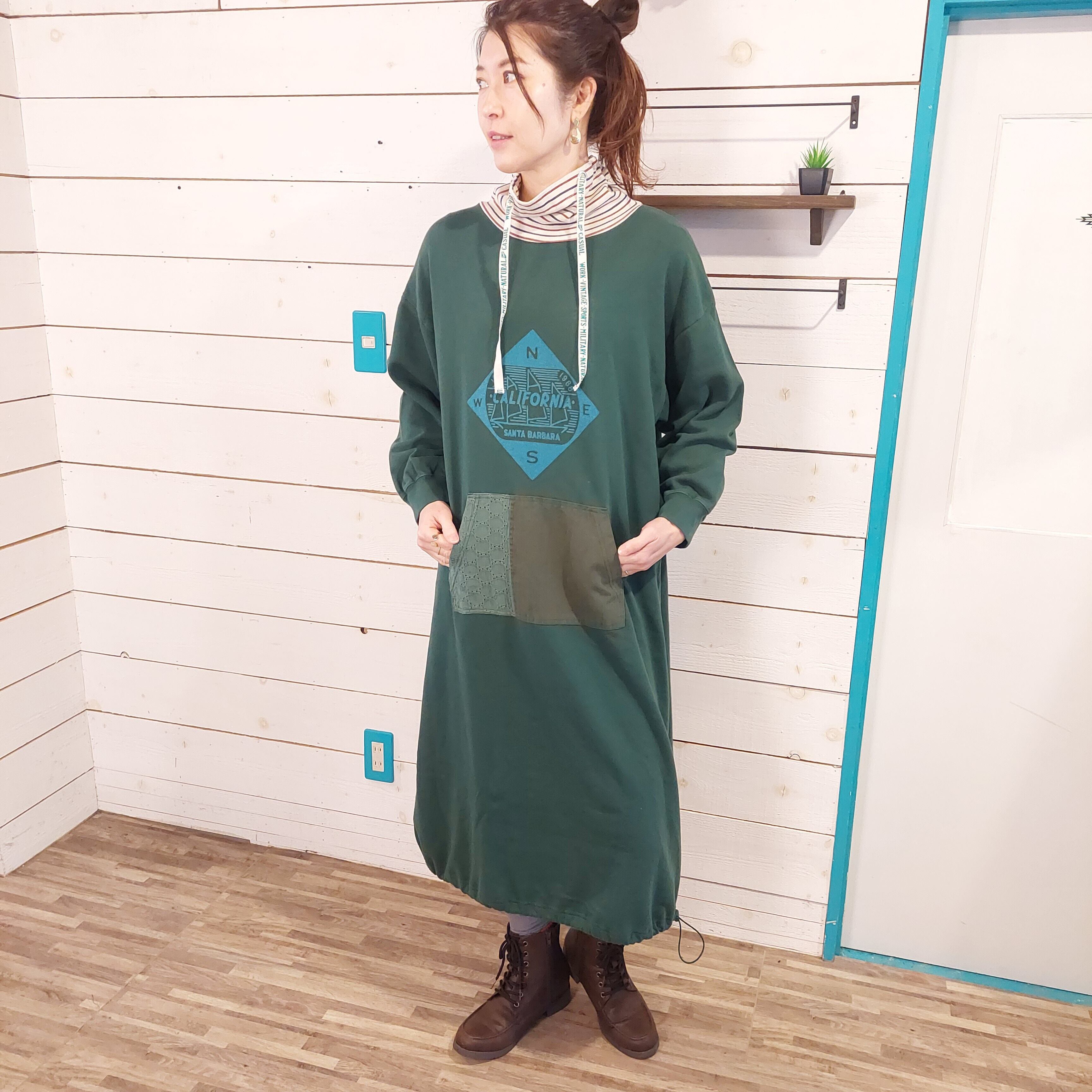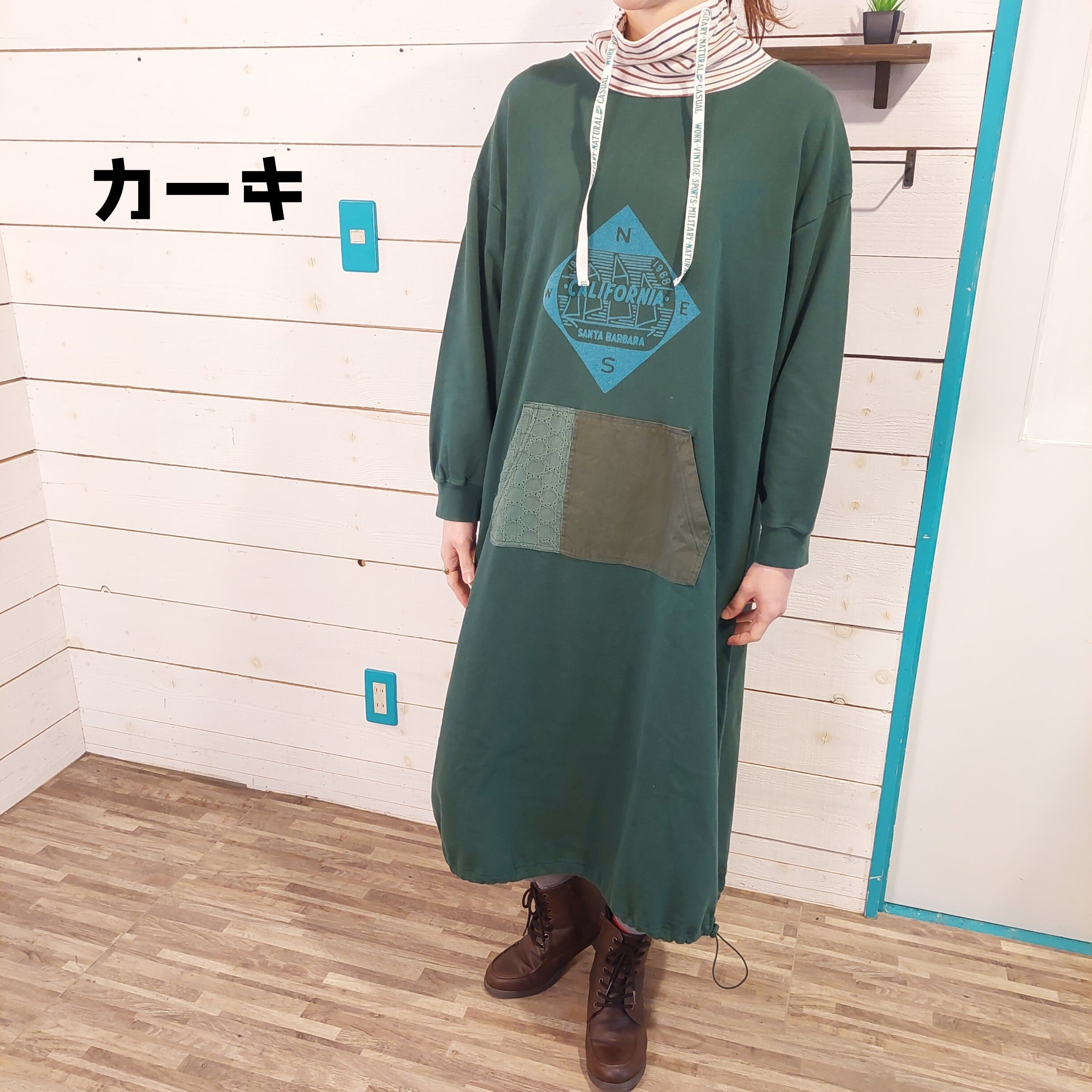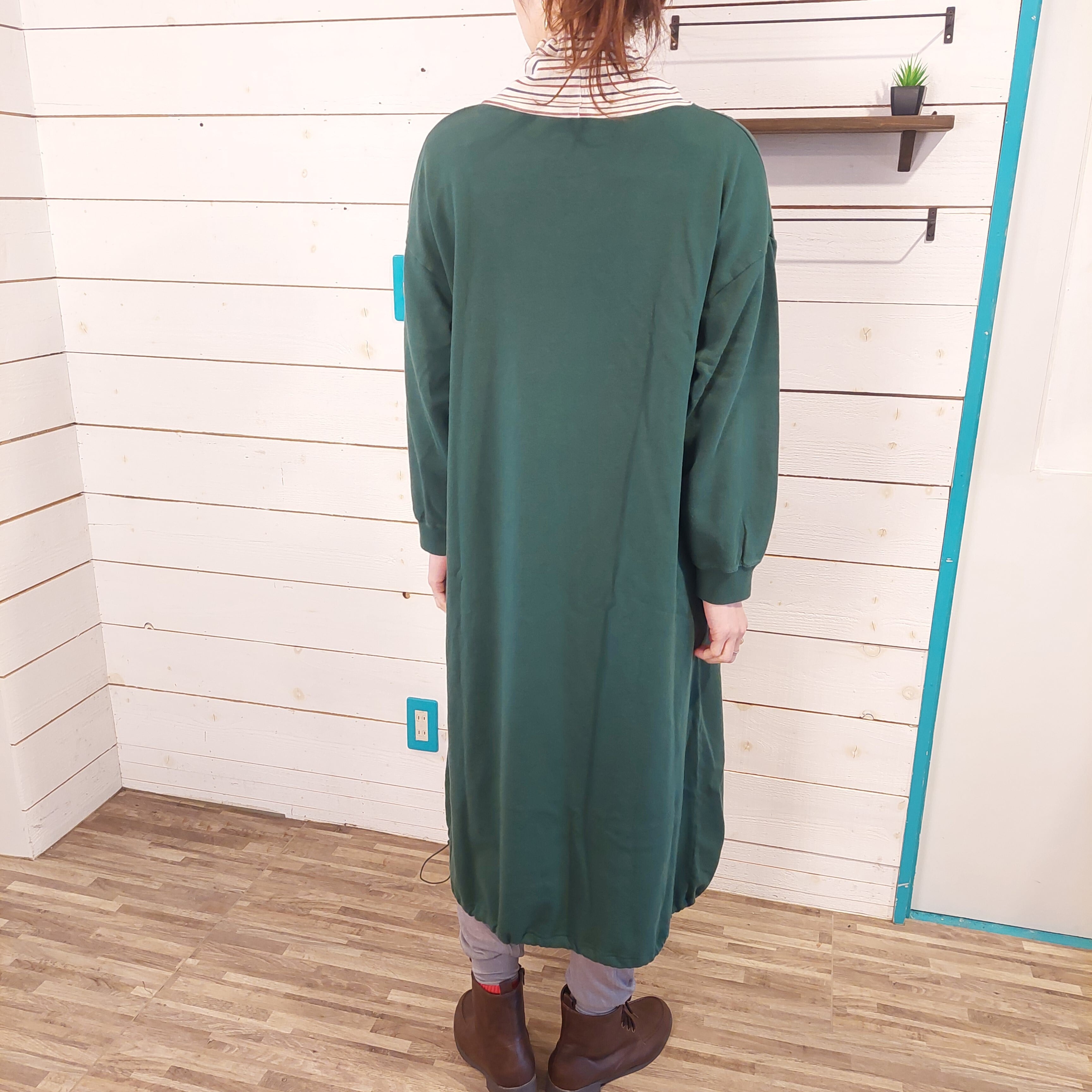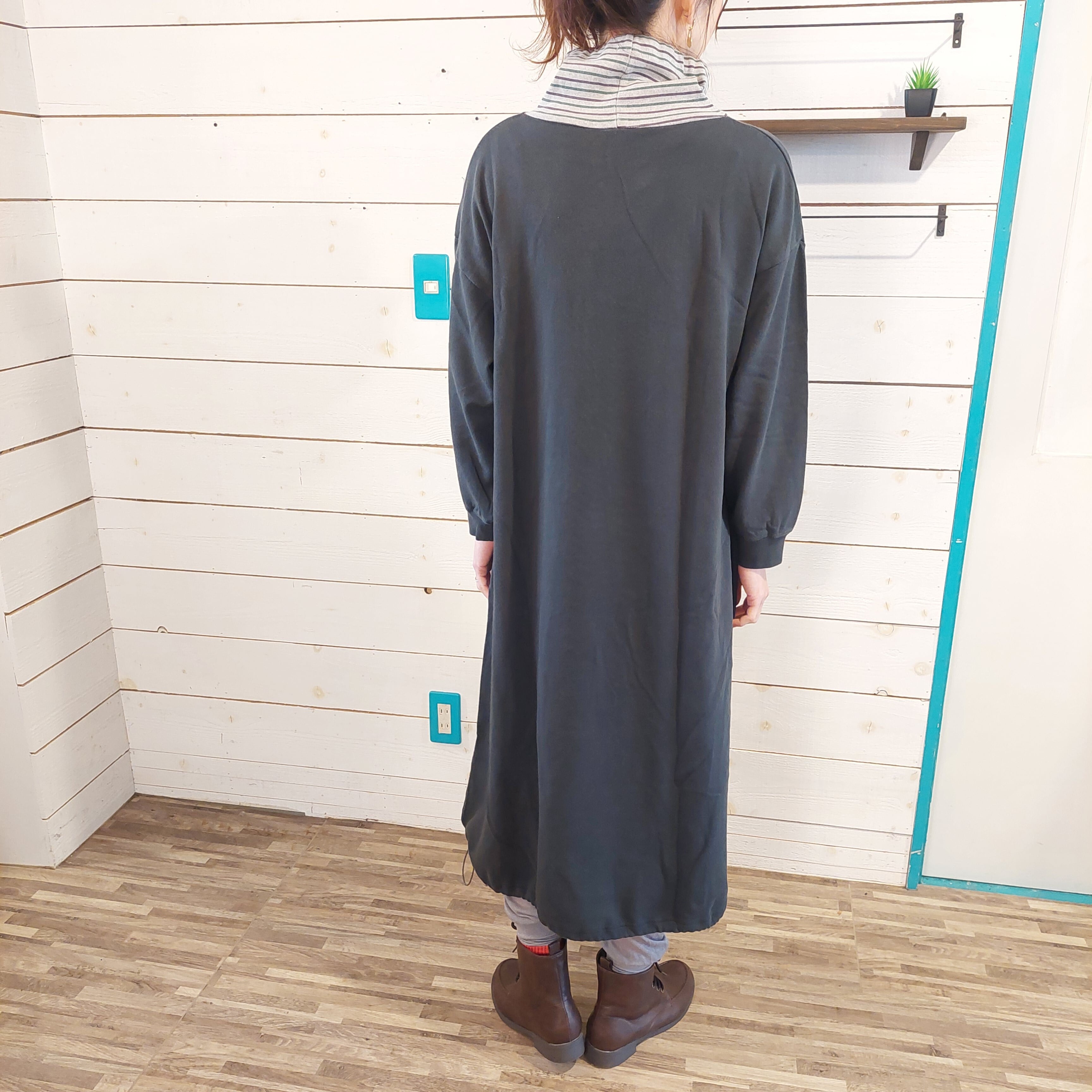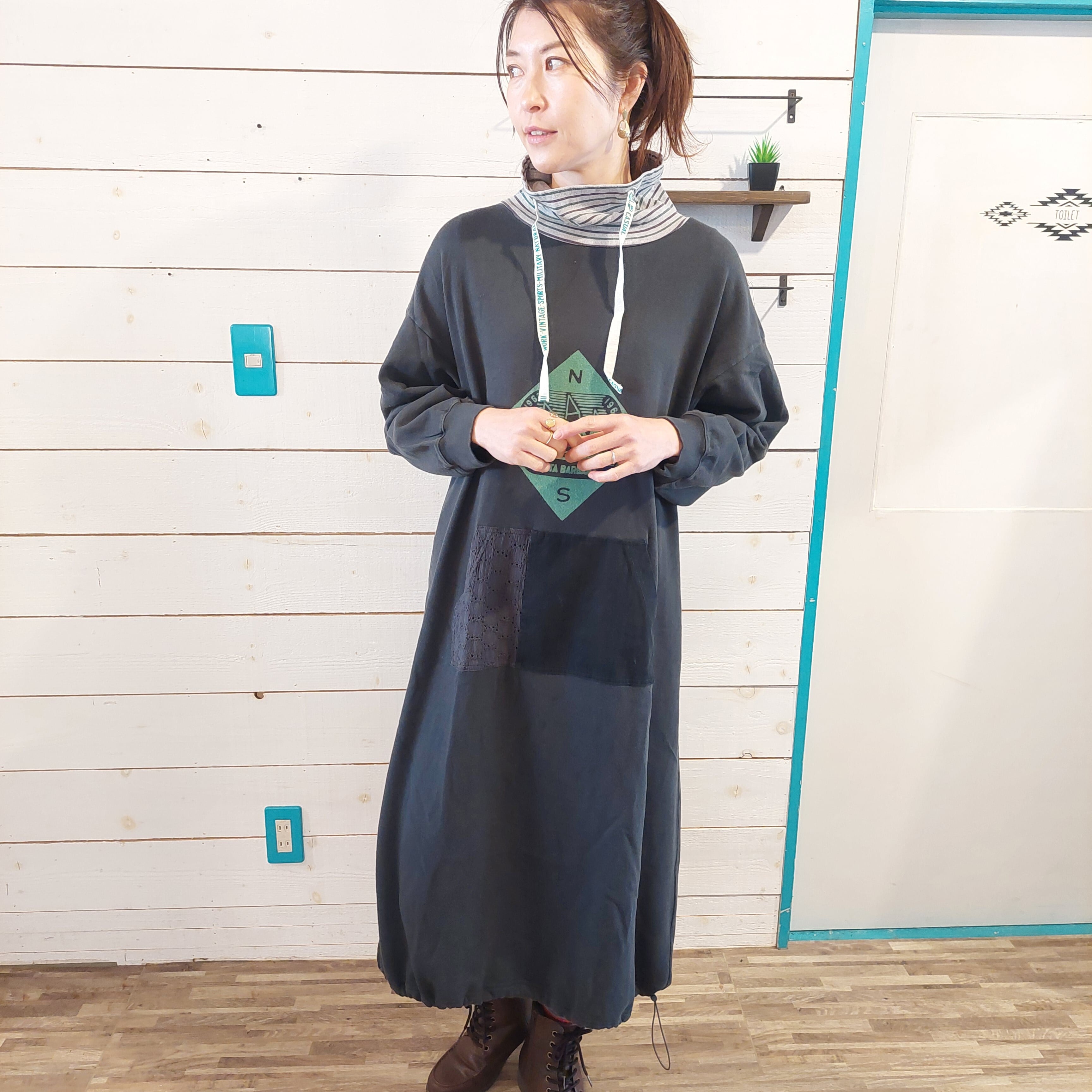 ロゴプリント入りハイネックワンピース。