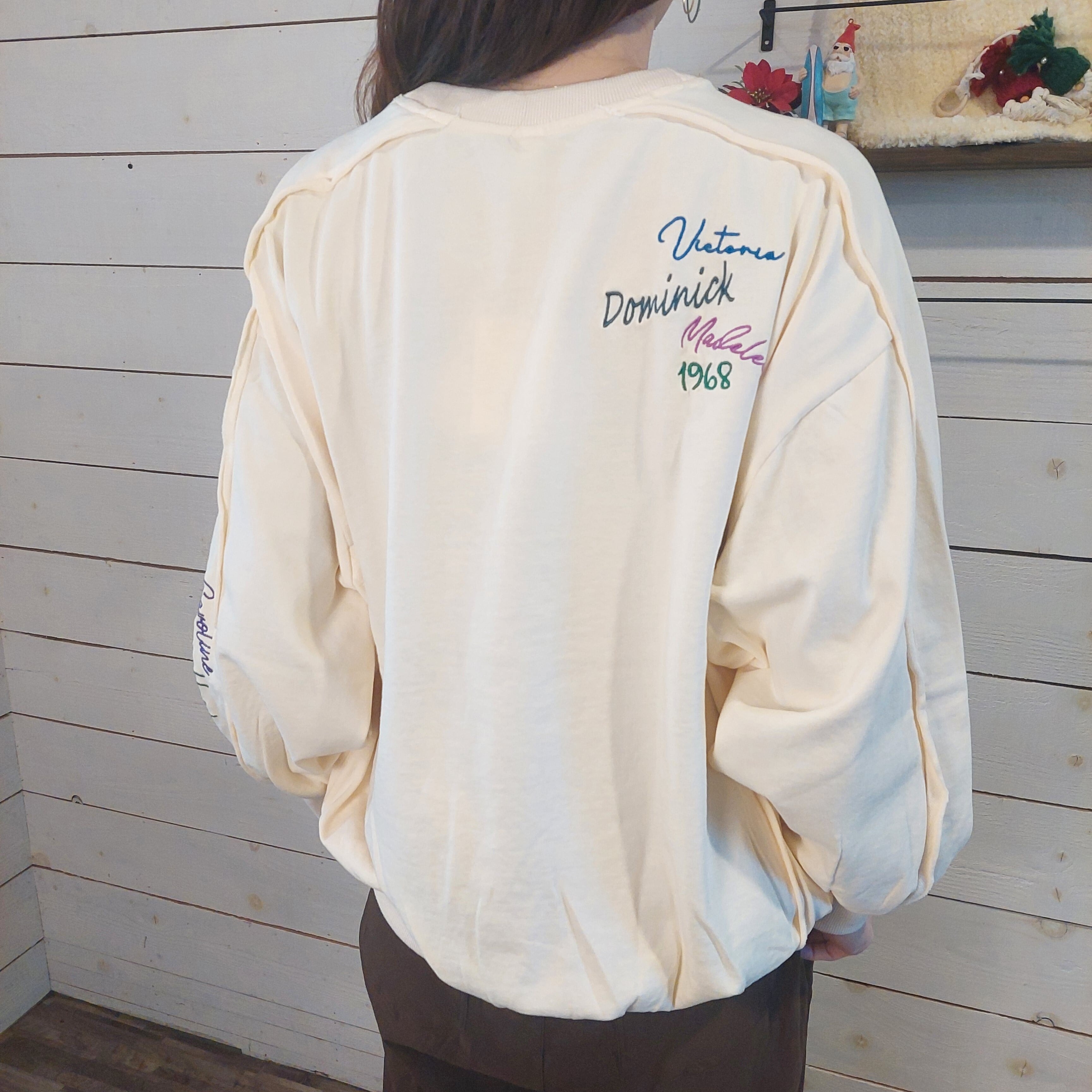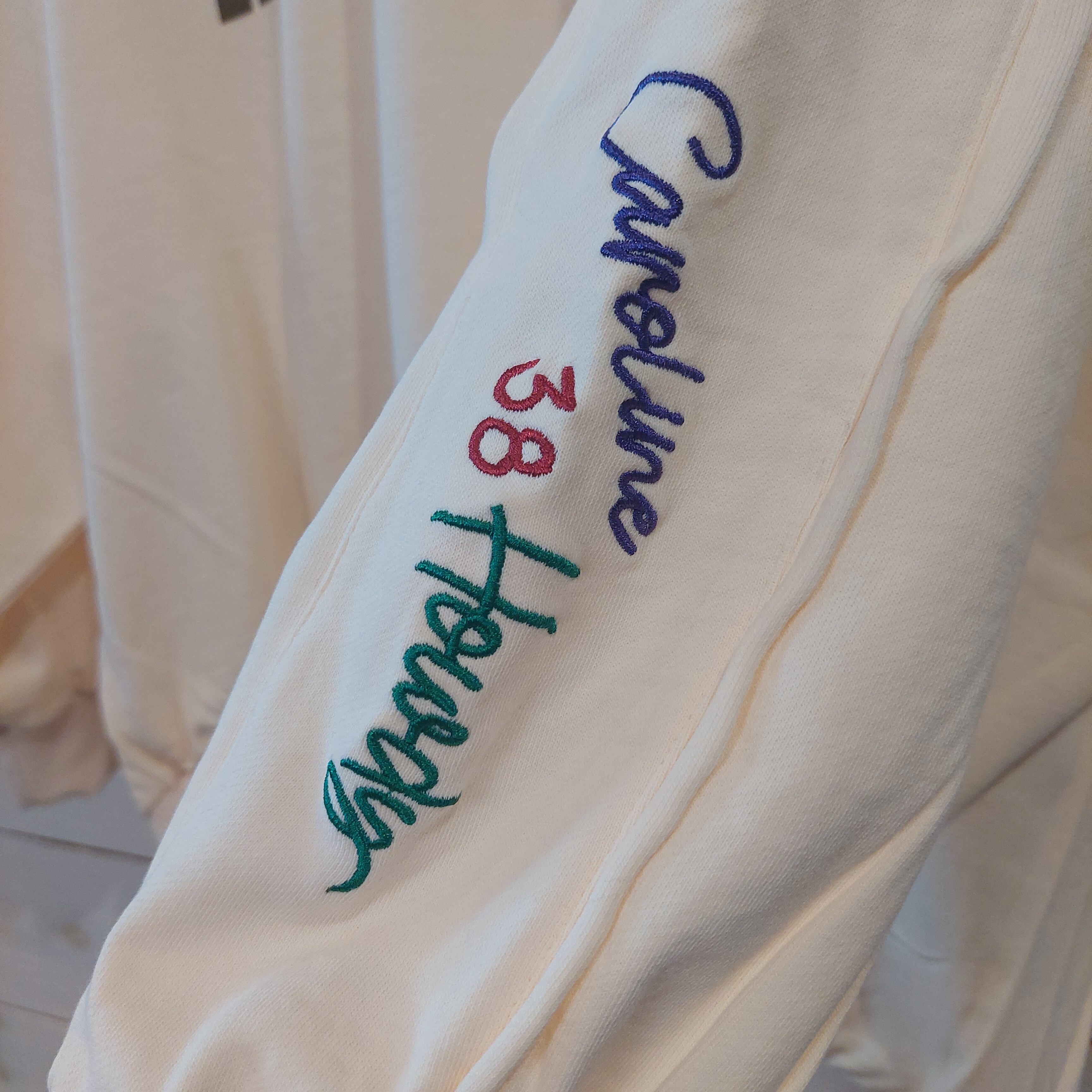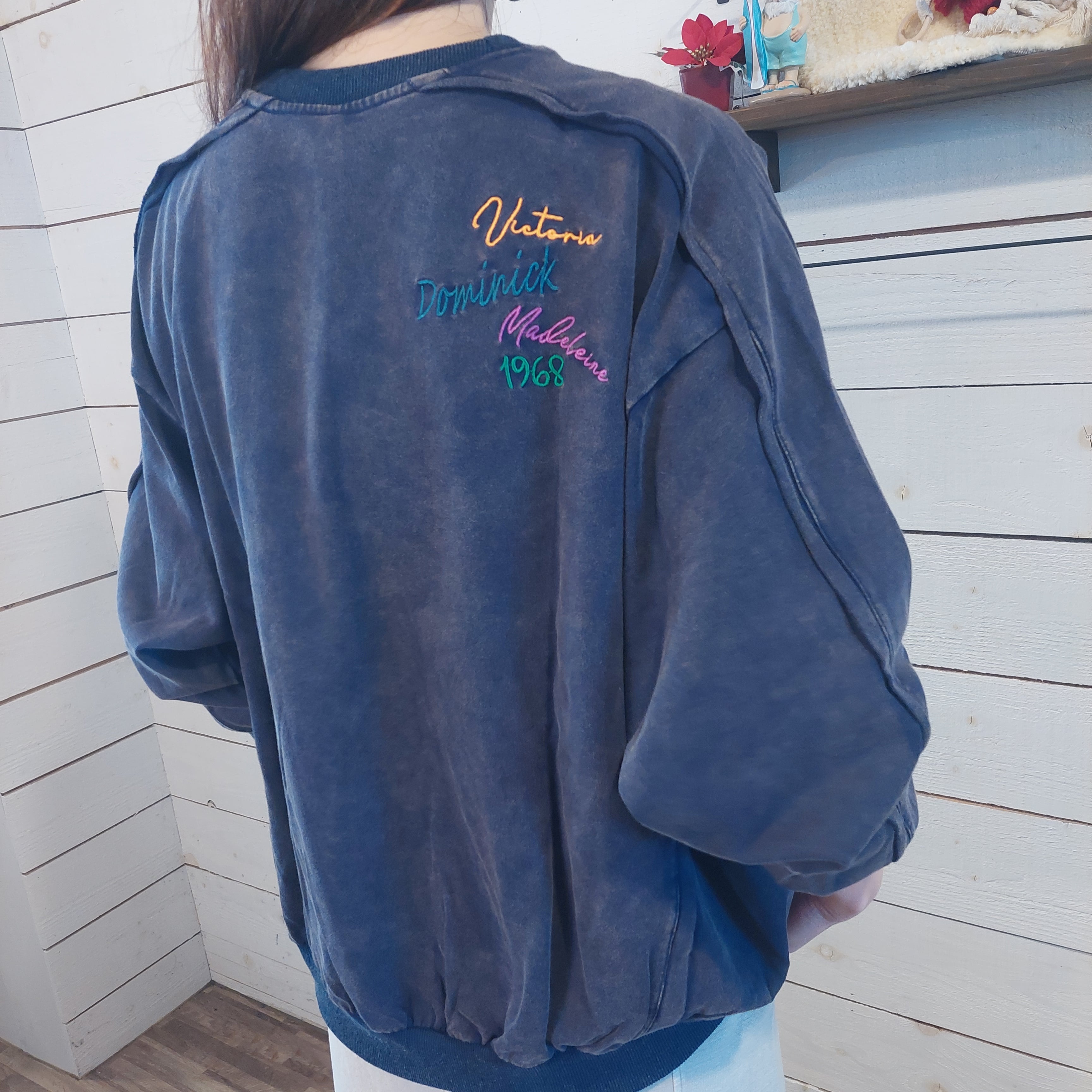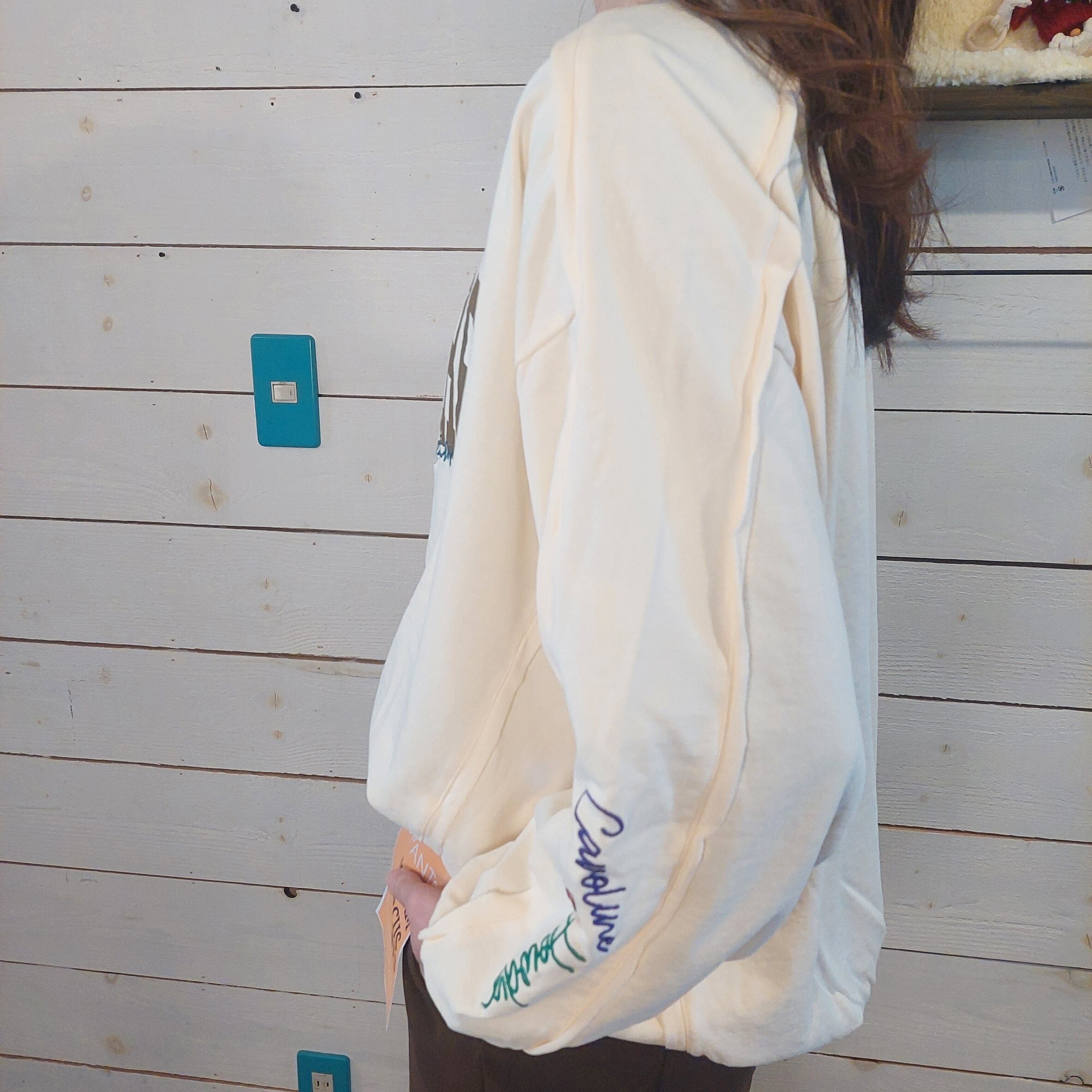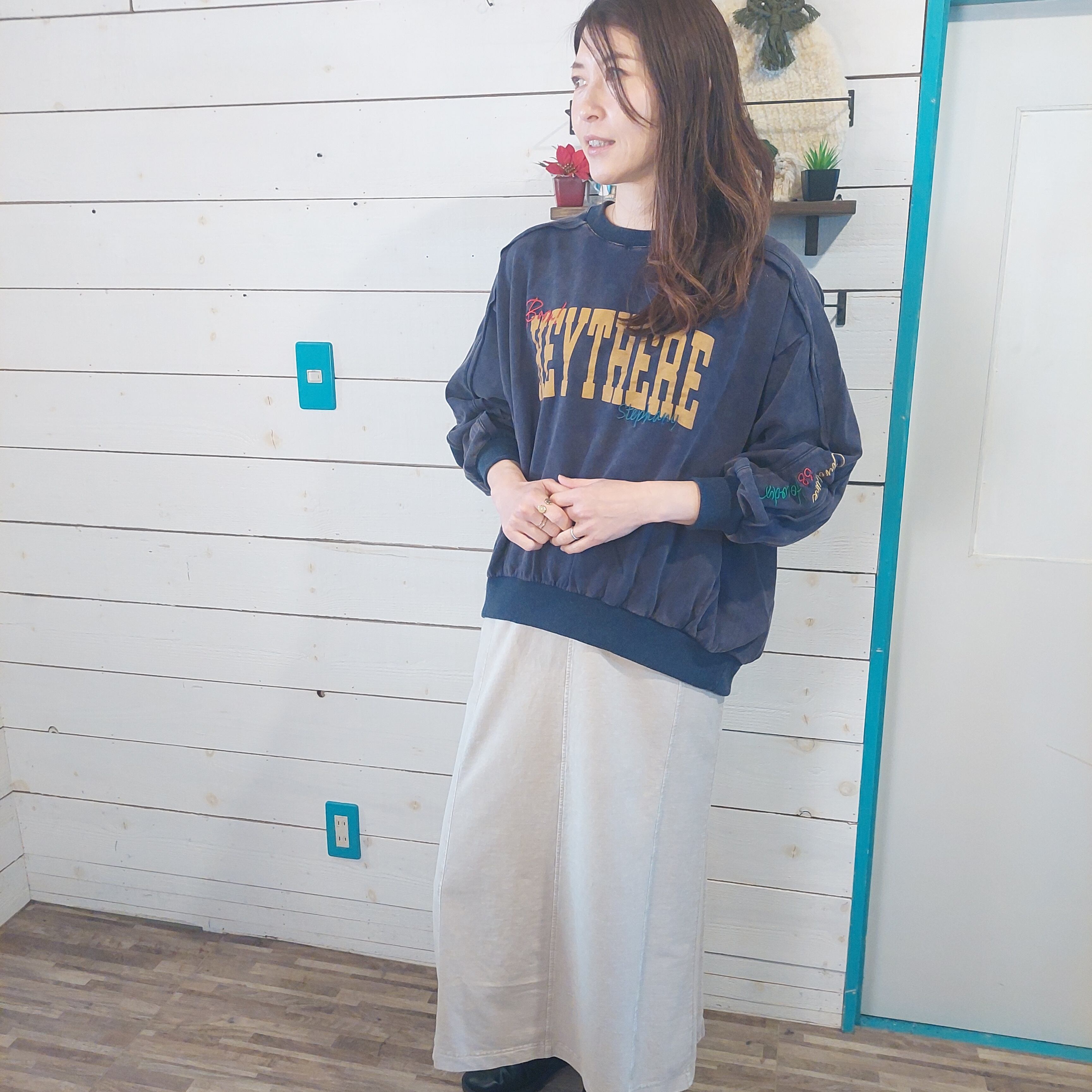 裏毛パウダー加工 ロゴプリント刺繍プルオーバーは、ポップなカラーの刺繍が魅力的な一着です! 裏毛仕立てで保温性が高く、秋冬シーズンにぴったりのアイテム。身幅は広めで、リラックスした着心地を楽しめます。カジュアルなスタイルだけでなく、ちょっとしたお出かけにも映えるデザインです。