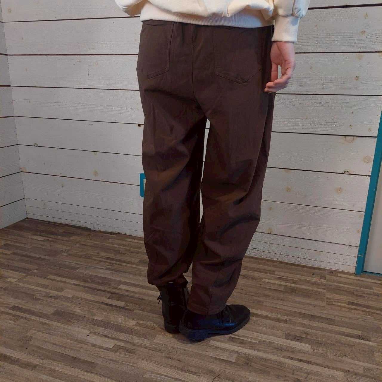 「裏起毛ストレッチツイル サーカスパンツ」は、その程よいボリューム感とこなれたシルエットで、カジュアルでもきれいめでも幅広く活躍します! 暖かさもしっかりと感じられる裏起毛仕様なのに、ストレッチ素材で動きやすさも抜群です。ウエストゴム紐を採用しているため、履き心地はらくちん。これからの季節にぴったりなアイテムです。
