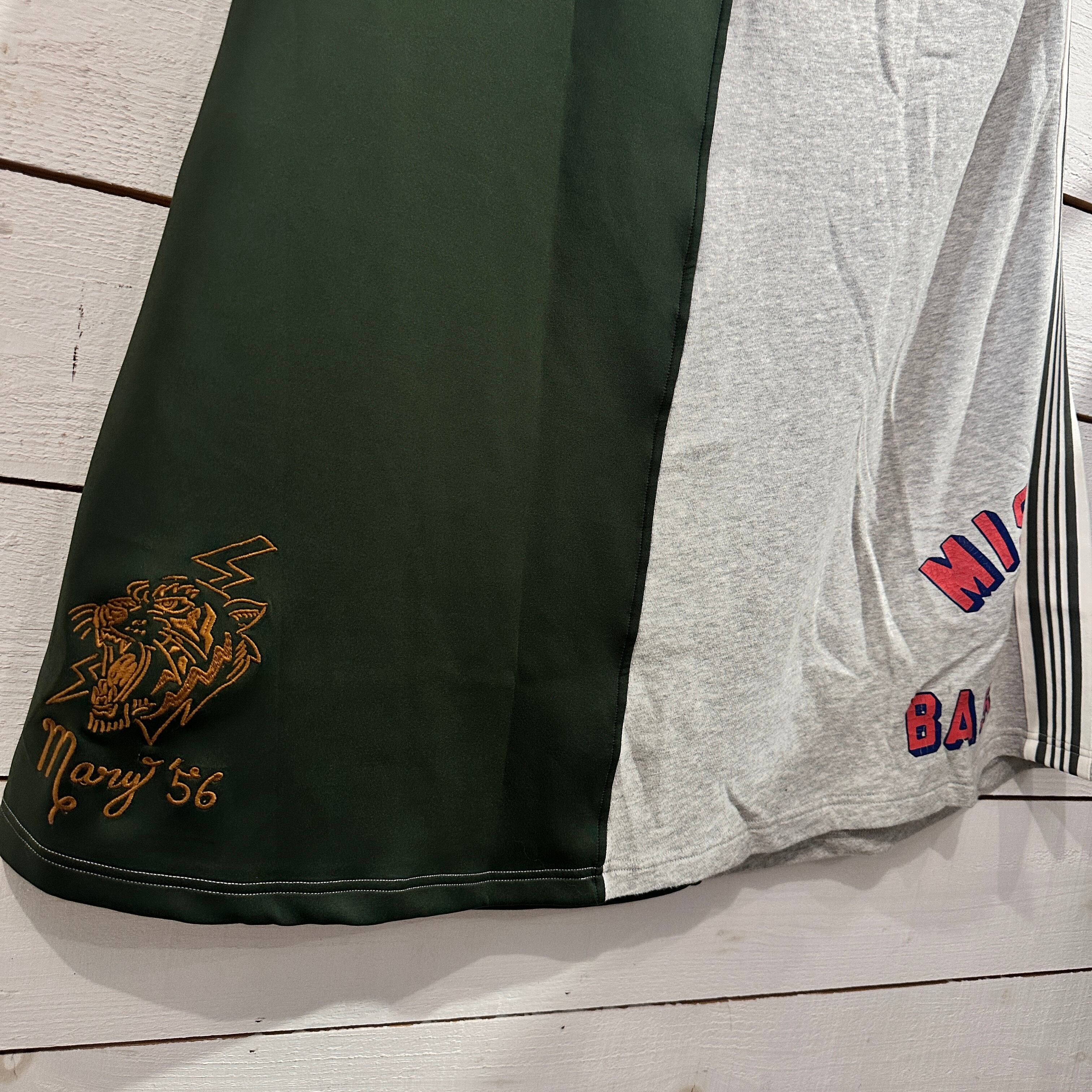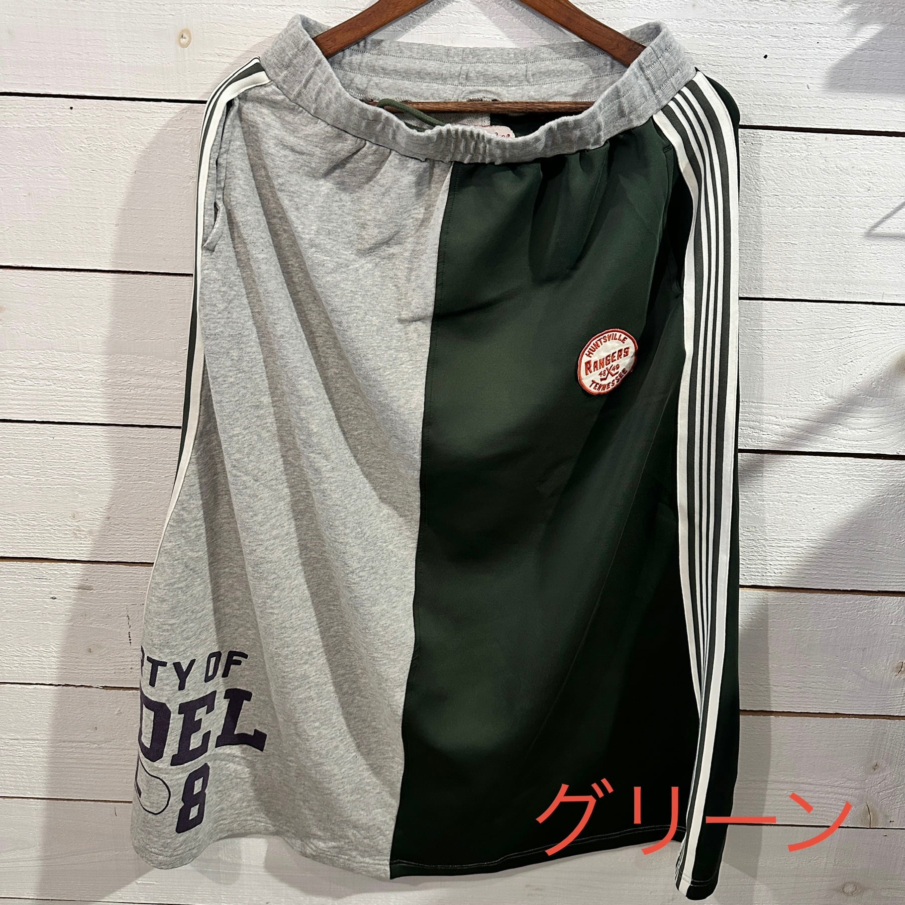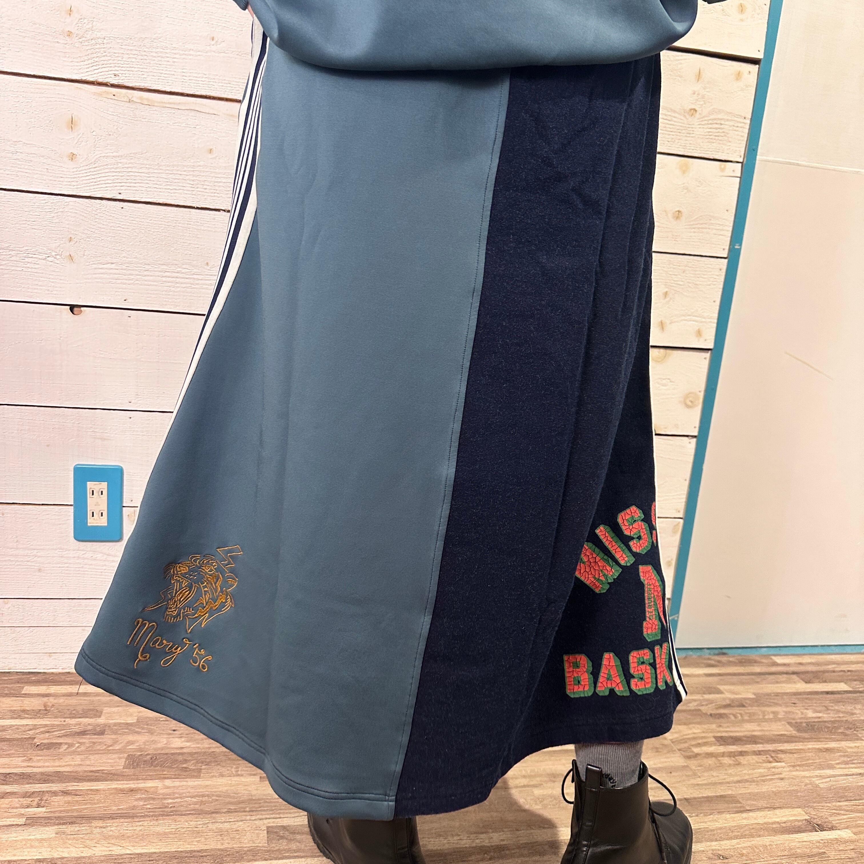 ミニ裏毛とジャージ素材をベースに、サイドへラインテープを走らせたスポーティーなデザインです。インディゴ染め風の色合いとナチュラルなプリントロゴが、カジュアルながらも大人っぽい抜け感を演出。程よくゆとりのあるシルエットで、動くたびに揺れる柔らかなフォルムが印象的です。