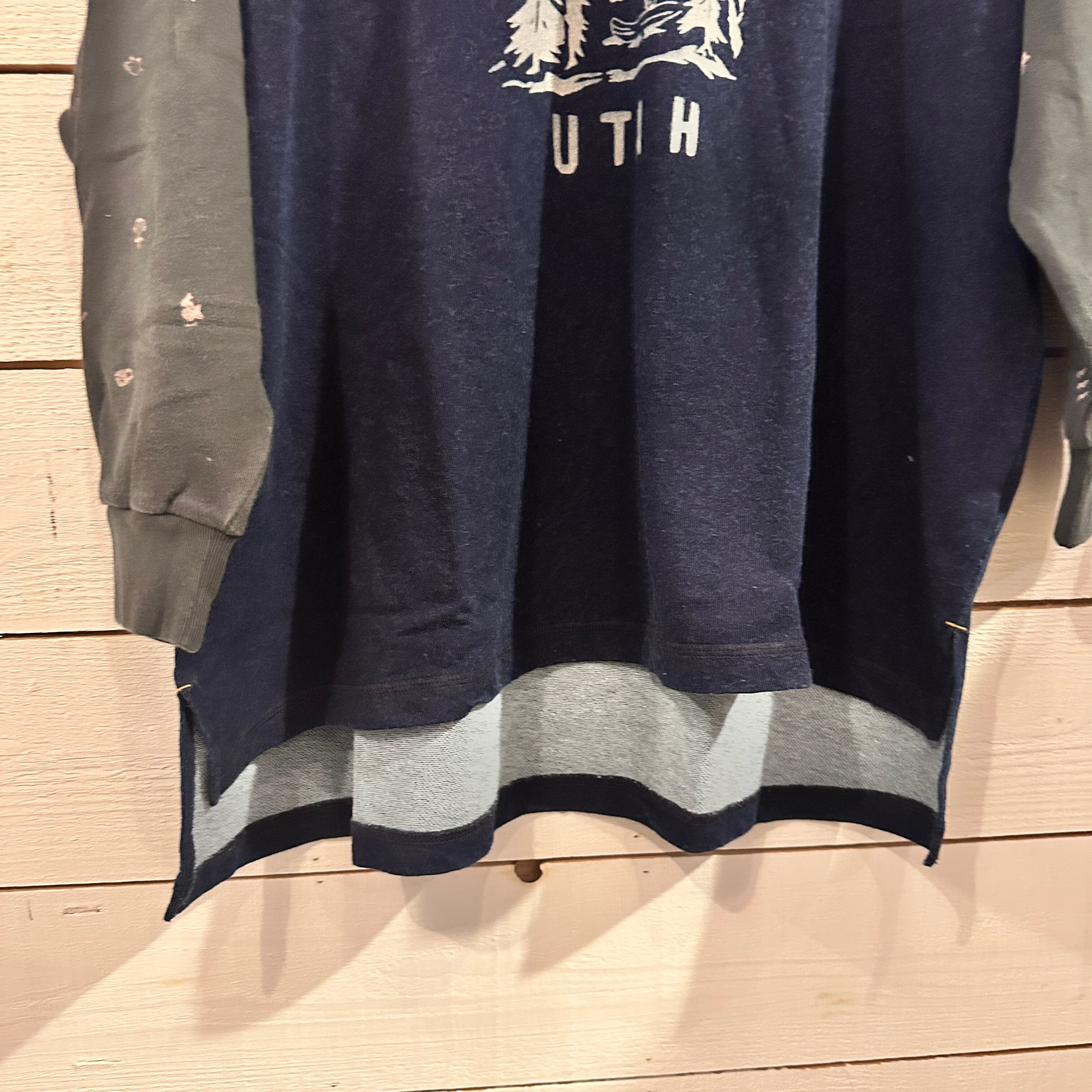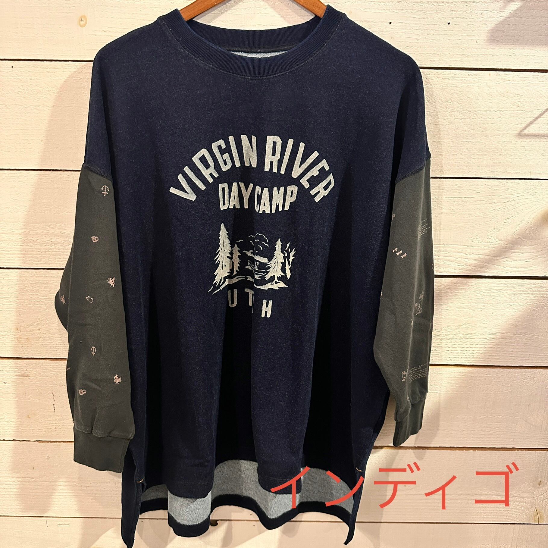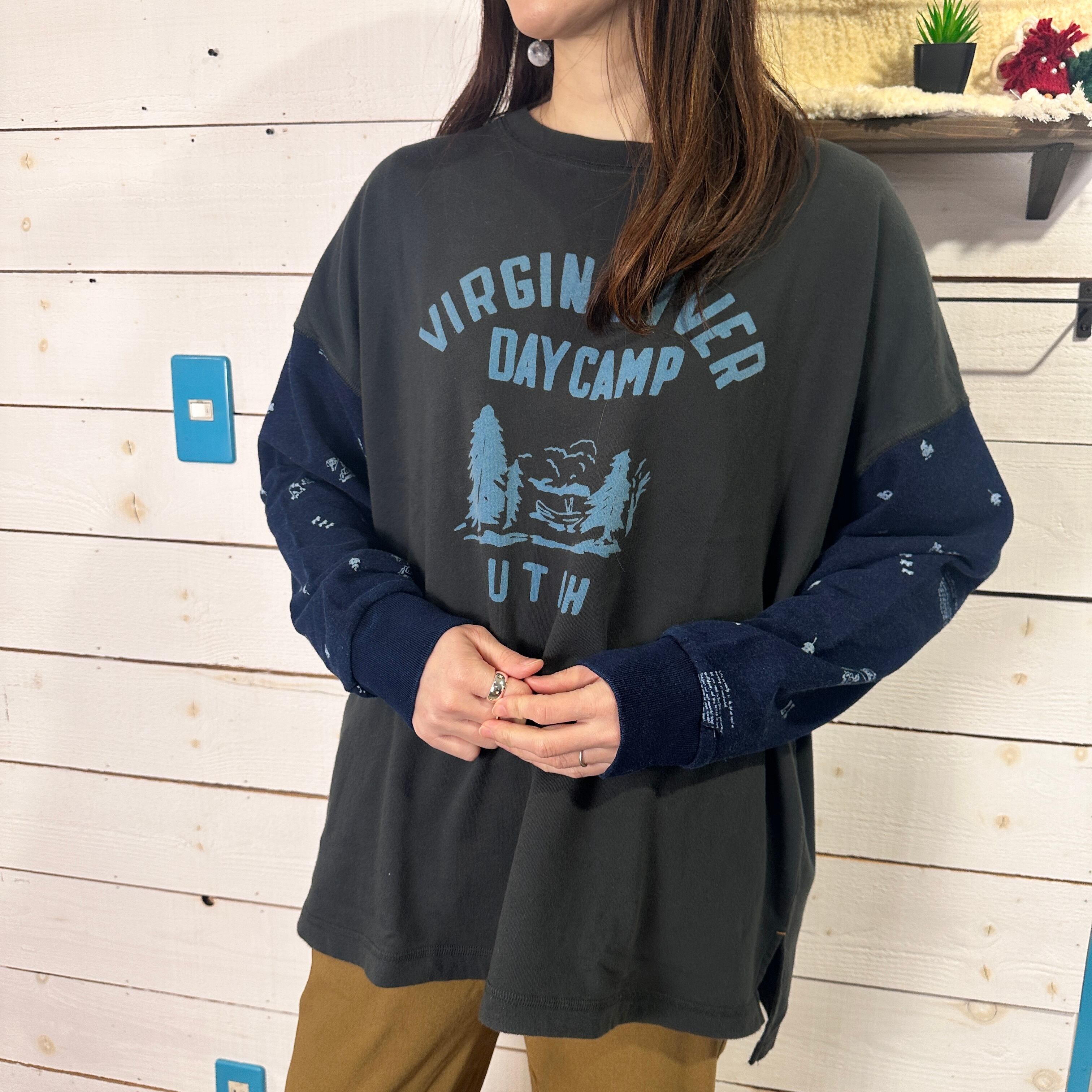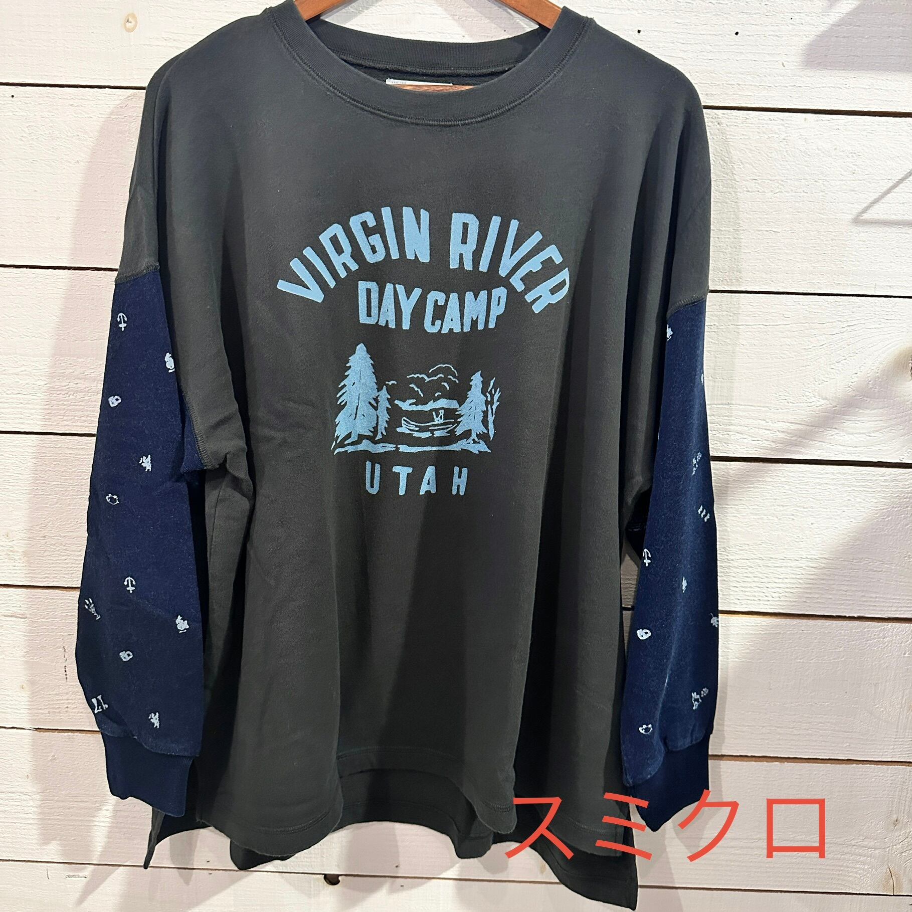 ゆるやかな肩落ちと長めの着丈で、リラックス感のある抜けたシルエットが特徴です。袖部分には牧場をモチーフにした総柄プリントをあしらい、遊び心と温もりを感じるデザインに。胸元の小さな刺繍ロゴがアクセントとなり、シンプルな中にもブランドらしい世界観を漂わせます。