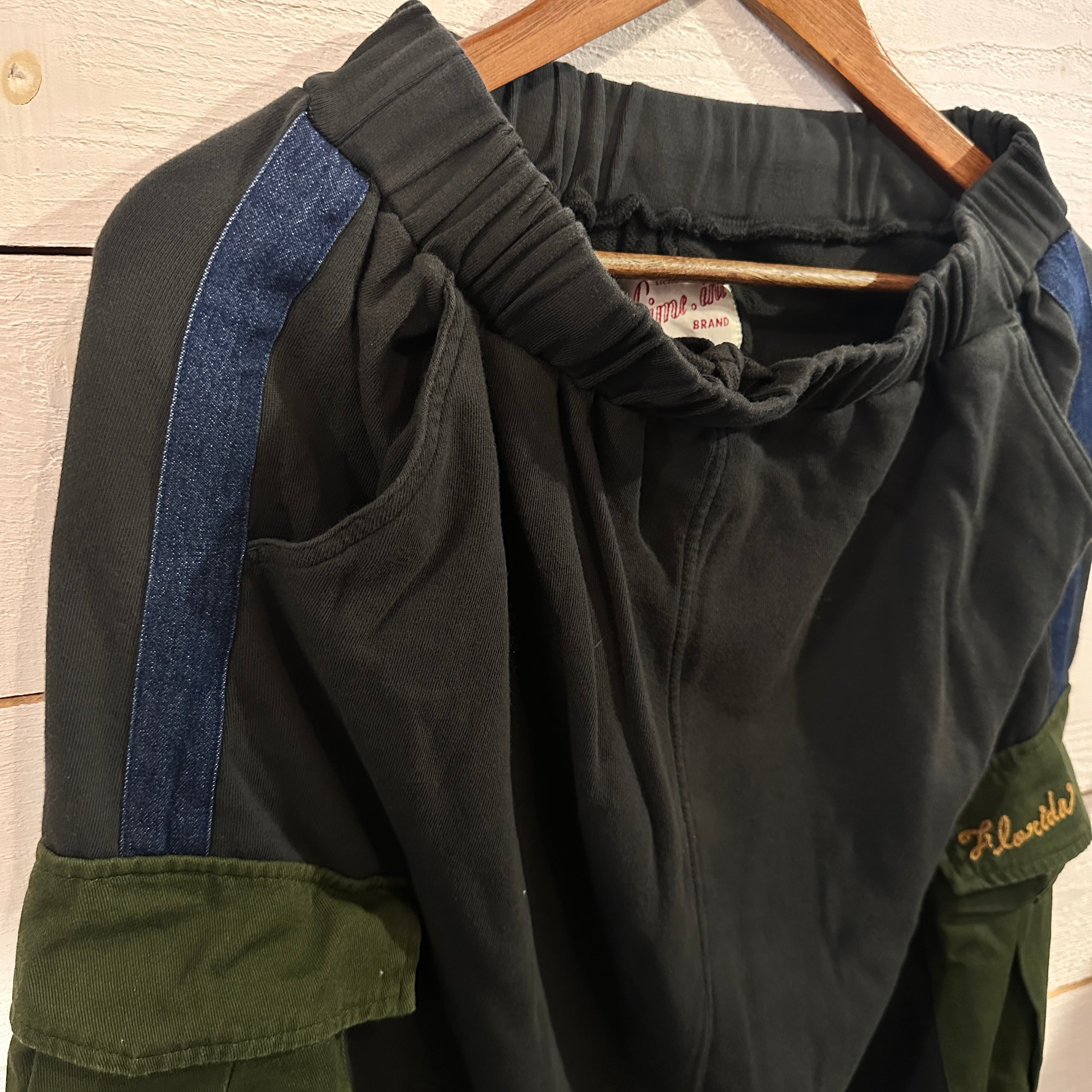カーゴポケットは布帛素材で切り替え、ワーク調の表情をプラス。ポケットのフラップには刺繍を施し、さりげなくポイントに。ウエストは総ゴム仕様でラクな穿き心地ながら、フィット感も良好。サイドのデニムラインが縦のシルエットを強調し、すっきりと見える設計になっています。裾のドローコードで丸みを付けてバルーンシルエットに寄せるなど、スタイリングのアレンジも自在です。