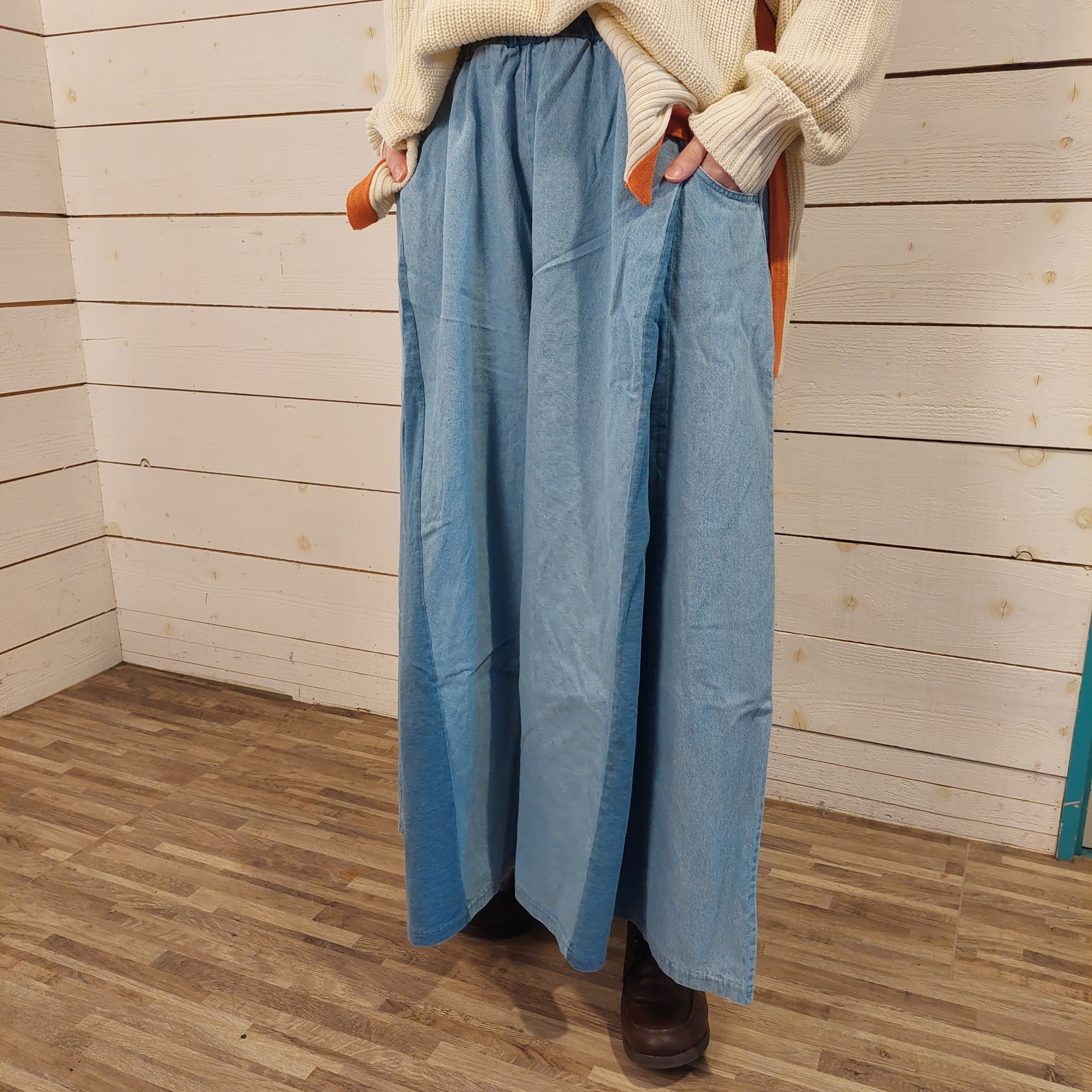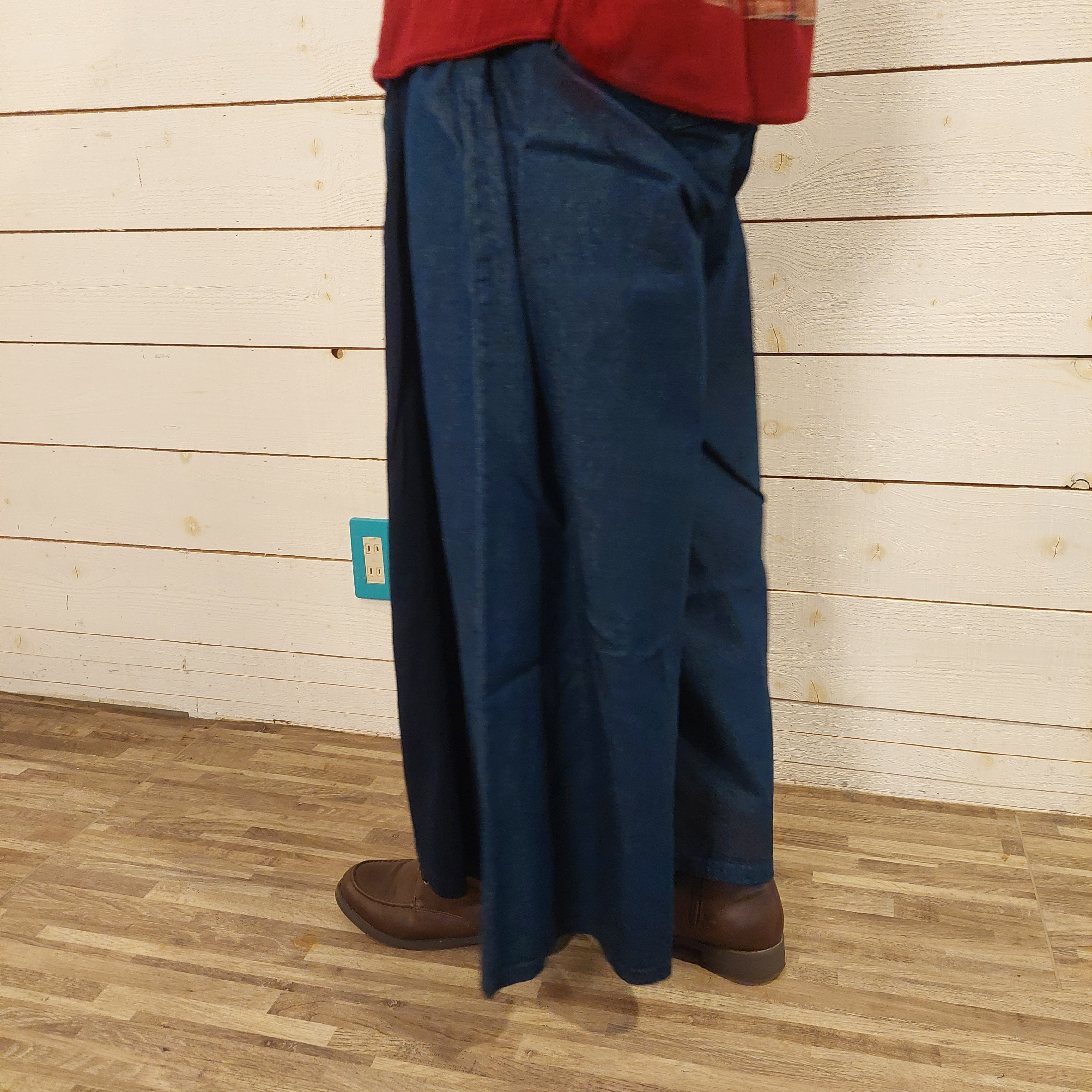 軽やかでいて頼れる1本。表面はデニムライクな表情ながら、実はカットソー素材のインディゴ天竺。見た目のカジュアルさに反して、肌に触れるとわかる驚きのやわらかさと伸縮性。ふっくらとした中肉厚の生地は程よい重みがあり、落ち感がとてもきれい。動くたびに広がるフレアラインが、自然なドレープと陰影をつくり、いつもの日常をちょっとだけ特別にしてくれます。生地にはナチュラルな色ムラや洗い加工による表情があり、こなれた印象も演出。リラックス感とスタイルアップが同時に叶う、プロにもおすすめしたい素材感です。