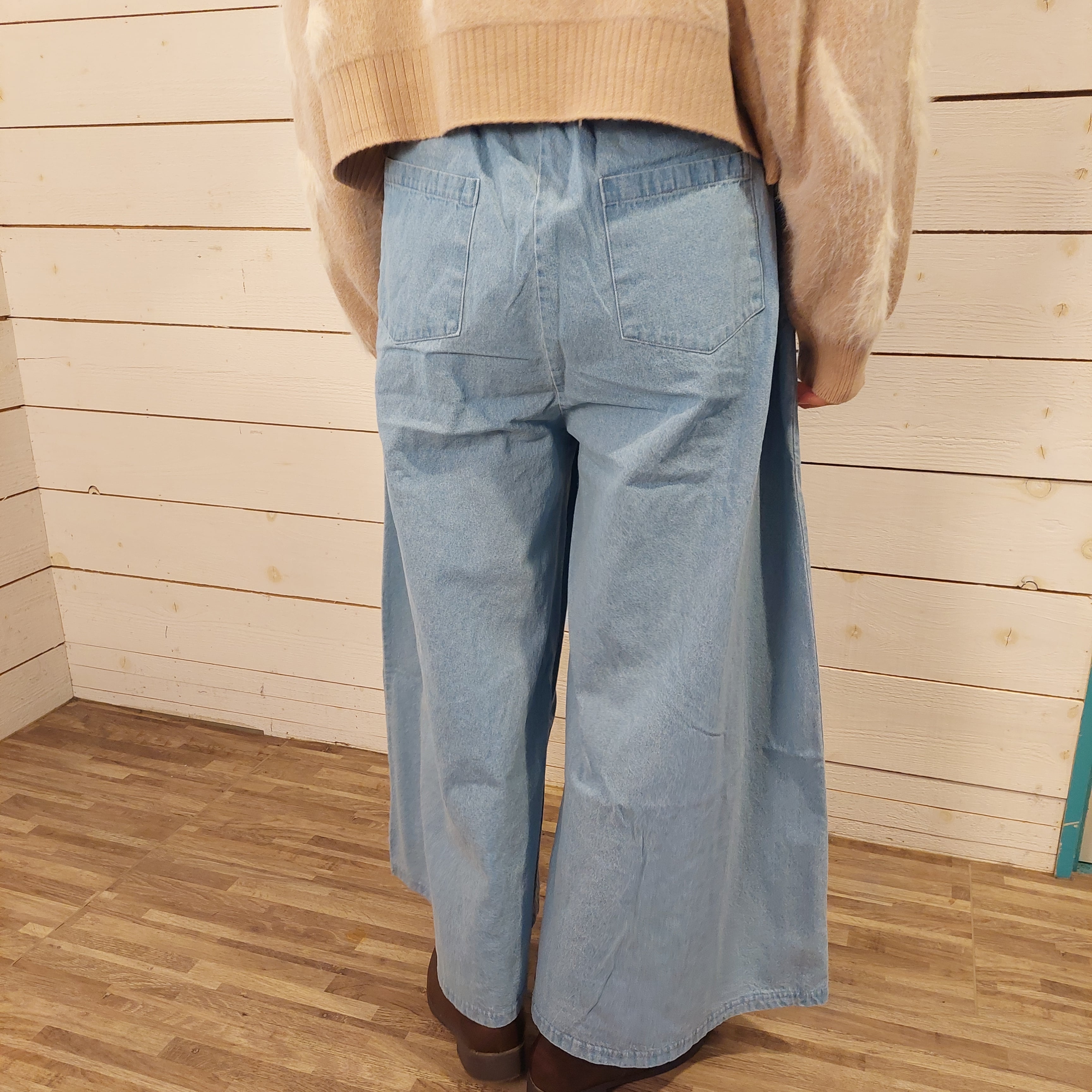 ウエストは3段ゴムでしっかりフィットしながら、着脱もラクちん。深めにデザインされたポケットは実用性も高く、スマホや小物を入れてもシルエットが崩れにくいのがポイント。後ろポケットはヒップラインを立体的に見せてくれ、後ろ姿まで気を抜かないデザインです。まるでスカートのように見えるワイドフレアシルエットが、コーディネートにさりげない変化を加えてくれます。