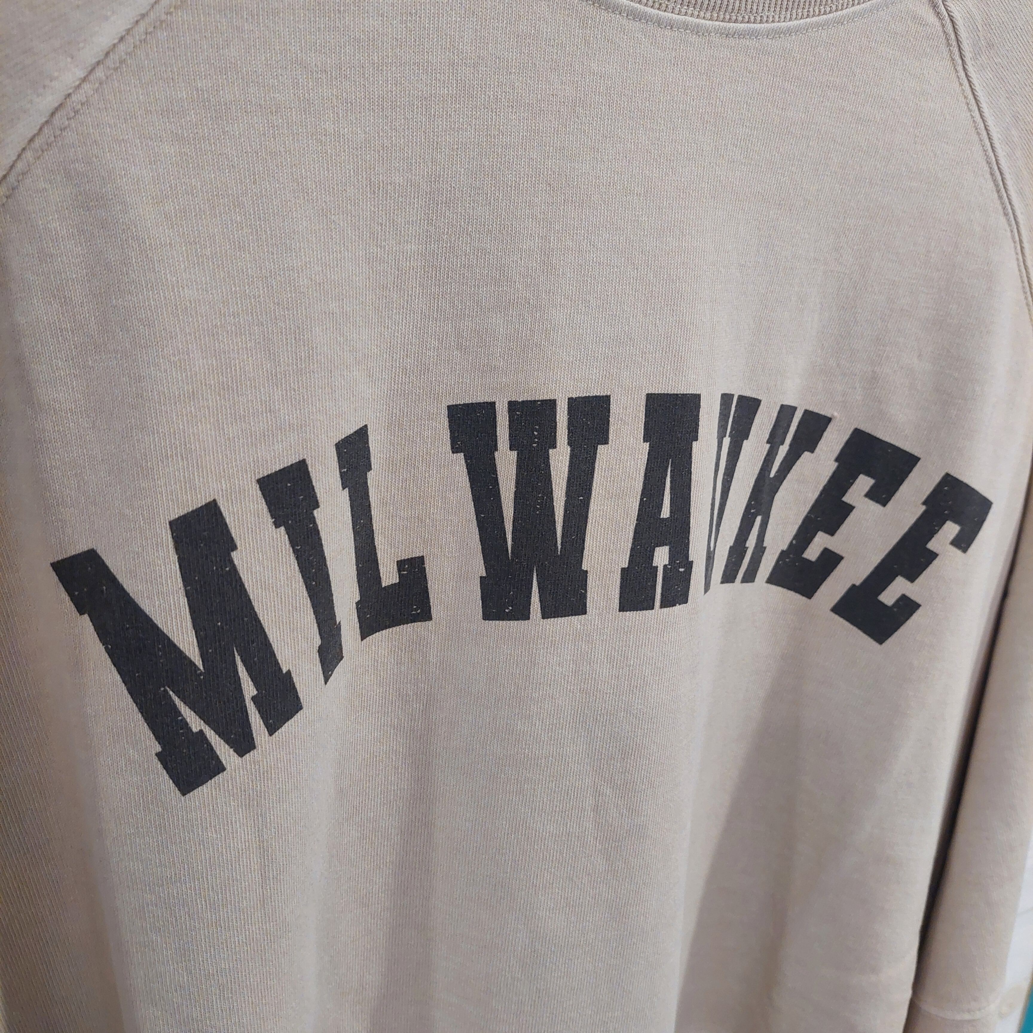 胸元のロゴプリントは、程よくフェードした発色で主張しすぎず、