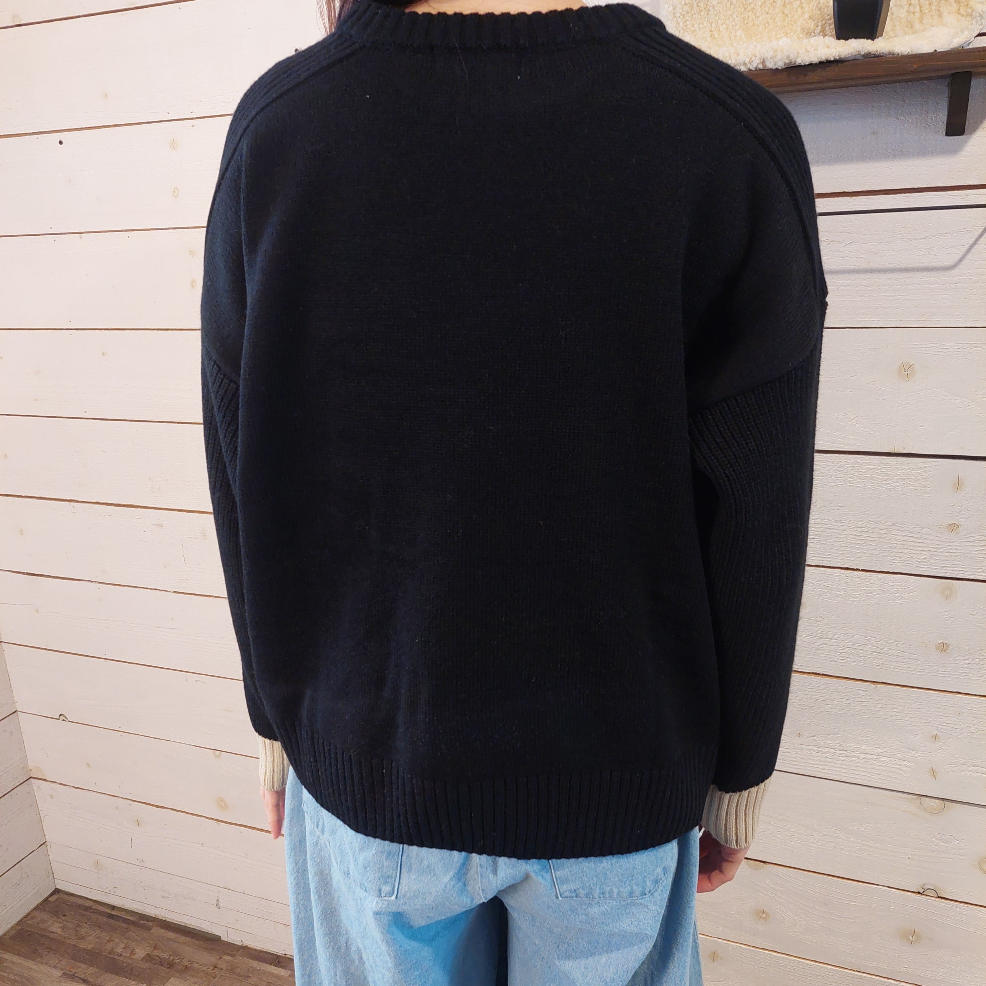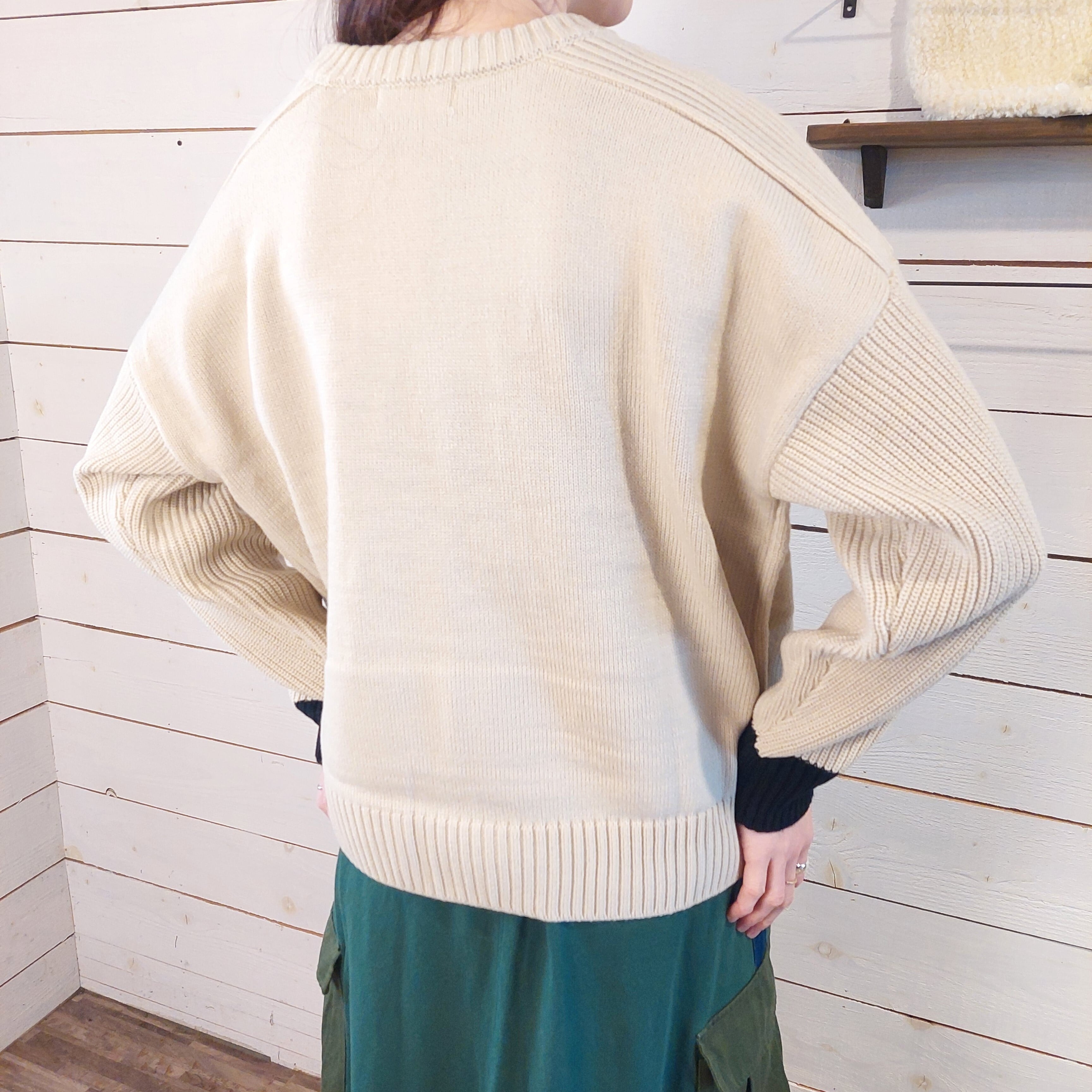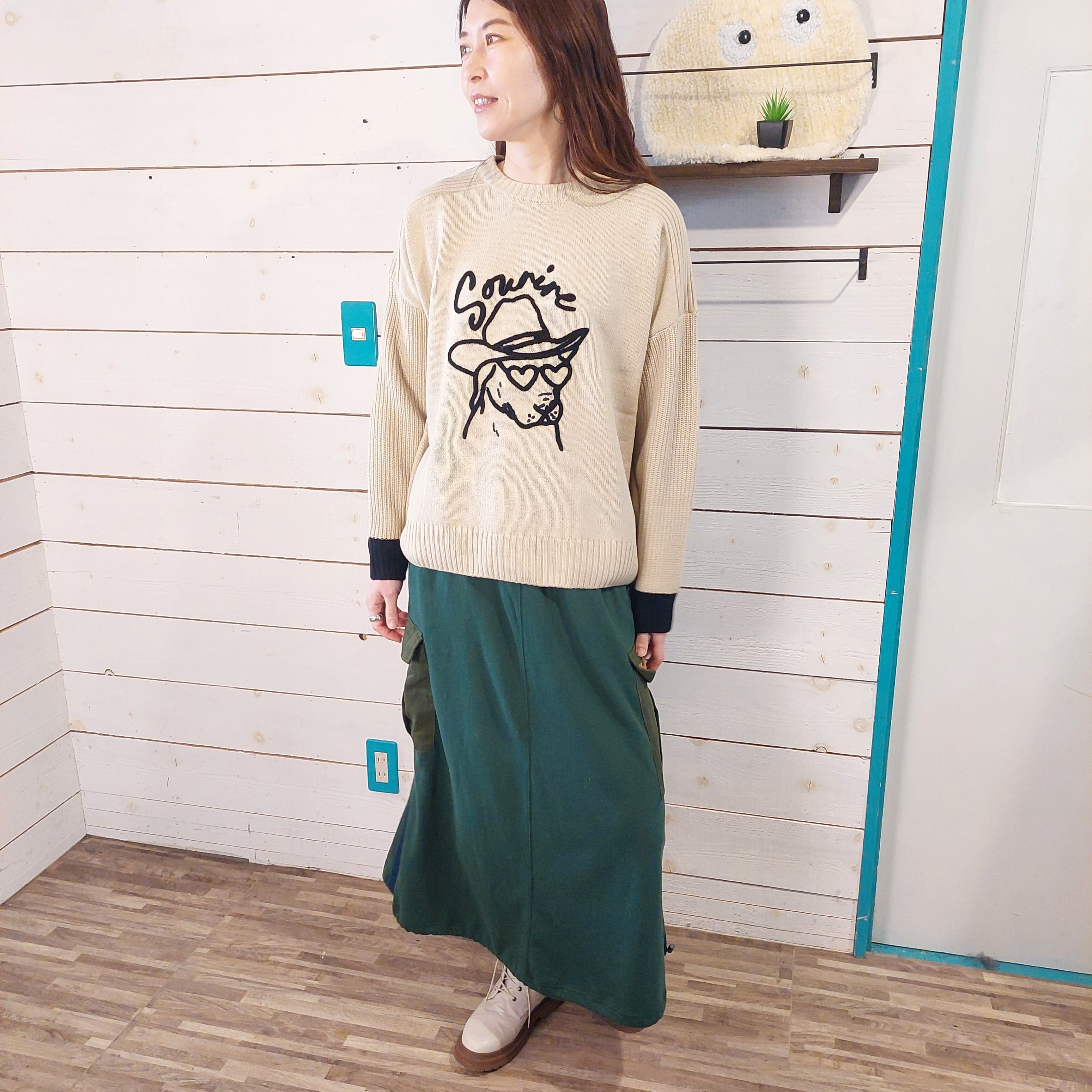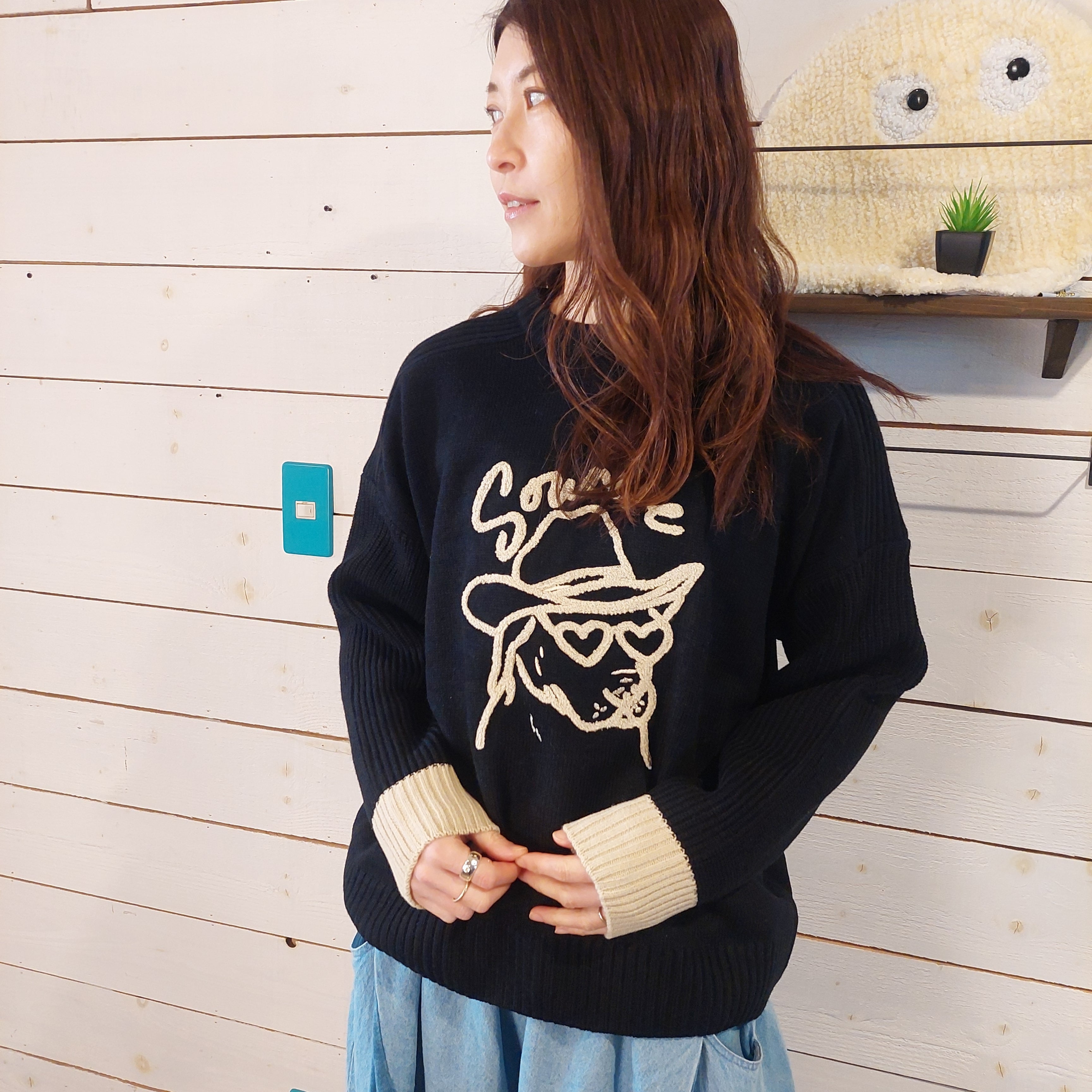 一目で心を掴む、可愛い犬の刺繍が施されたKAKELAのワイドクルーニット。ソフトで温かみのあるアクリル100%の素材を使用しており、肌触りも抜群!デザインはインパクトがありつつも、シンプルなシルエットなのでさまざまなスタイルに合わせやすく、デイリーユースにも最適です。 袖口の配色がアクセントになり、遊び心を忘れないおしゃれな一枚。ふんわりとしたシルエットが女性らしさを引き立て、カジュアルスタイルでもこなれ感を演出します。ストリートからデートコーデまで、幅広いシーンで活躍します。 ボトムにはデニムやスカートを合わせると、程よいバランスが生まれます。シンプルなアイテムとコーディネートすることで、刺繍のデザインが引き立ち、毎日のコーディネートを楽しく彩ります。