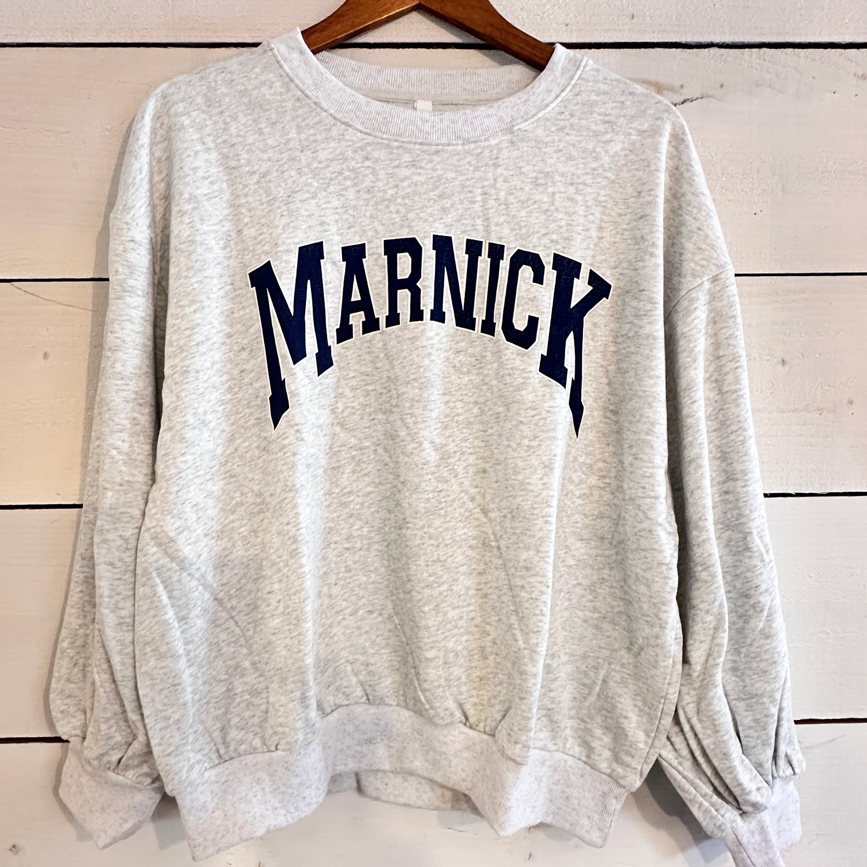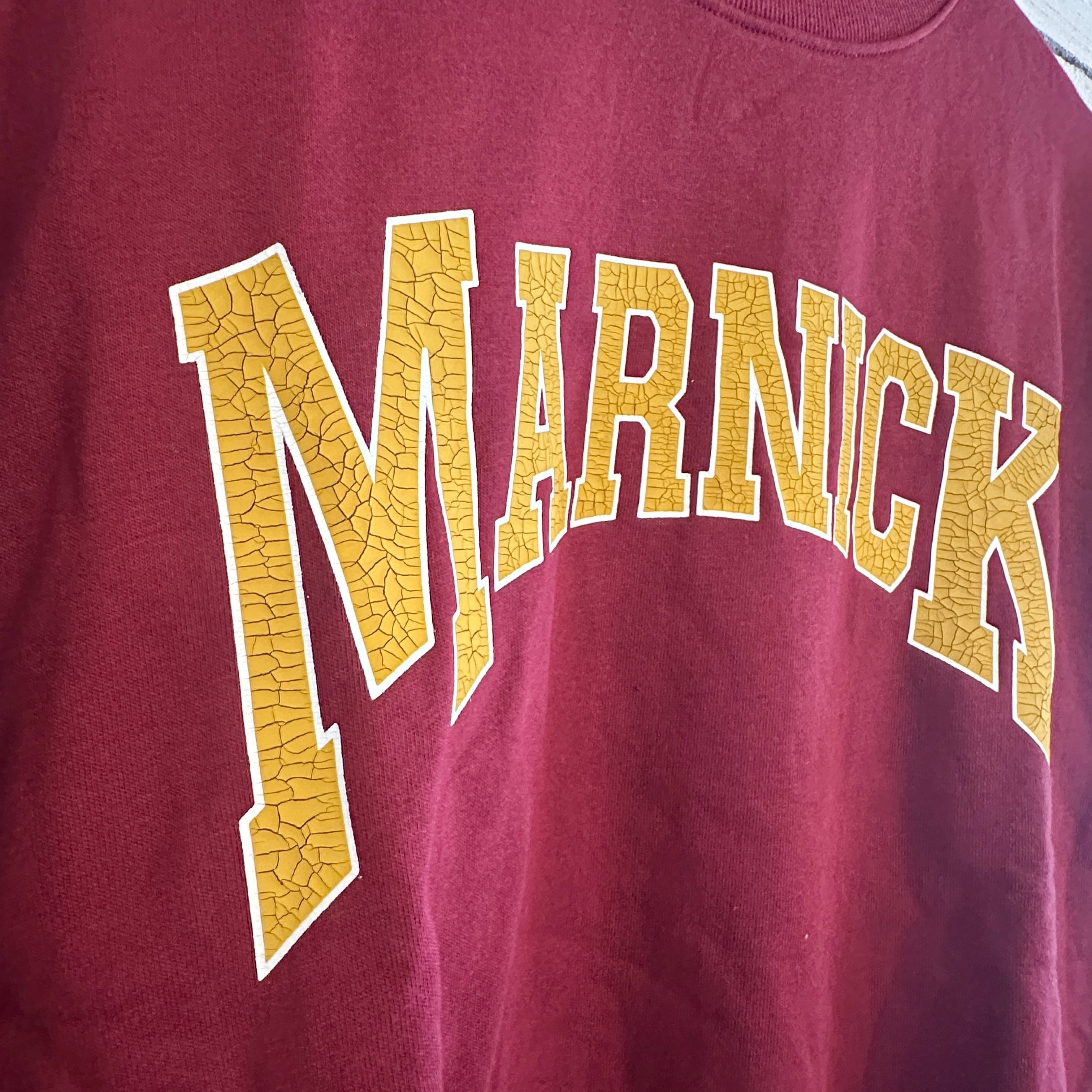 ボディに施された大きめのカレッジロゴプリントは、ひび割れ加工が特徴で、着込むほどに風合いが増し、味わい深い表情へと育っていきます。