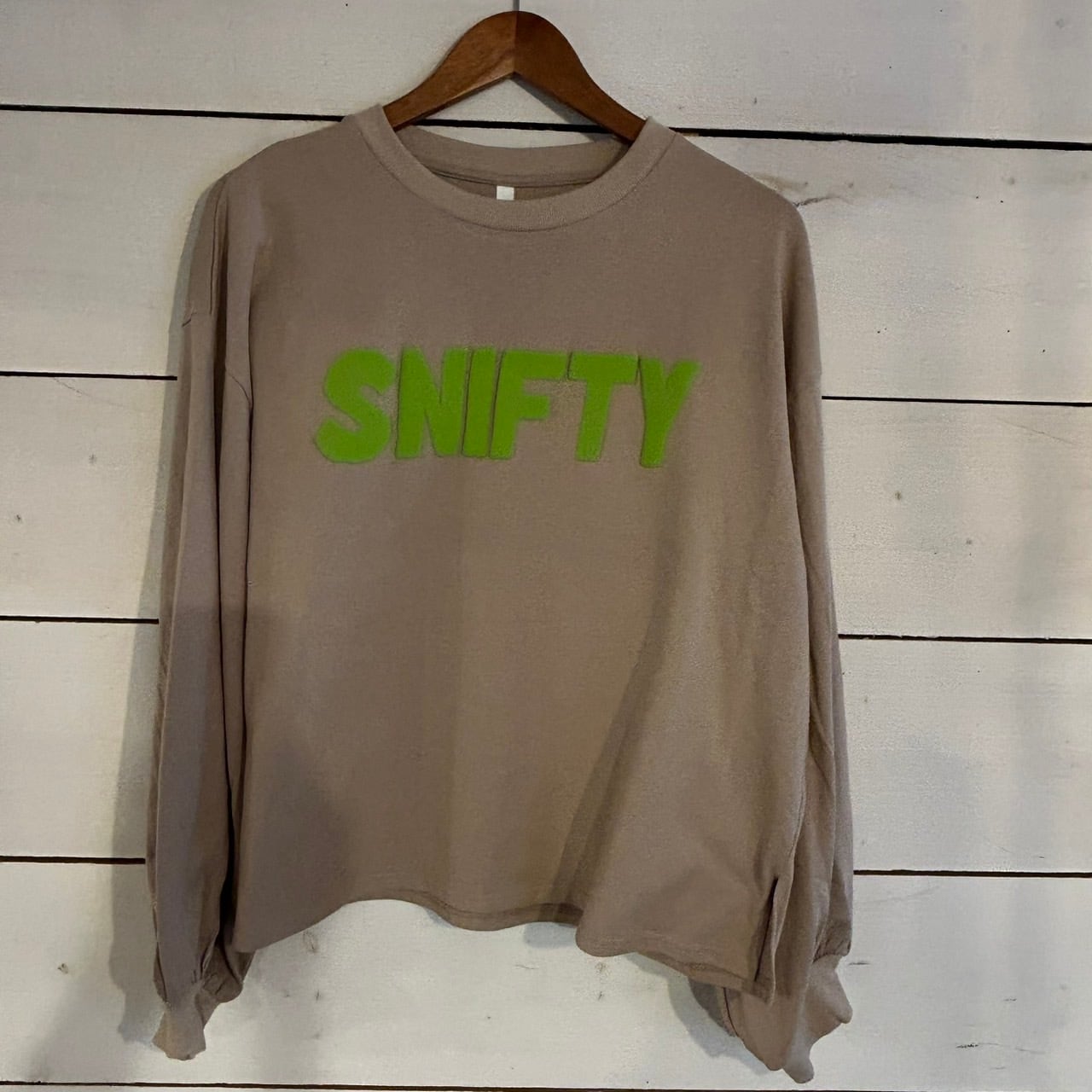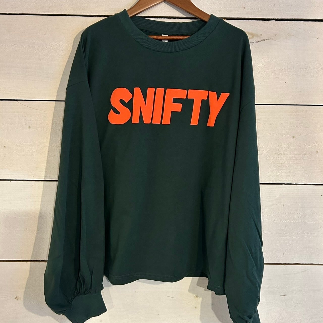 フロントに配された「SNIFTY」のアップリケは立体的で視覚的なインパクトがあり、