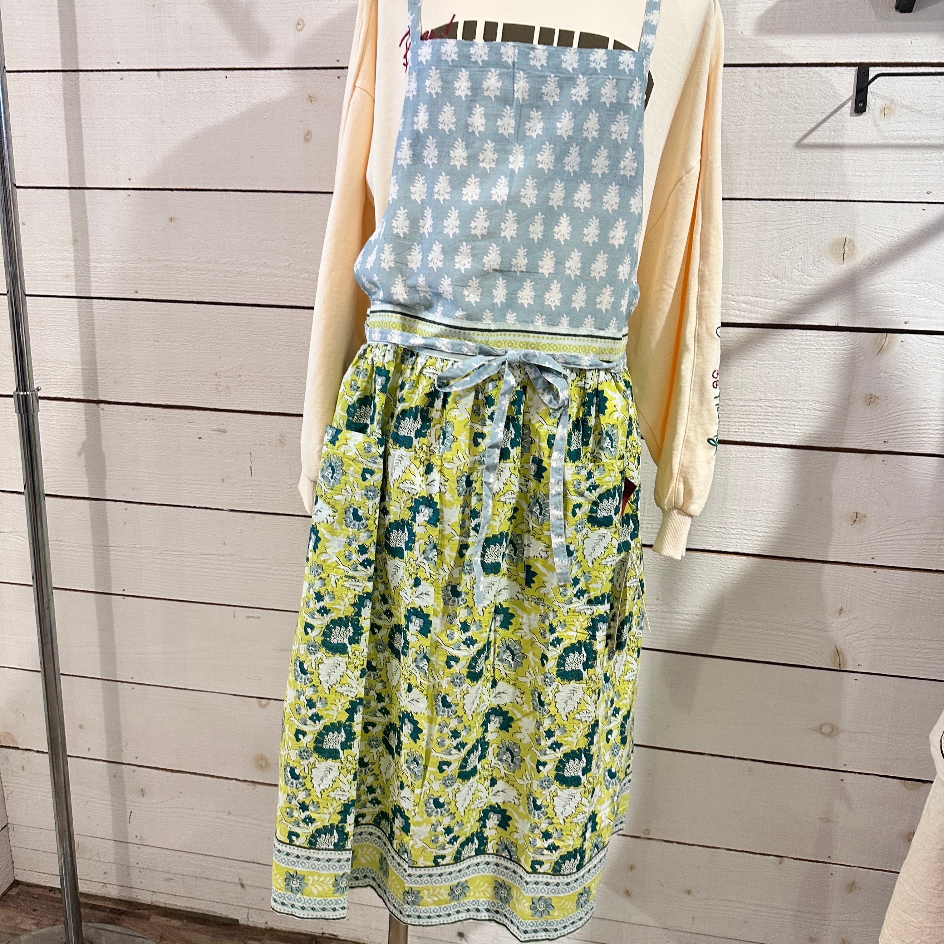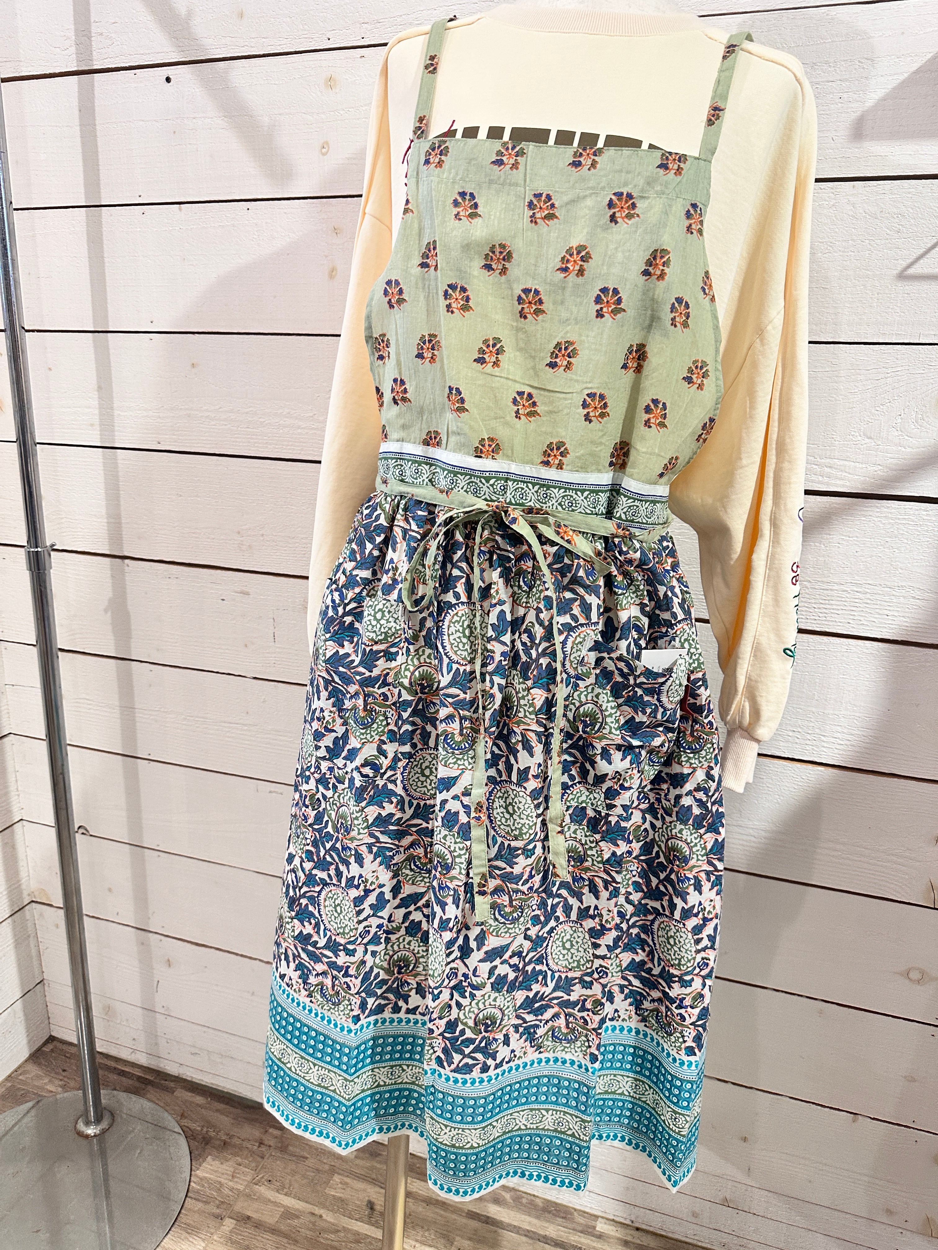 上部と下部で異なる小花柄が特徴的で、かわいらしさと華やかさを演出。キッチンでの作業やガーデンでの活動、そしてアウトドアシーンなど、さまざまな場面で活躍すること間違いなしです。日常使いはもちろんのこと、おしゃれなギフトにも最適です。