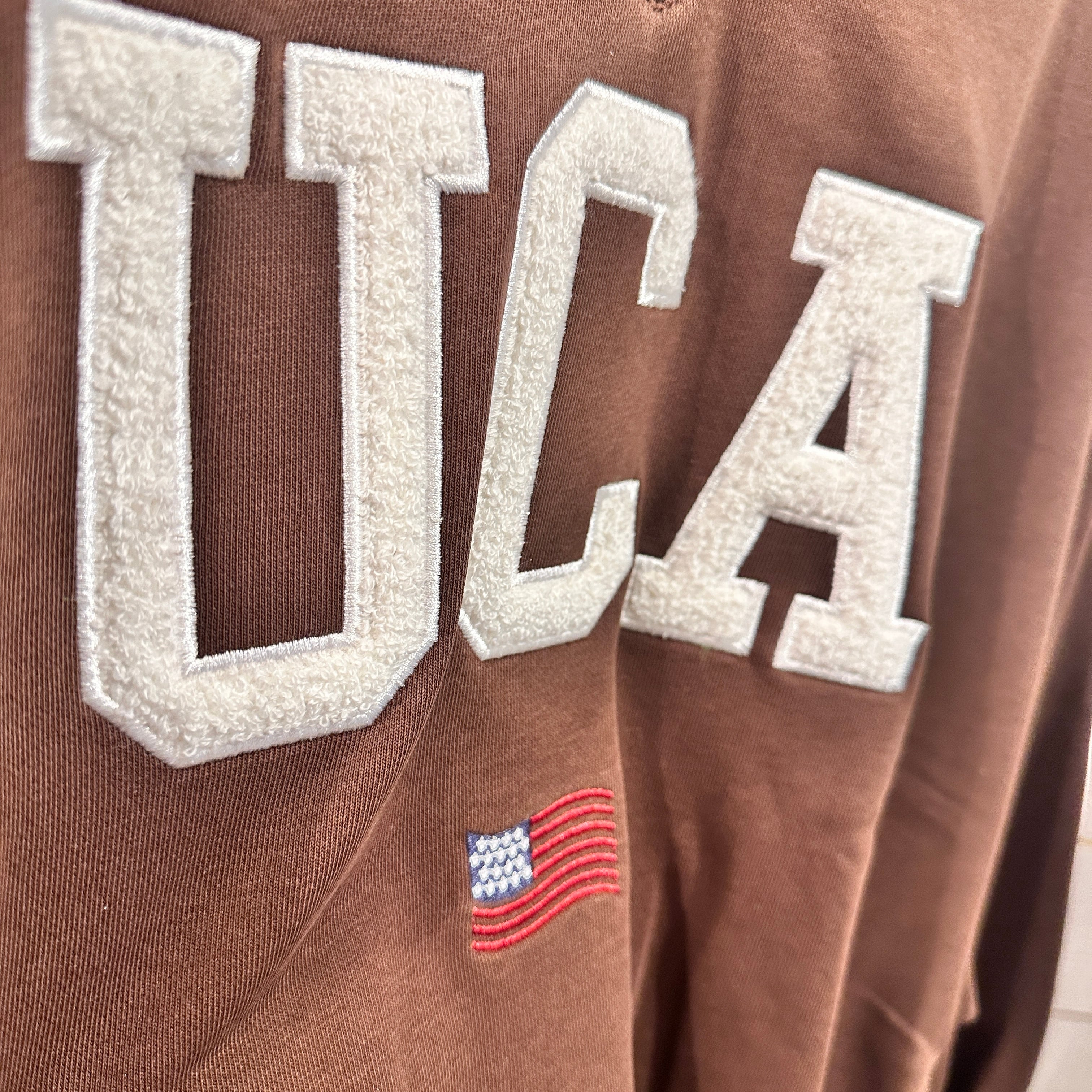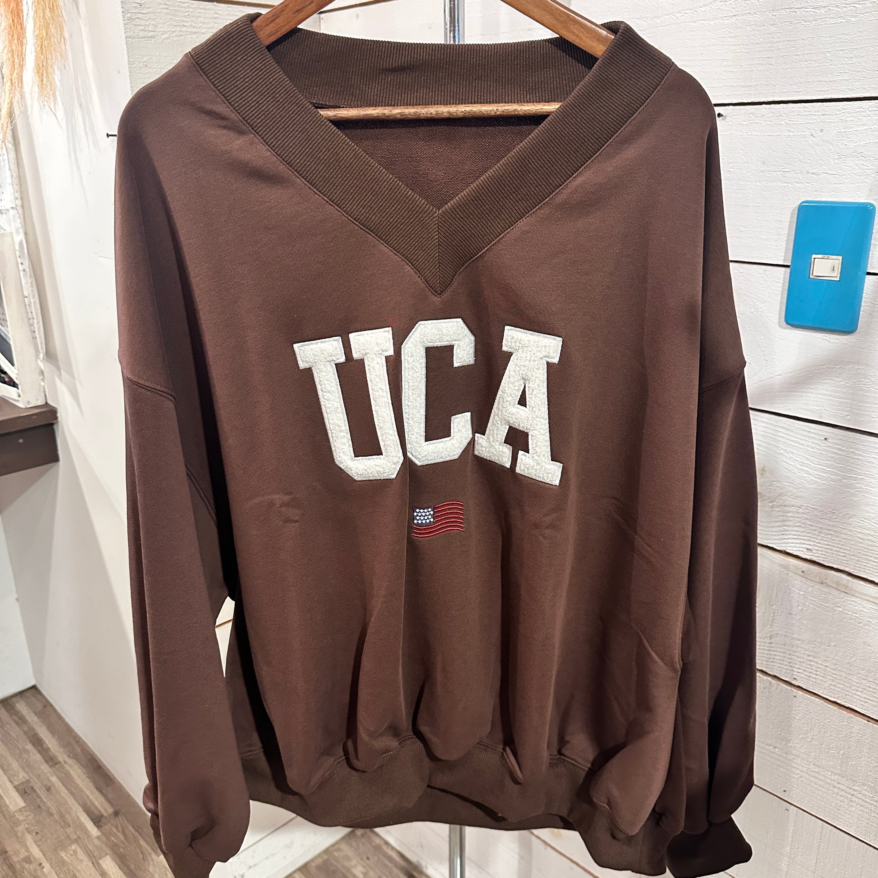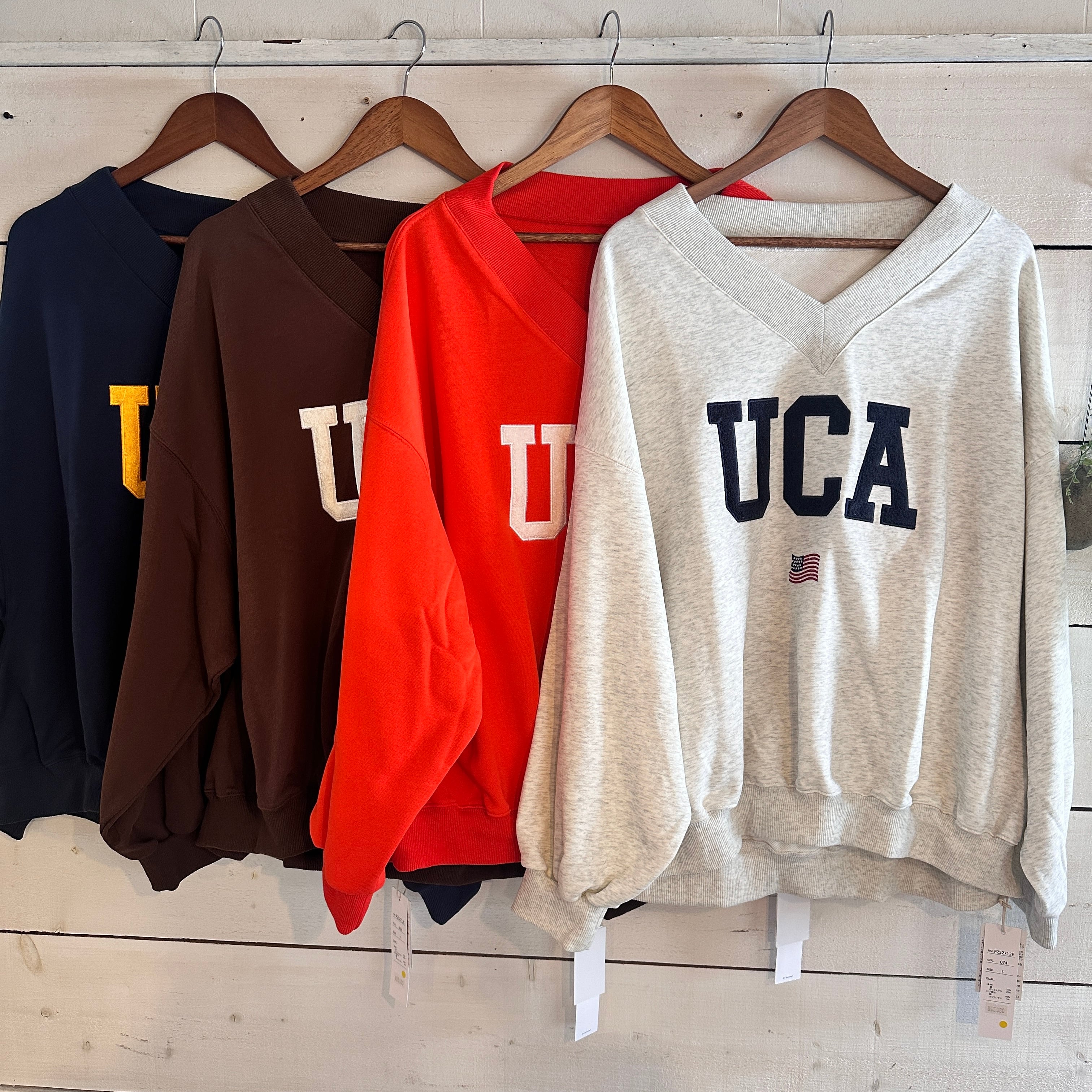 このプルオーバーは、Vネックのデザインが顔まわりをスッキリと見せ、サガラ刺繍の大きめロゴアクセントが個性的な印象を与えます。しっかりとした厚手の裏毛素材を使用しており、温かさと快適な着心地を実現。袖もゆったりとした作りで、リラックスした雰囲気の中にもおしゃれを感じさせる一着です。