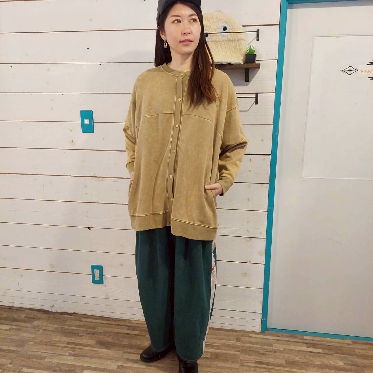 ケミカル加工によって生まれる独特な加工感が、コーディネートに個性をプラスします。裏毛素材を使用していることで肌触りが良く、デイリーに最適なアイテムです。ドルマンタイプのデザインは、動きやすさを考慮しつつ、トレンド感も演出。シンプルなトップスにさらっと羽織るだけで、洗練されたスタイルに仕上げてくれます。