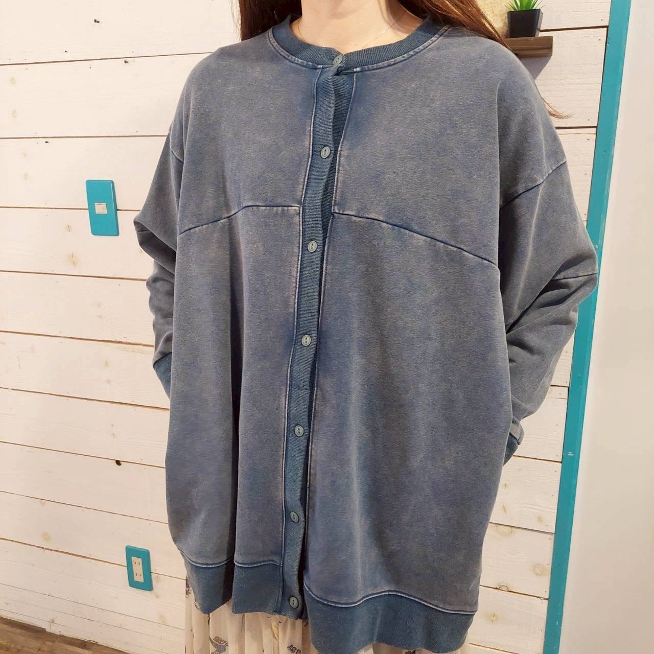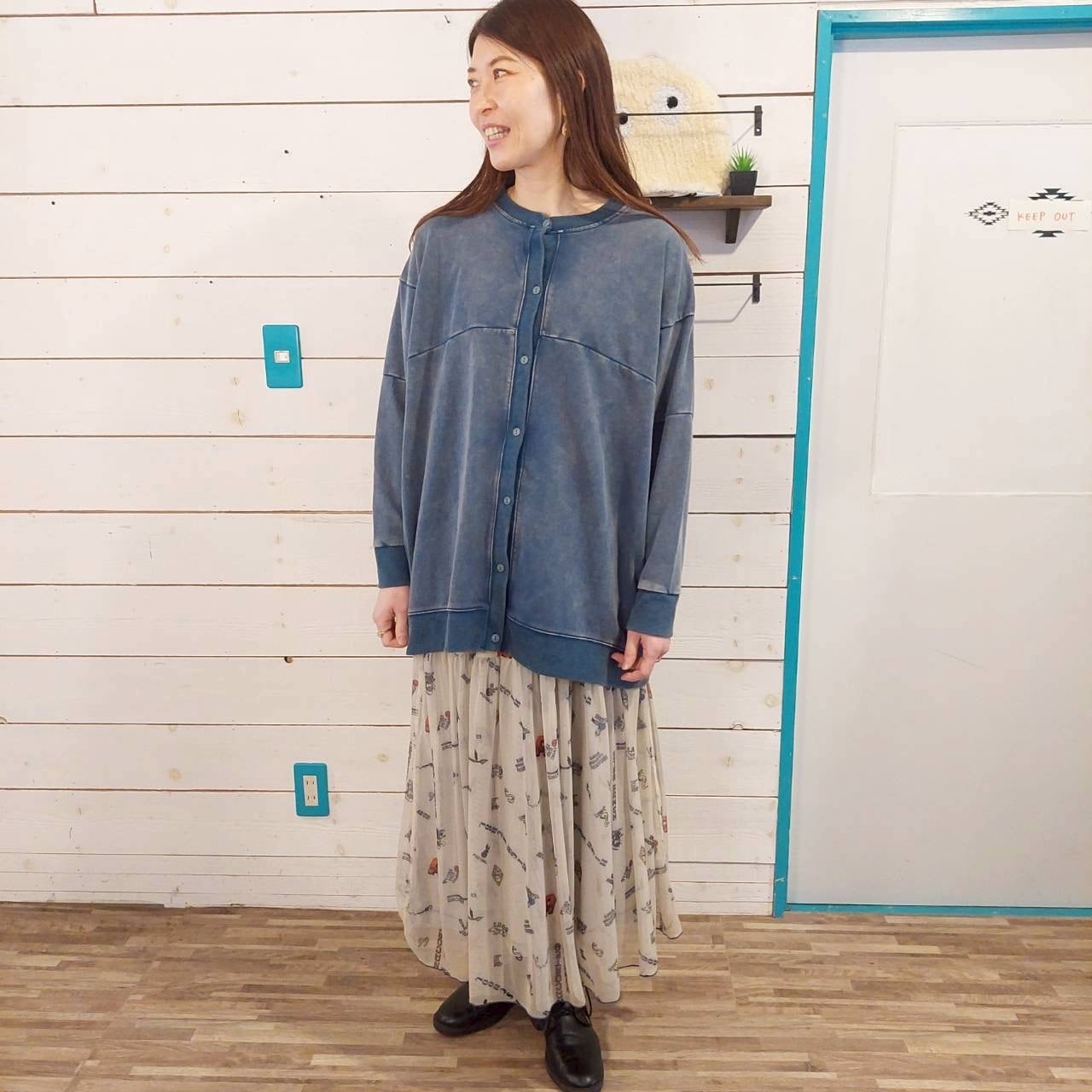 こだわりのある裏毛素材を使用し、スタイリッシュな印象の裏毛ケミカル加工切替ドルマンカーディガンです。このカーディガンは、ロング丈でおしゃれさを引き立てながらも、リラックスしたシルエットを楽しむことができます。