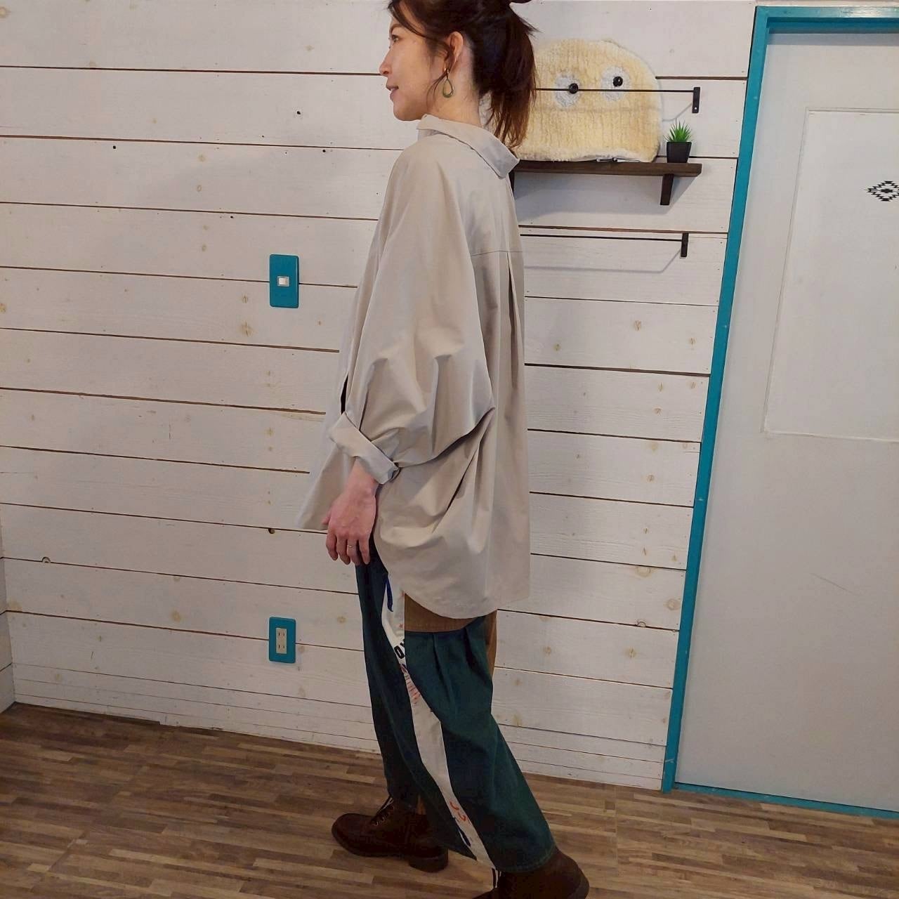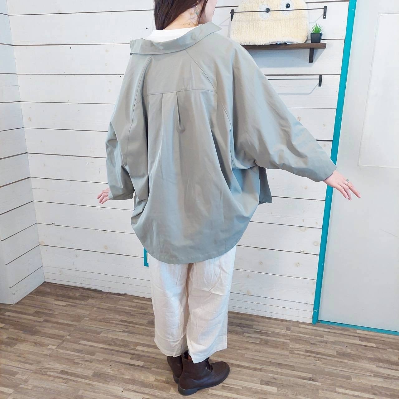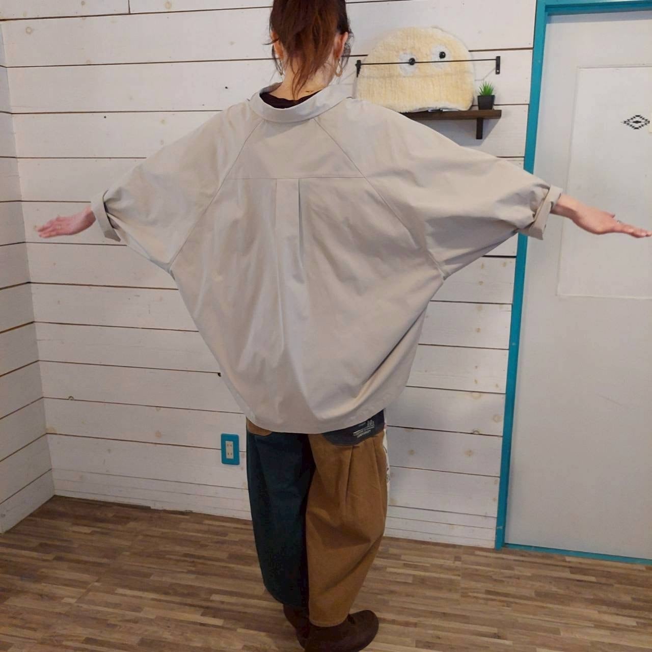 こだわりのあるソフトツイル素材を使用した、ソフトツイルポンチョシャツです。このビッグシャツは、ゆったりとしたシルエットで、リラックスした着心地を実現しています。アースカラーの落ち着いた色合いが、コーディネートに自然なこなれ感をプラスします。