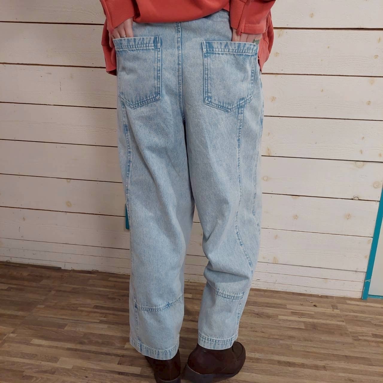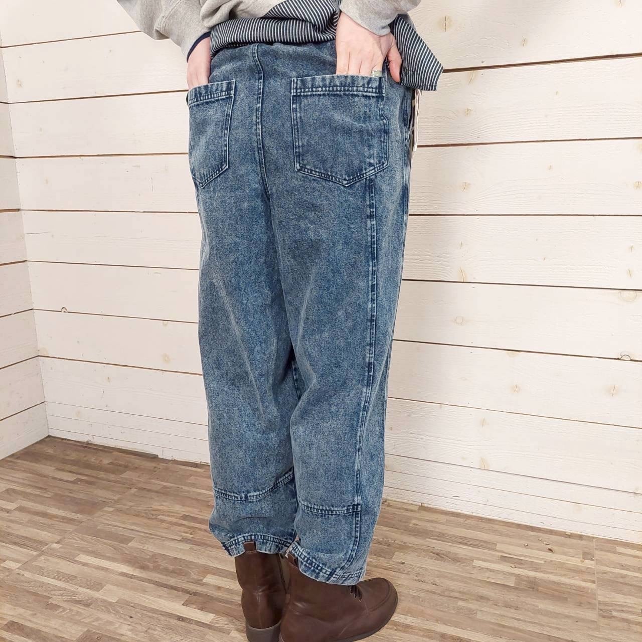 こだわりのあるカラーデニム素材を使用した、カラーデニムコクーンパンツです。このパンツは、ウエストゴム仕様で快適な履き心地を提供しながら、独特のコクーンシルエットが特徴で、トレンドを意識したスタイリングを楽しむことができます。