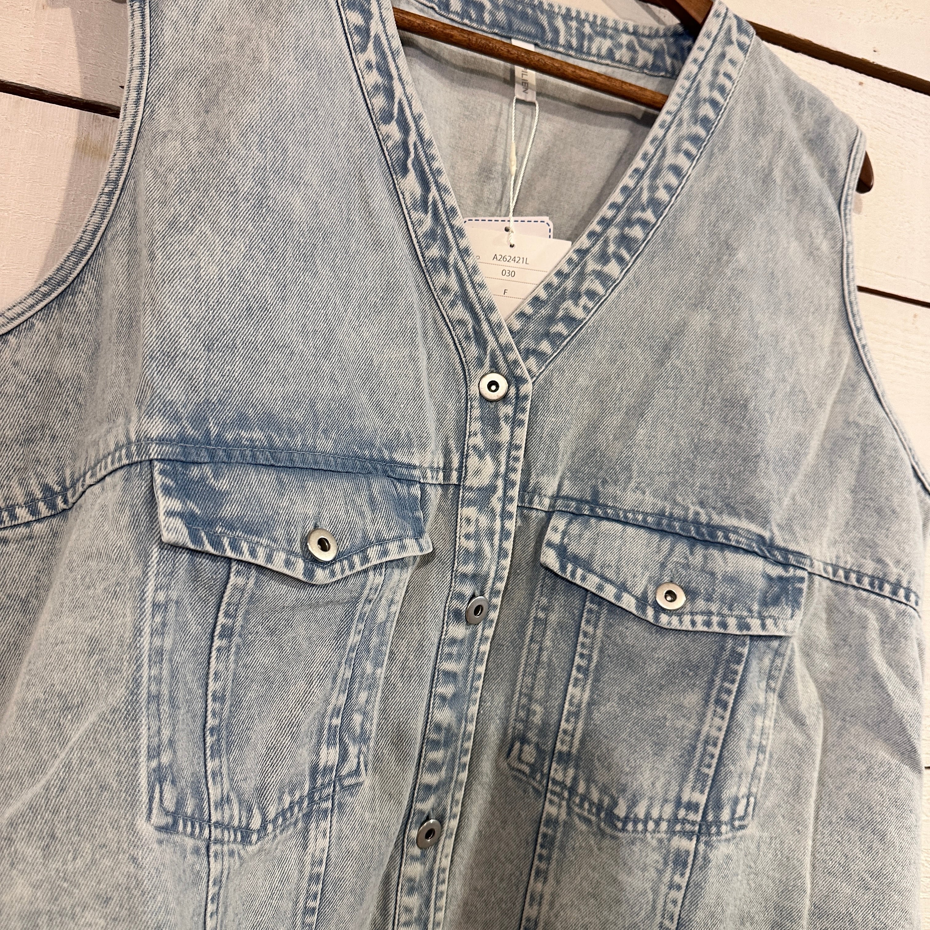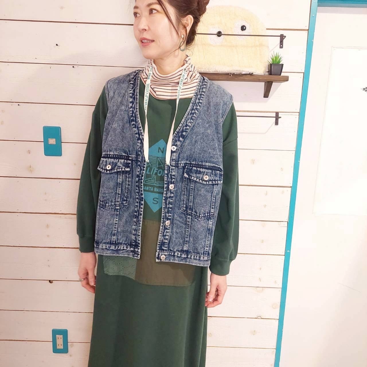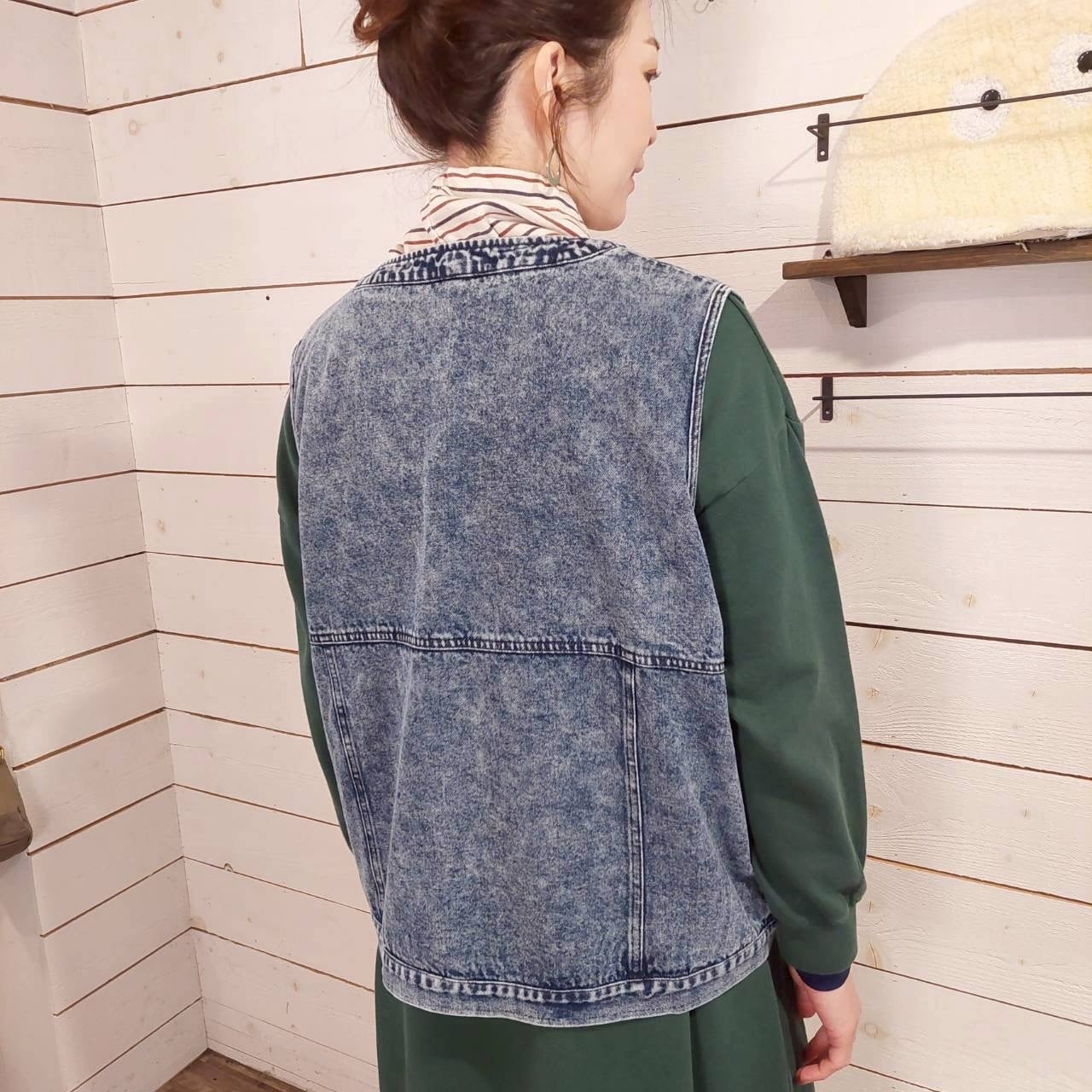 こだわりのあるカラーデニム素材を使用した、カラーデニムVネックベストです。このベストは、Vネックデザインが特徴で、首元をスッキリと見せながら、ラフさとおしゃれさを兼ね備えています。