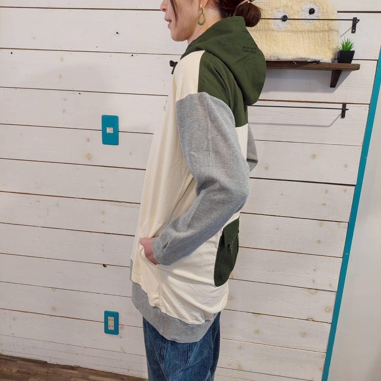 こだわりのOE天竺ワッフル素材を使用した、後ポケットフードチュニックです。このアイテムの特徴は、後ろに配置された大きなポケットが目を引き、着こなしに遊び心をプラスします!ワッフル生地との切り替えデザインが印象的で、一枚でさっと決まるスタイリッシュなスタイルを実現。シンプルながらもありそうでないデザインは、さまざまなコーディネートに合わせやすく、普段使いはもちろん、リラックスタイムやお出かけにもぴったりな一枚です。フードの裏地にはレース素材が使用されており、女性らしさも感じさせる仕上がりです。軽やかに着こなせる魅力的なアイテムを、ぜひお楽しみください!