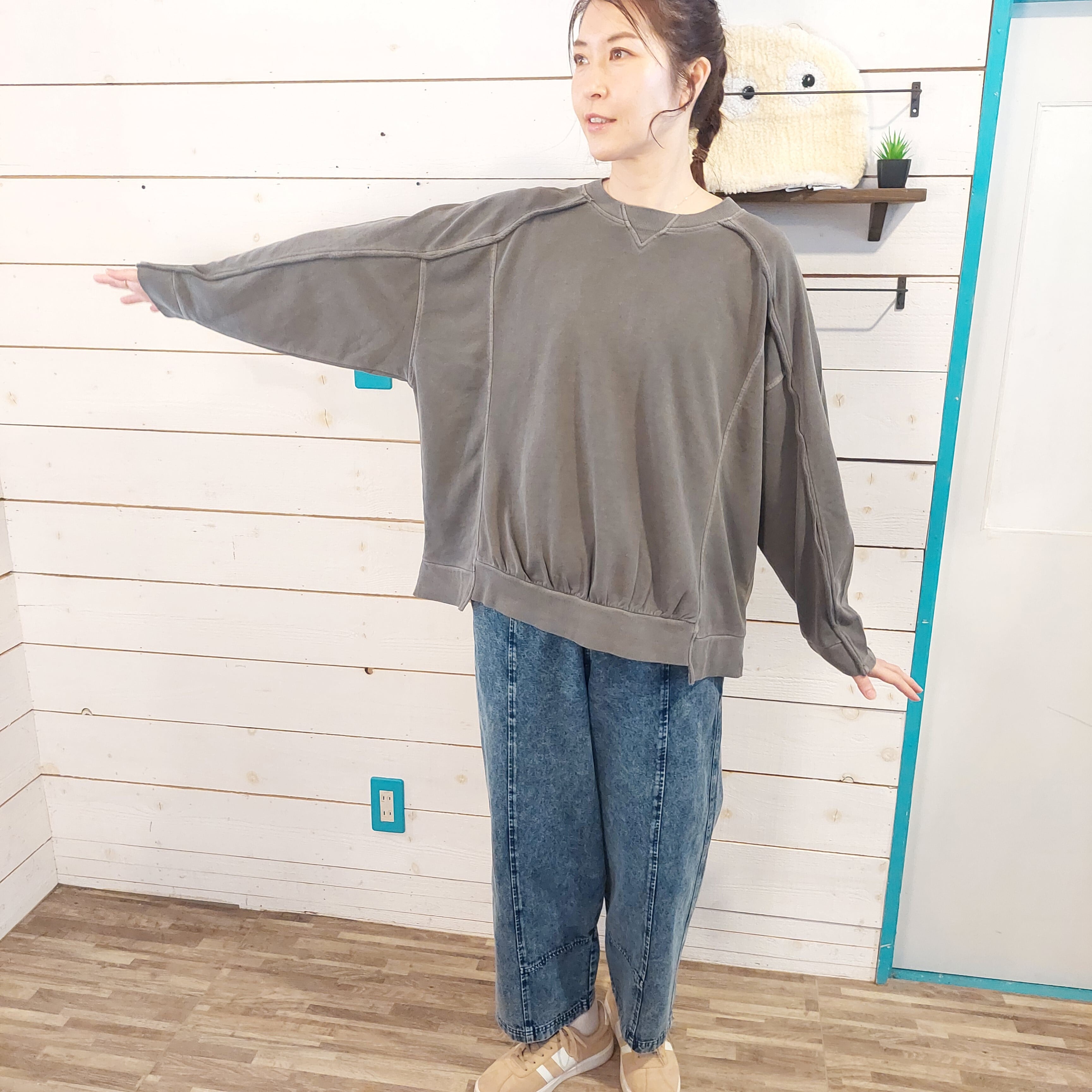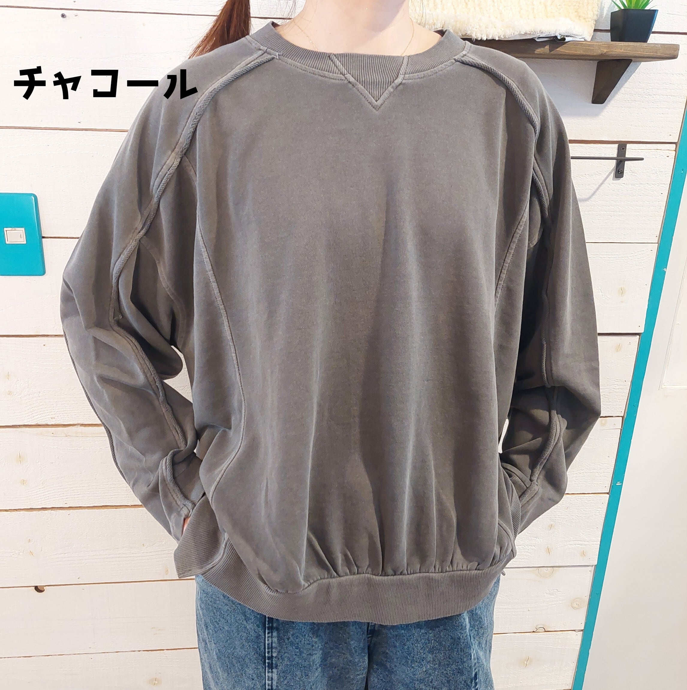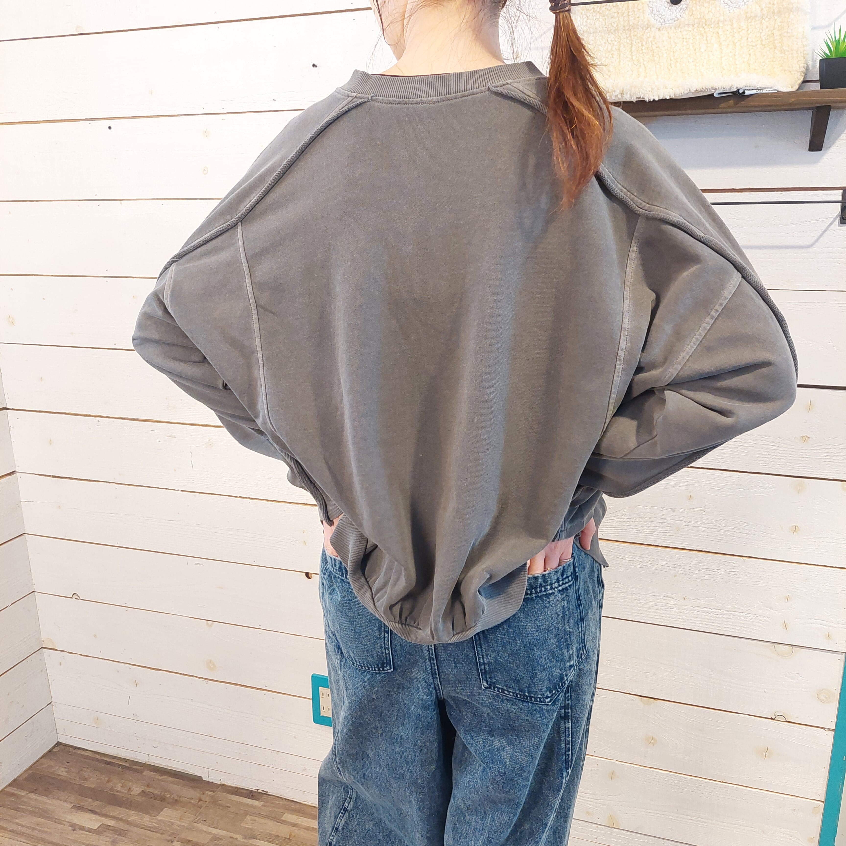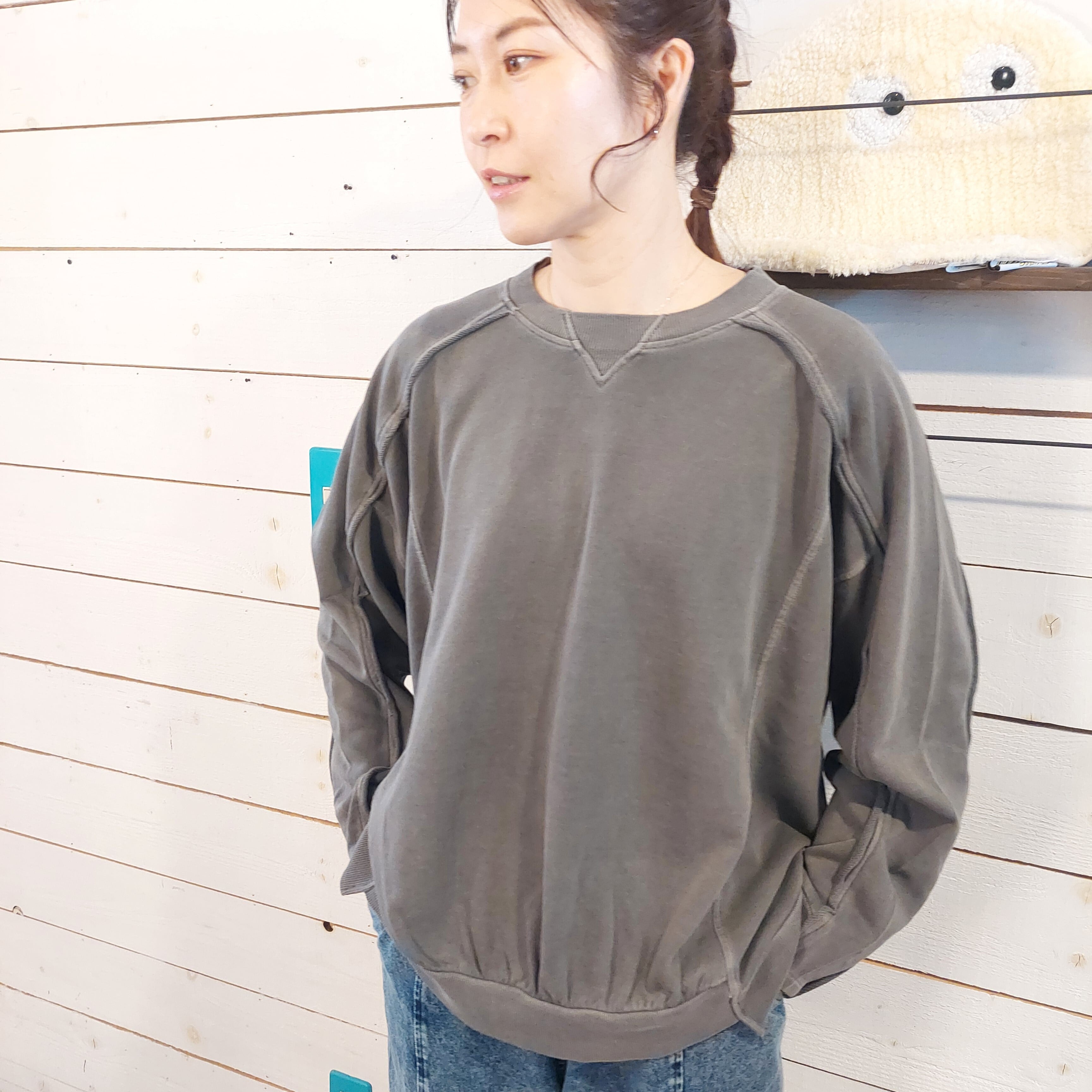裏毛ピグメント加工 ガゼット切替ラグランプルオーバーは、シンプルながらも洗練されたデザインの一枚です。ゆったりとした着心地でありながら、切り替え部分が絶妙なアクセントとなっており、どんなシーンでもおしゃれを楽しむことができます。さらりとした肌触りの裏毛素材は、一日中快適に過ごせるので、リラックスタイムやお出かけ時にも最適です。 ボトムスを選ばないこのプルオーバーは、デニムやスカートなど様々なスタイルに合わせやすく、自分だけのコーディネートを楽しむことができます。このアイテムを取り入れることで、あなたのファッションの幅が広がること間違いなしです!