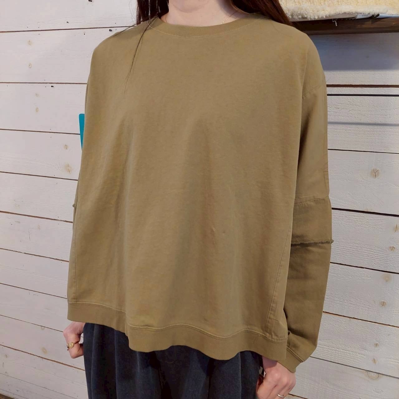 布帛切替バック刺繍ワイドクルーネックは、上質なデザインと快適な着心地を兼ね備えたアイテムです。両サイドの切替部分に施された布帛素材が絶妙なアクセントとなり、大人のカジュアルスタイルを引き立てます。製品染による独特な風合いが魅力で、着込むごとに味わいが増していきます。