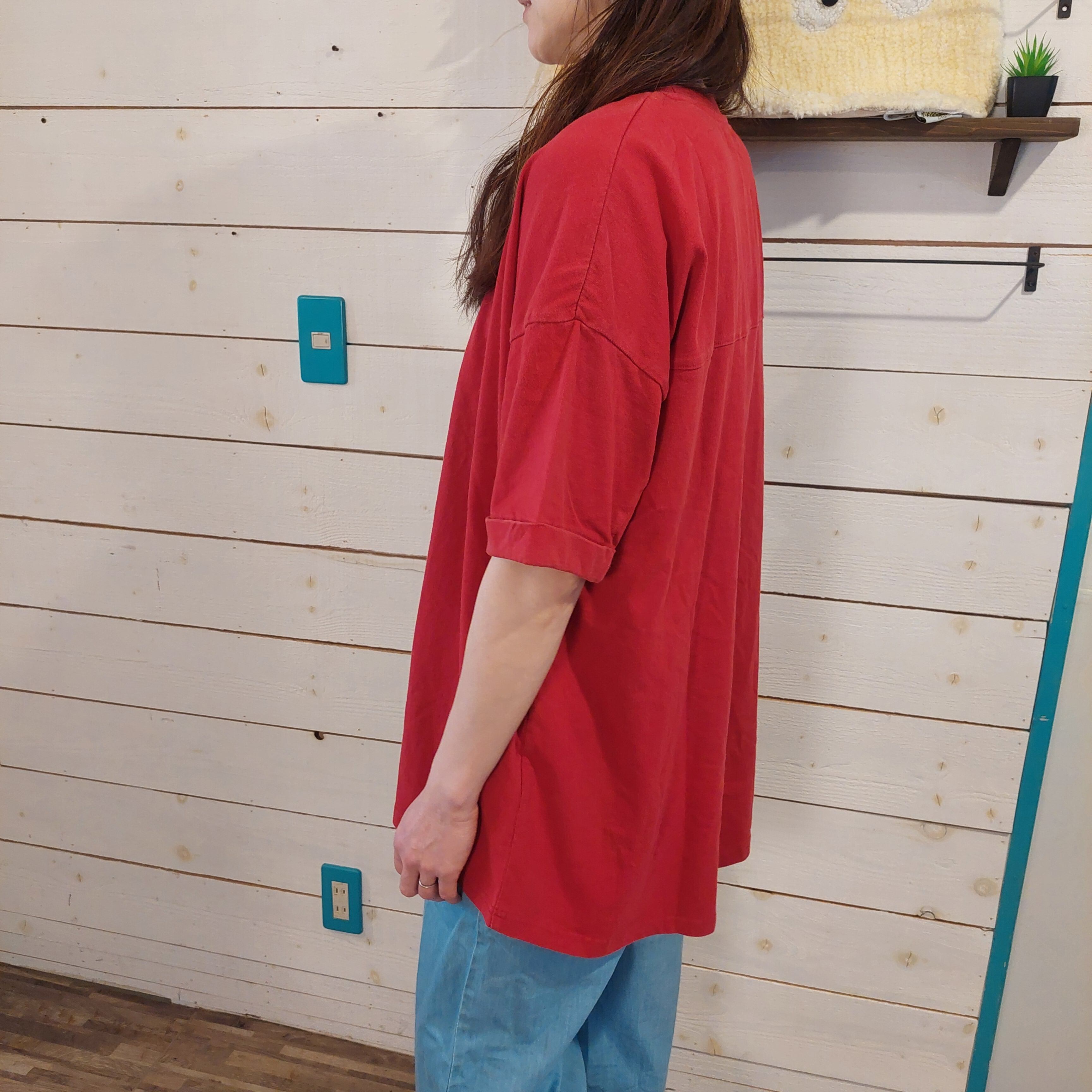 デザインのポイントは、ユニークなデニムのパッチワークデザインで、どの角度から見ても楽しめるビジュアルが魅力的です。また、柔らかなパウダー天竺素材を使用しているため、肌触りも抜群です!一枚でシンプルに着こなすも良し、他のアイテムとレイヤードして個性を楽しむのもおすすめです。