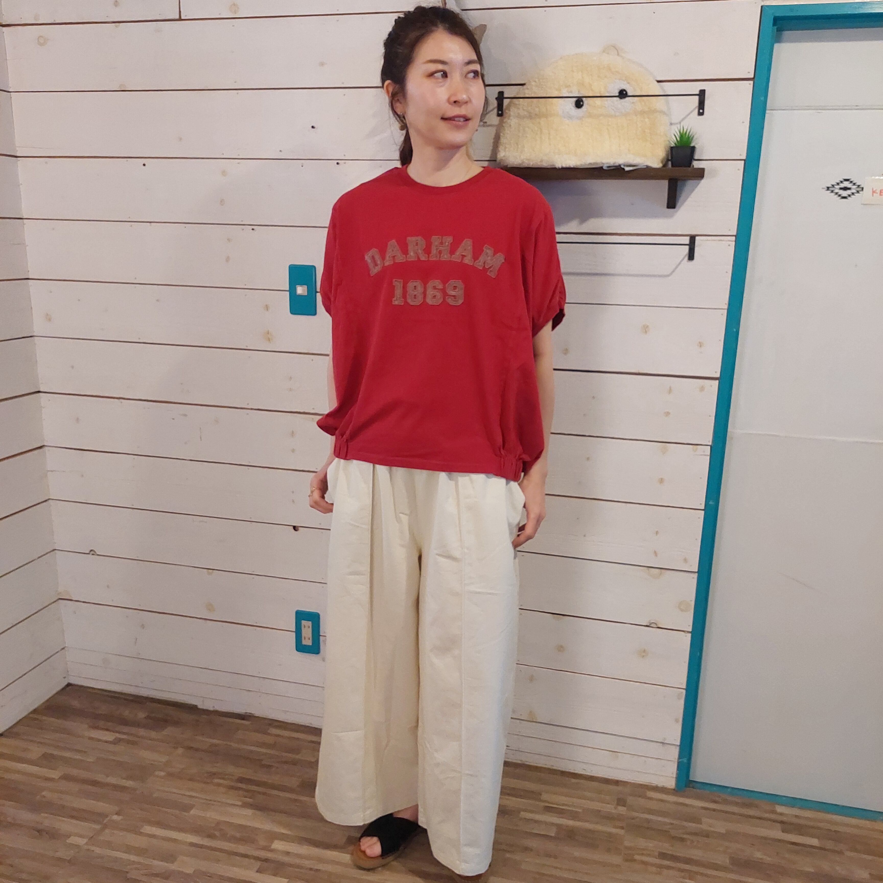 実店舗でのたたみシワ、発送時の折りシワが生じることがあります。