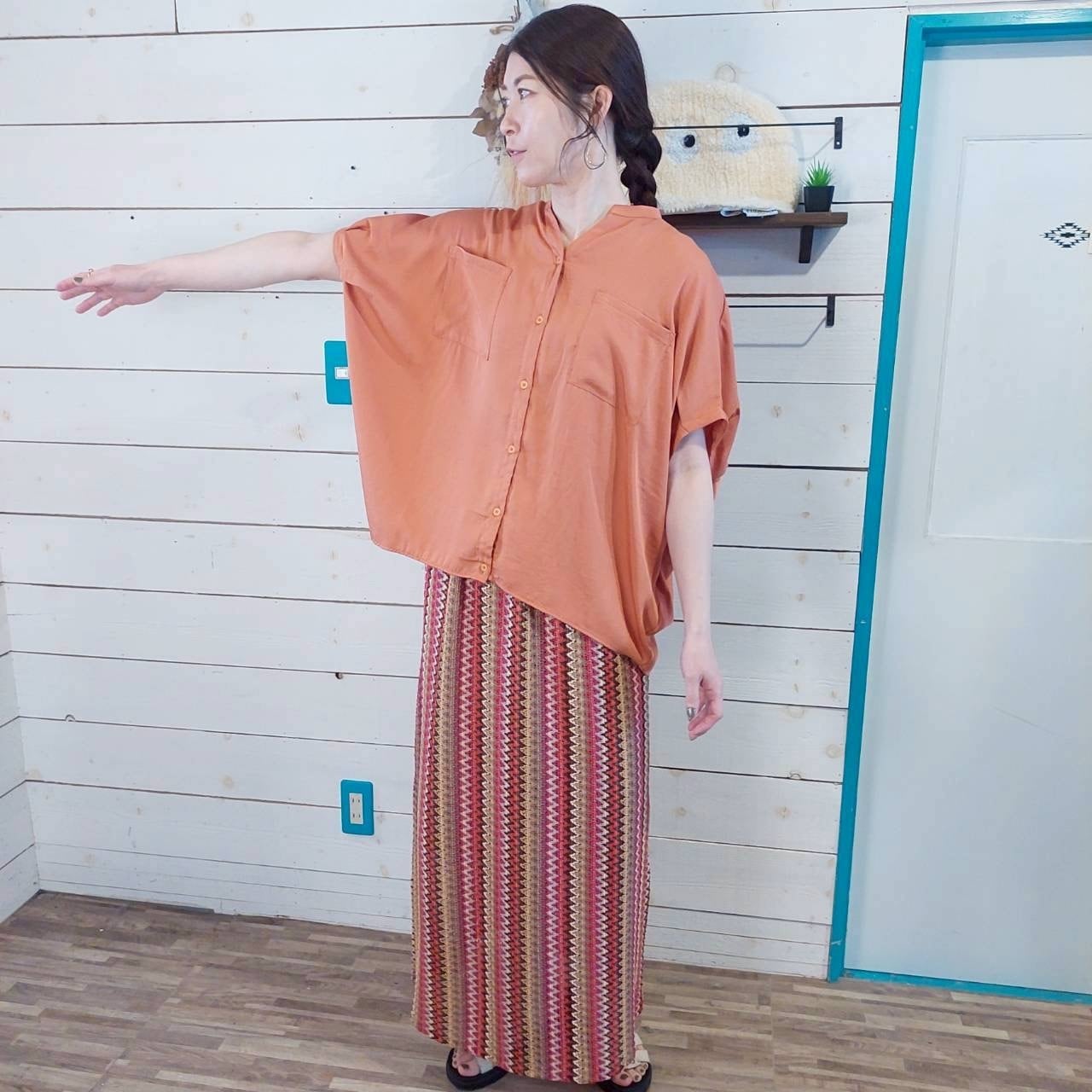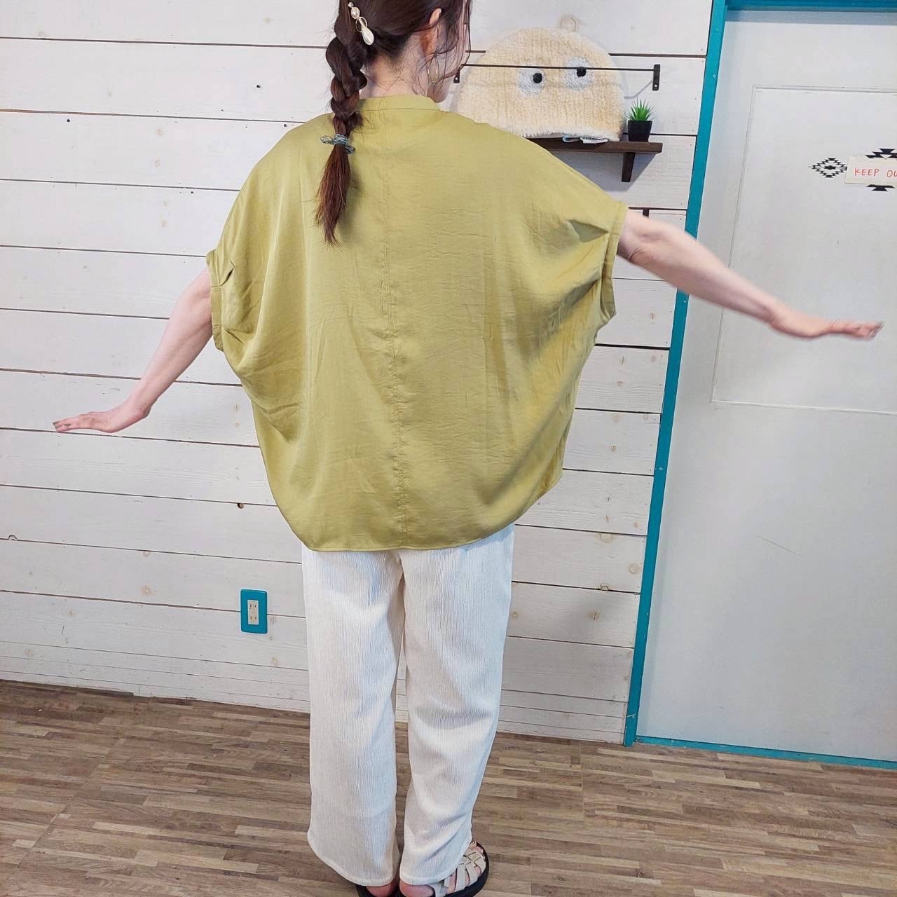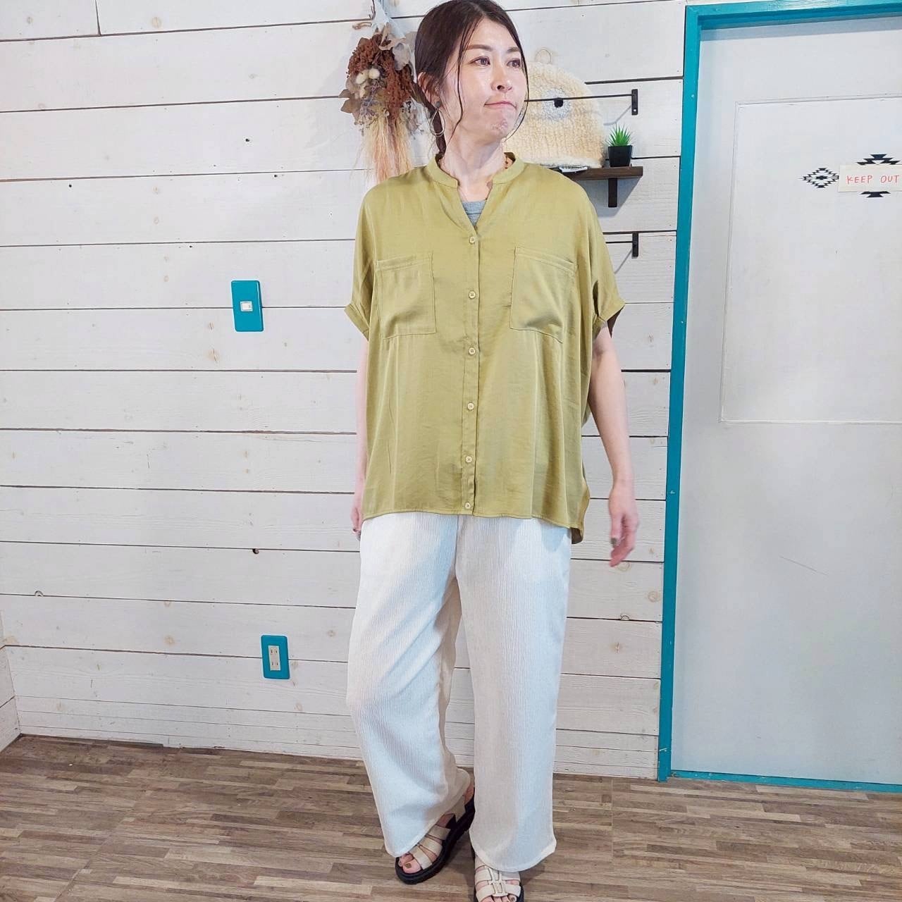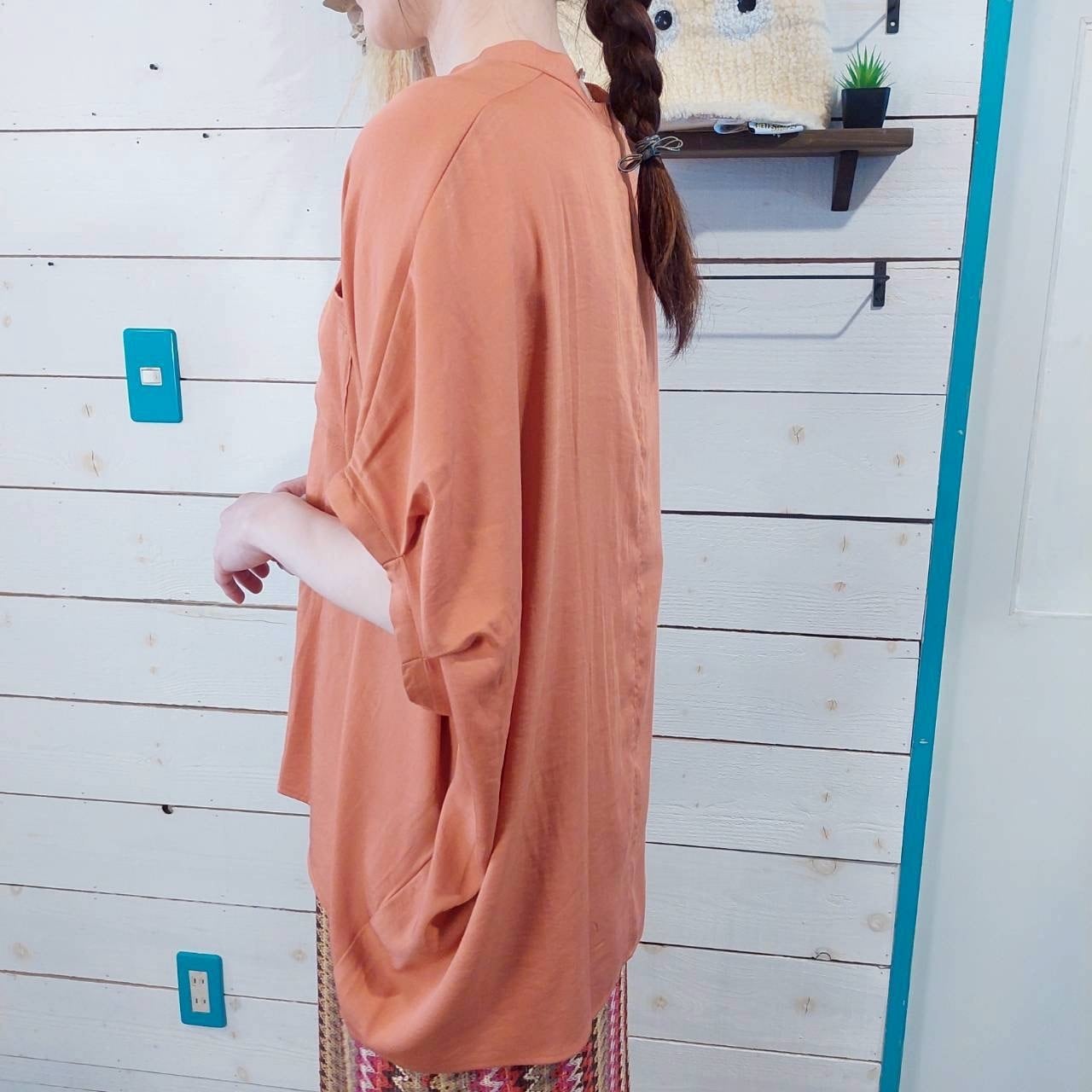 レーヨンナイロンスラブキーネックドルマンシャツは、さらりとした着心地が魅力的な一枚です!ゆったりとしたシルエットながら、首を美しく見せるキーネックデザインがあなたのスタイルに洗練さをプラスします♪ 袖口は丸く、肩から腕にかけてのラインがきれいに見えるため、どんなシーンでも自信を持って着こなせるアイテムです。このドルマンシャツは、柔らかなレーヨンナイロン素材を使用しており、肌触りが心地良く、デイリーコーディネートから特別なお出かけまで幅広く活躍します。シンプルでありながら存在感のあるデザインは、様々なボトムスとも相性抜群です!