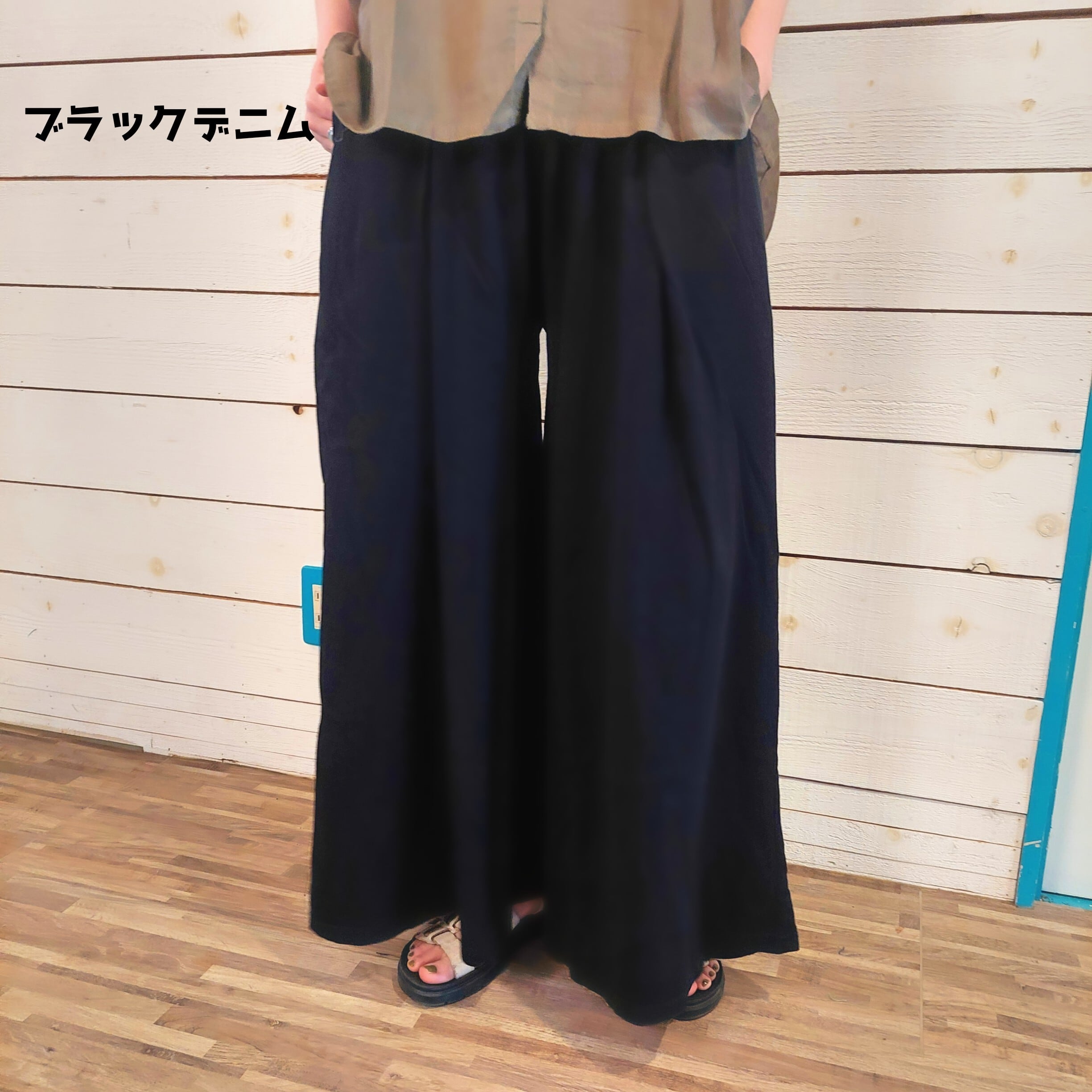 インディゴ天竺ボックスタックワイドパンツは、洗練されたシルエットと快適な履き心地を兼ね備えたアイテムです!フロント部分のタックデザインが立体感をうみ脚を美しく見せ、裾にかけてストンとしたシルエットが脚長効果を発揮します♪ ウエスト部分にはゴムが入っているため、動きやすさも抜群で、リラックスしたスタイルを楽しむことができます。このパンツはシンプルでありながらもスタイリッシュな印象を与え、デイリーユースはもちろん、お出かけシーンでも大活躍のこと間違いなしです。ぜひお手に取ってみてください!
