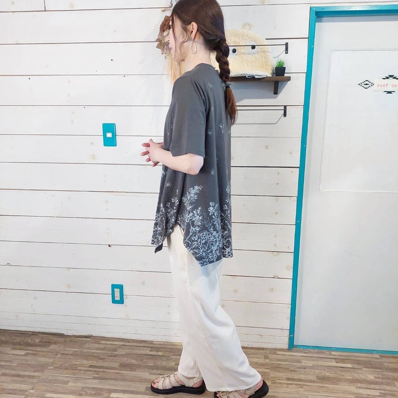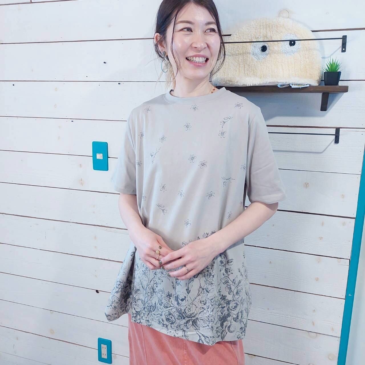 シルケット天竺総柄プリント変形チュニックは、華やかさと快適さを兼ね備えた一着です!裾が台形型になっているデザインが、体型をしっかりカバーしながらも、女性らしいシルエットを演出します♪ 適度に長めの丈感で、どんなボトムスとも相性抜群。シルケット天竺素材を使用しているため、肌触りが柔らかく、デイリー使いにも特別なお出かけにも最適です。このチュニックは、シンプルながらも存在感のある総柄プリントが特徴で、コーディネートにアクセントを加えます。日々のスタイルを引き立てるアイテムとして、ぜひご覧ください!