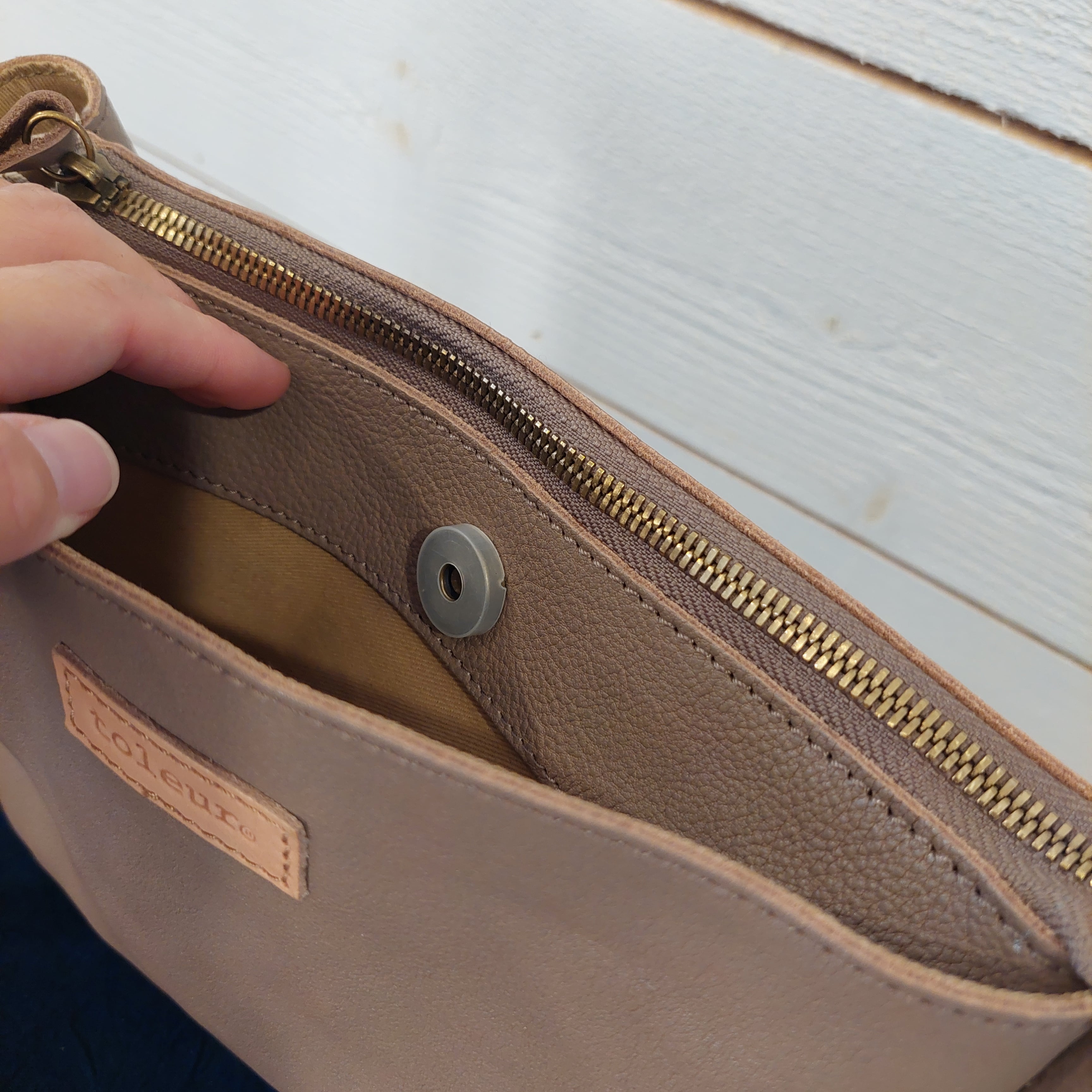 お財布にスマートフォン・コスメなどのお出掛けの必需品を一同に詰め込んでお持ち歩きいただける収納力と、頼れる裏地付きの仕上がりが特徴です。