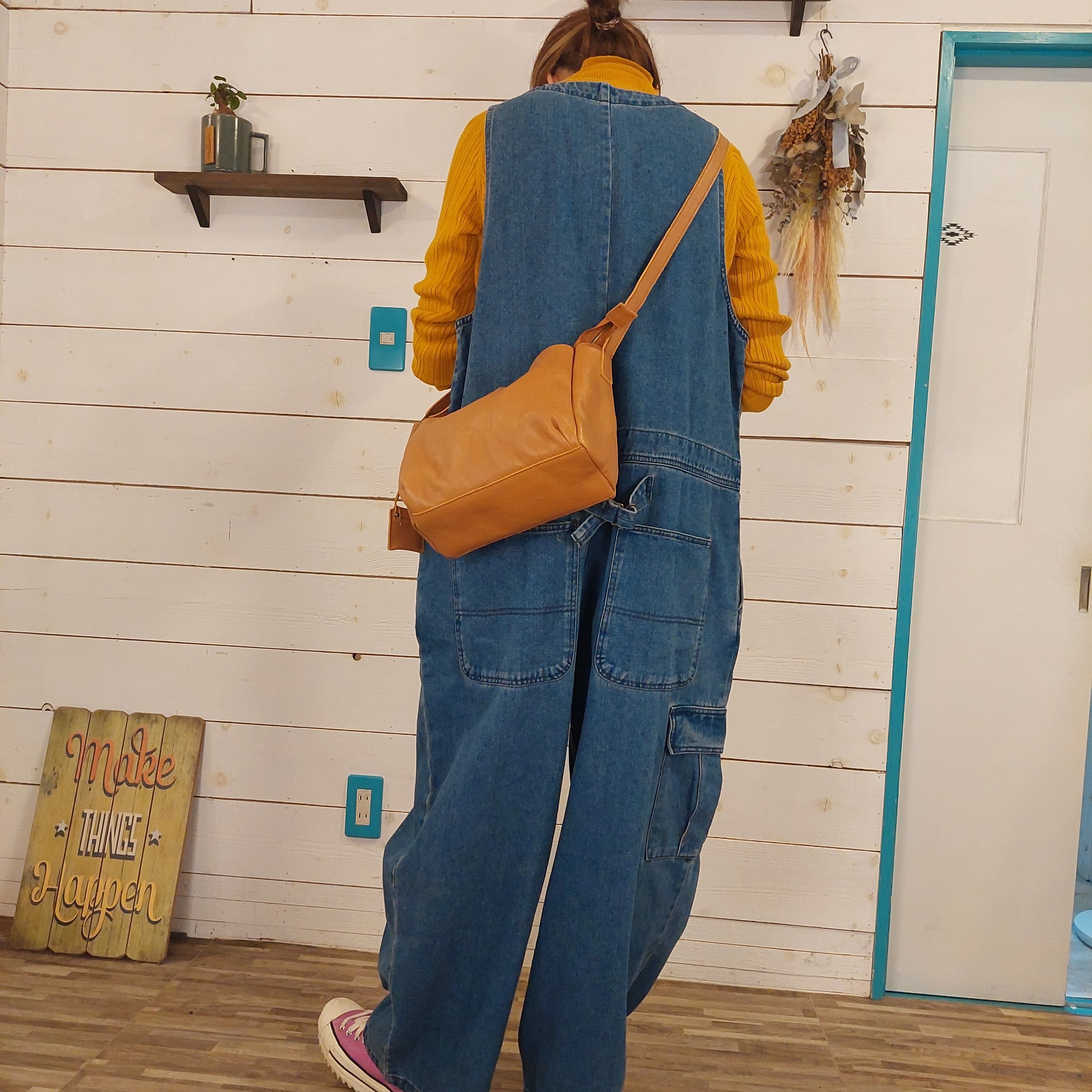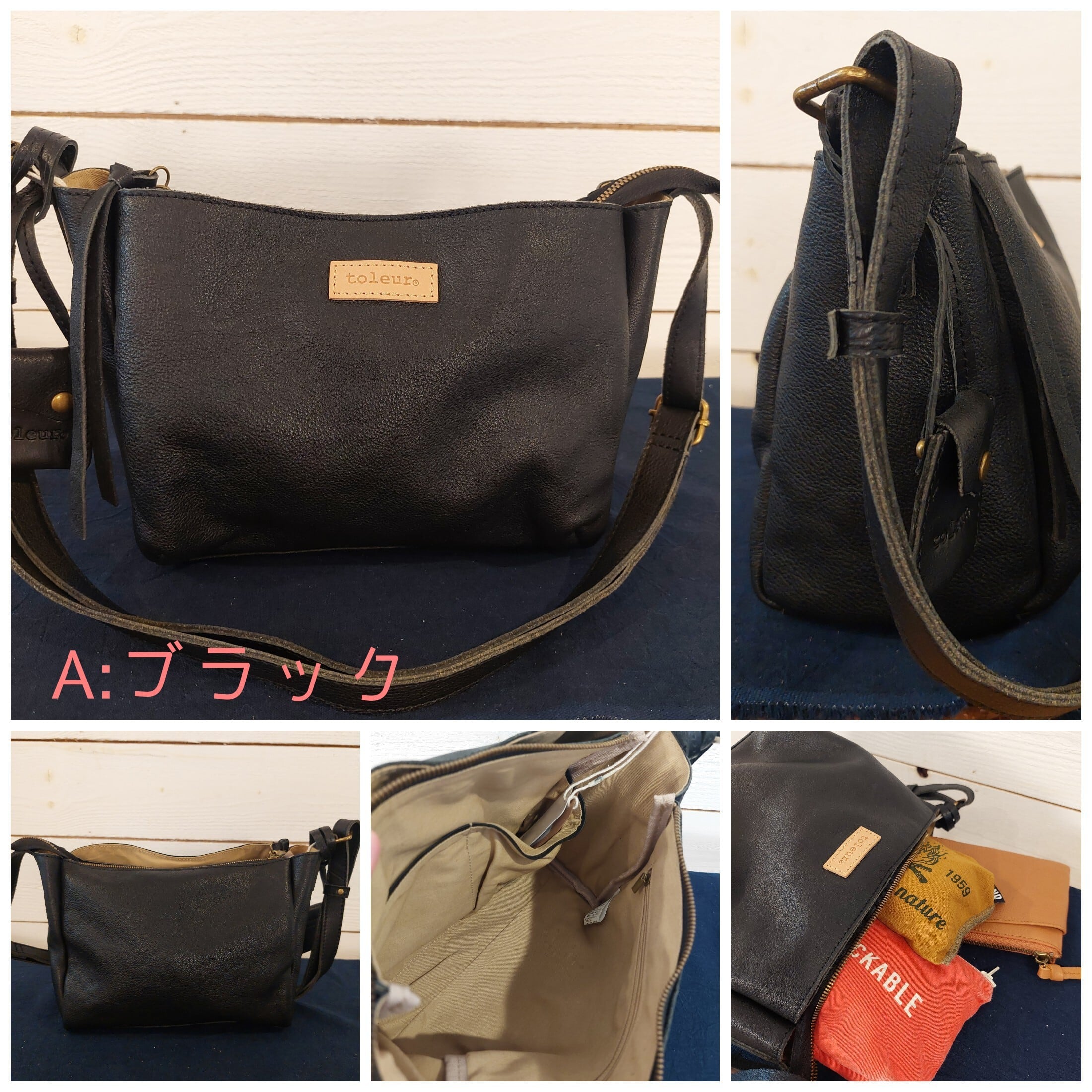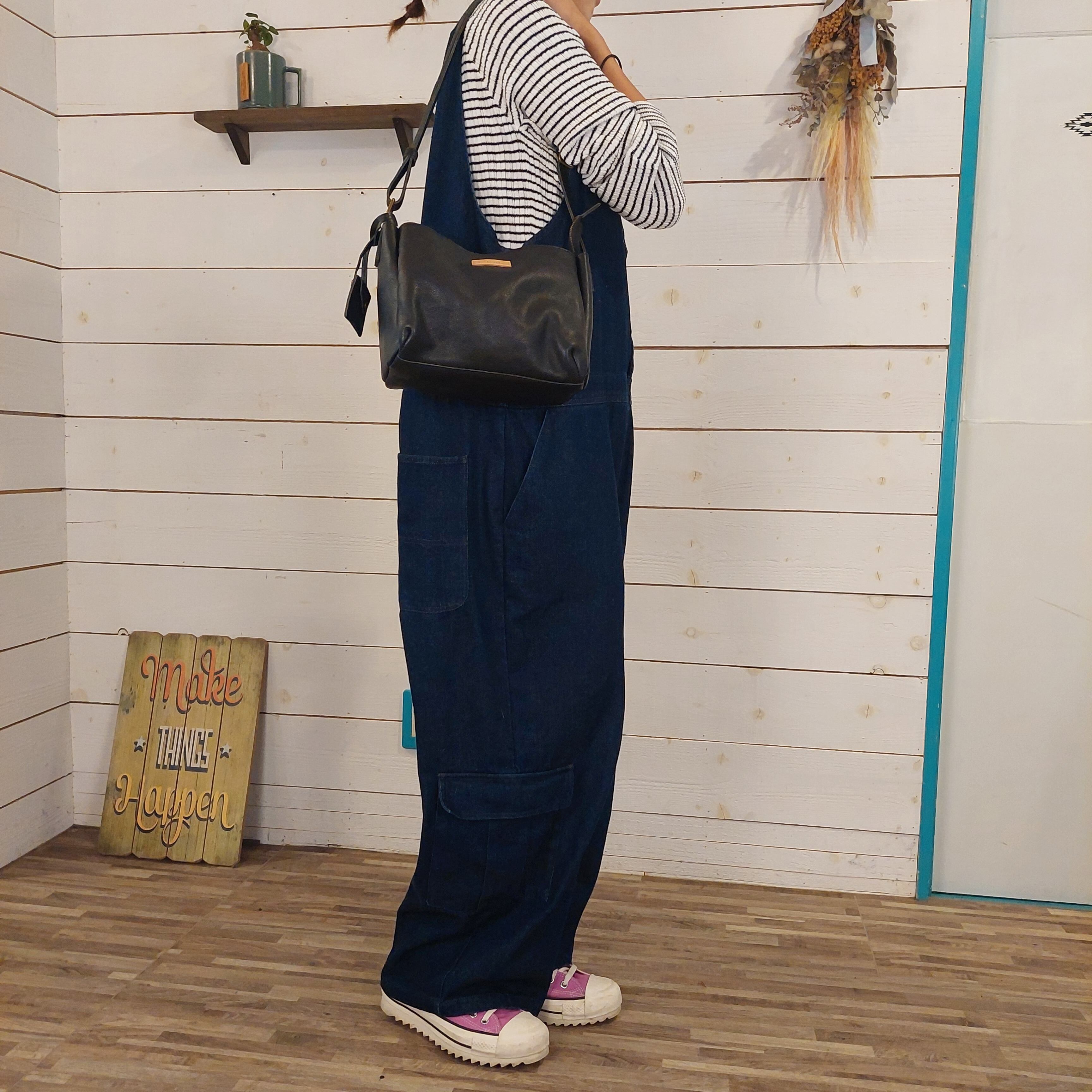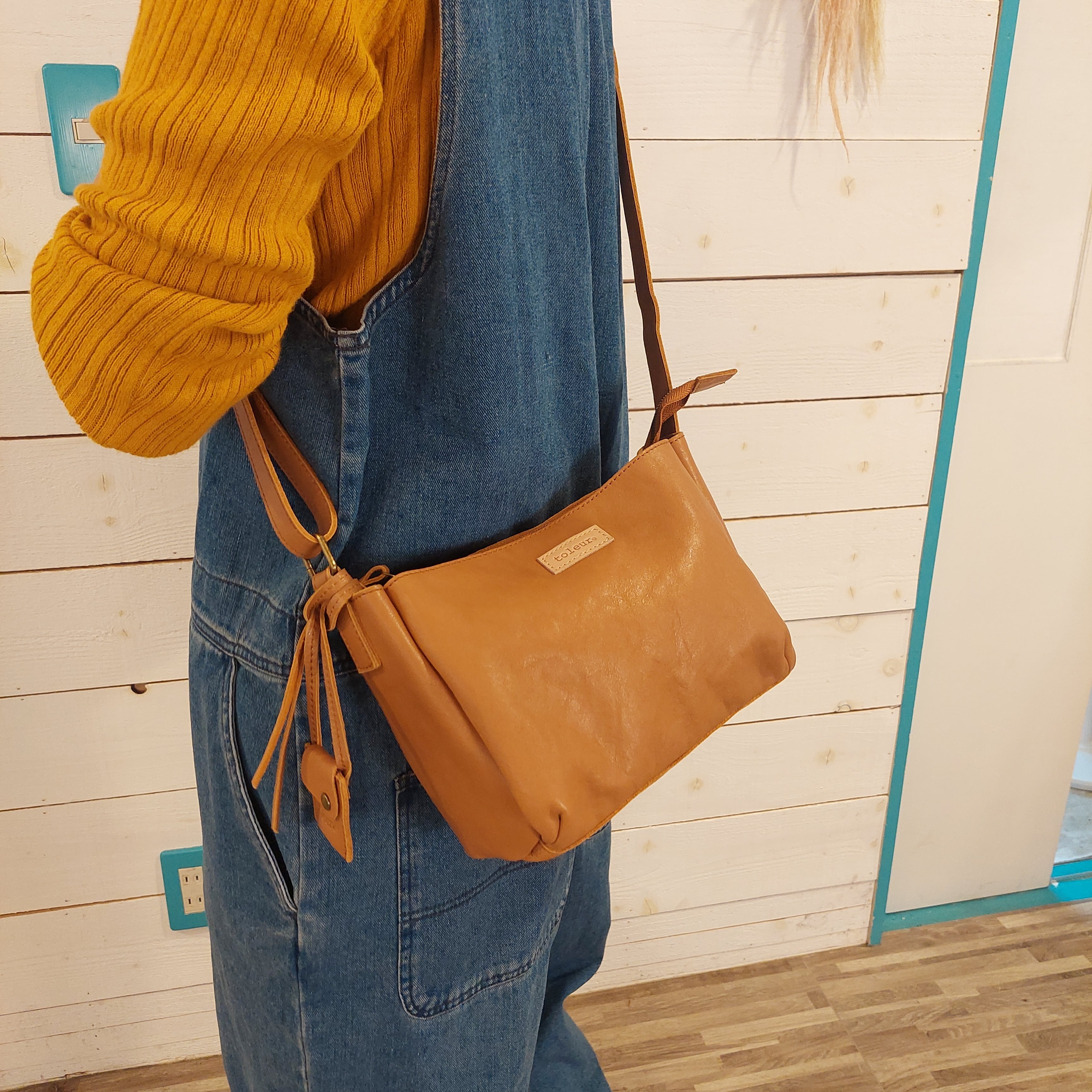 フロントにオープンポケットをプラスした台形ショルダーは、長さ調節可能なストラップで肩掛けもたすき掛けもOK。