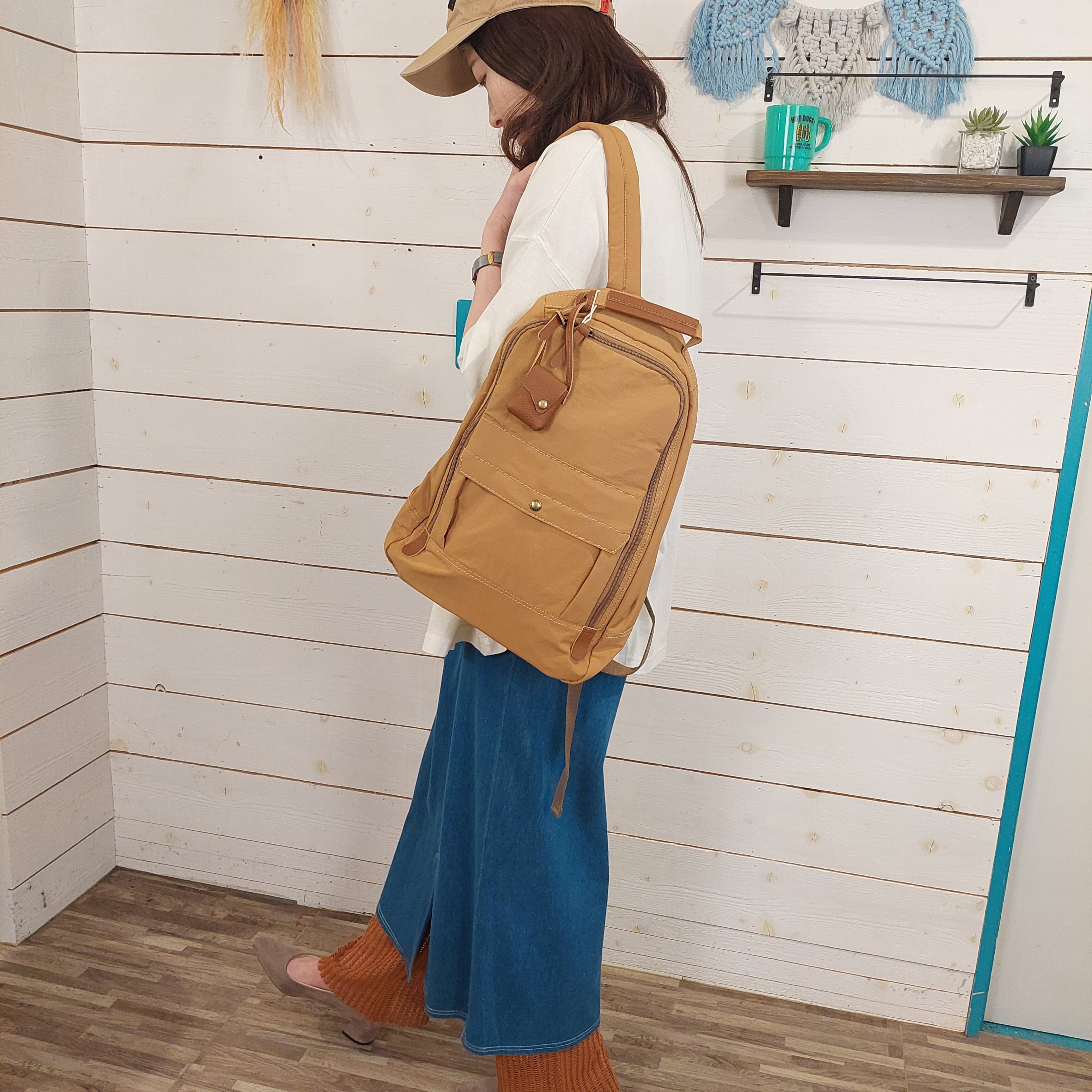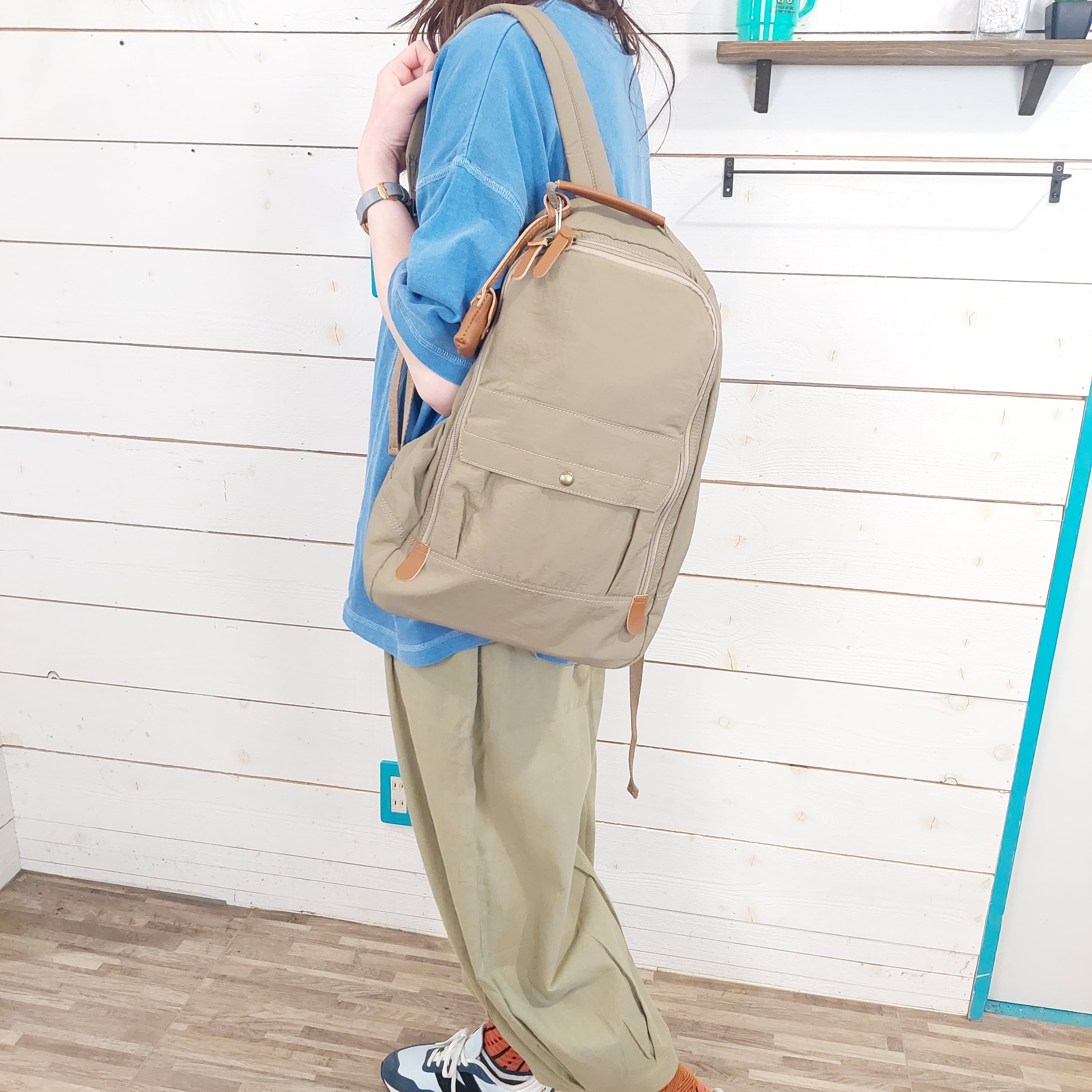 シンプルで主張しすぎないデザインとカラーはどんなコーディネートにもスッと馴染んでくれるから、通勤、通学など普段使いにピッタリ。丈夫なナイロン素材で使いやすく、ポイントに牛革を使用しているので見た目も大人っぽくおしゃれです。