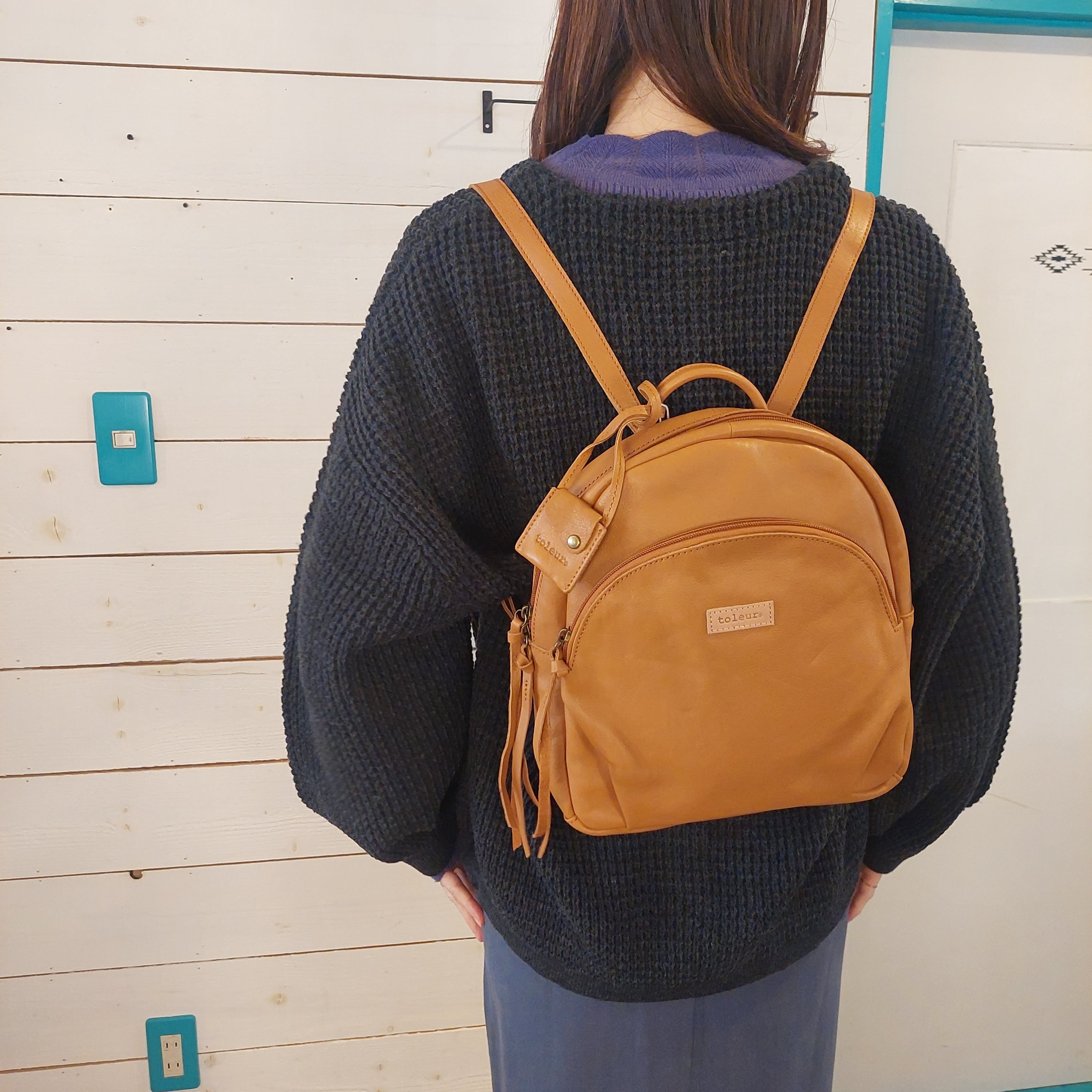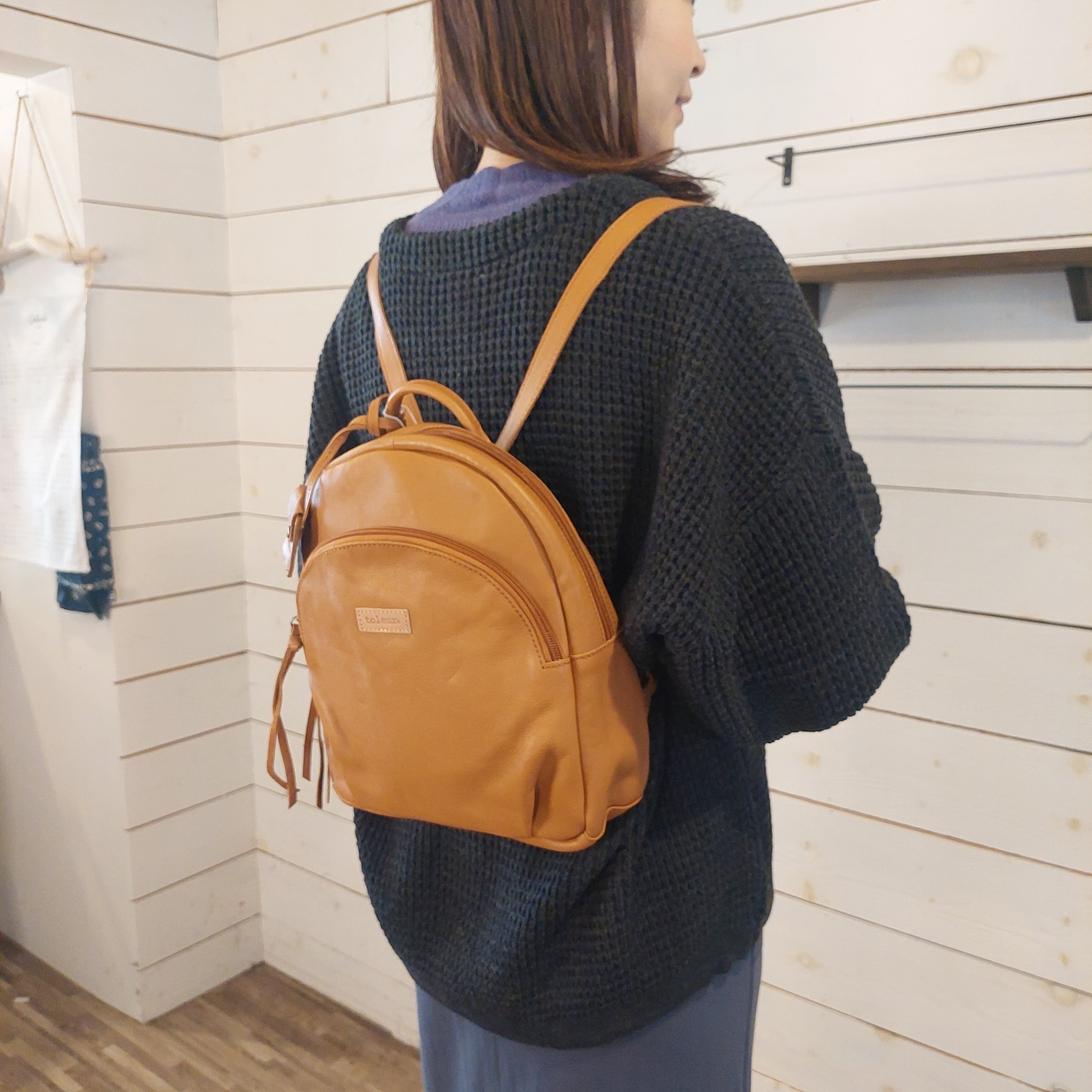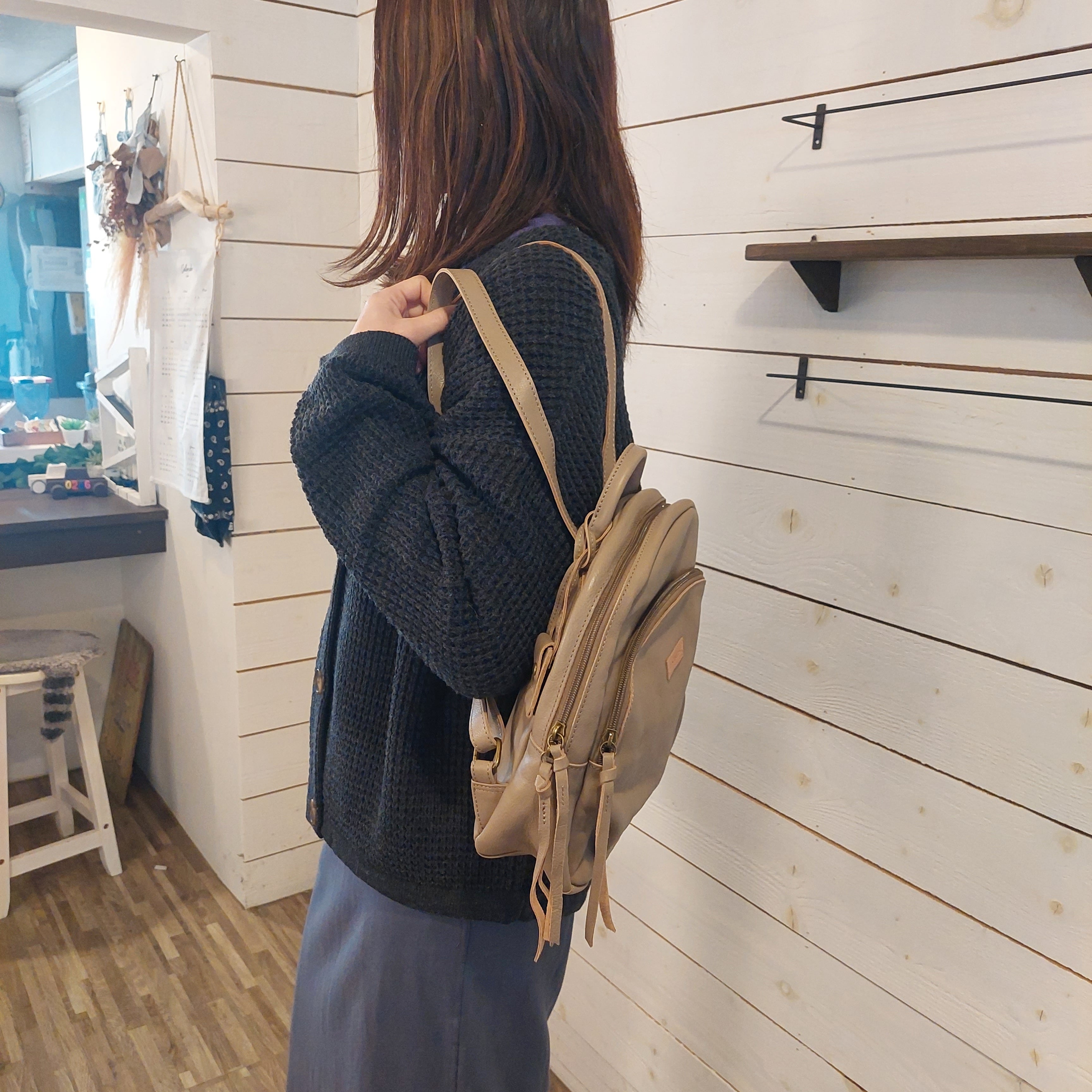 休日のお出掛けのお供に、ちょっぴりお洒落なリュックはいかがでしょうか♪