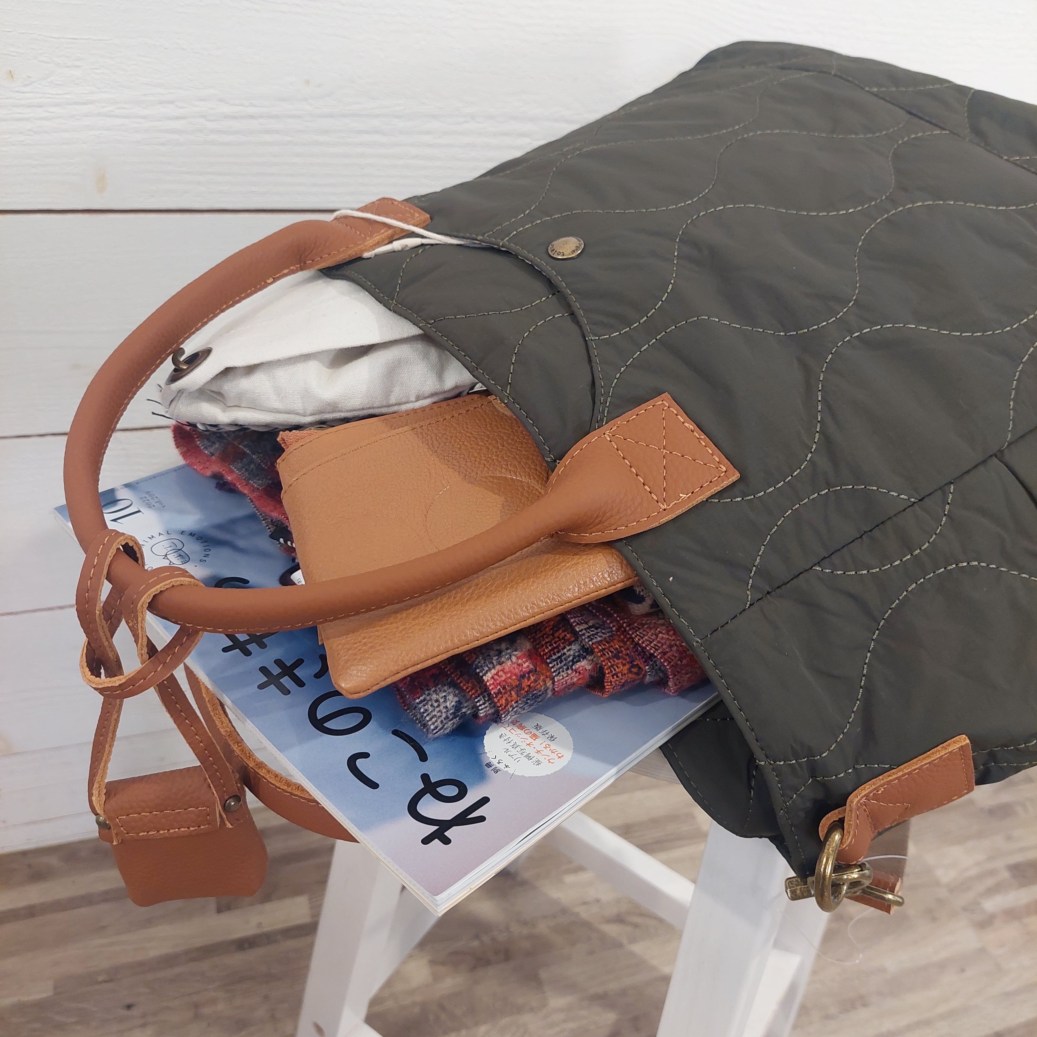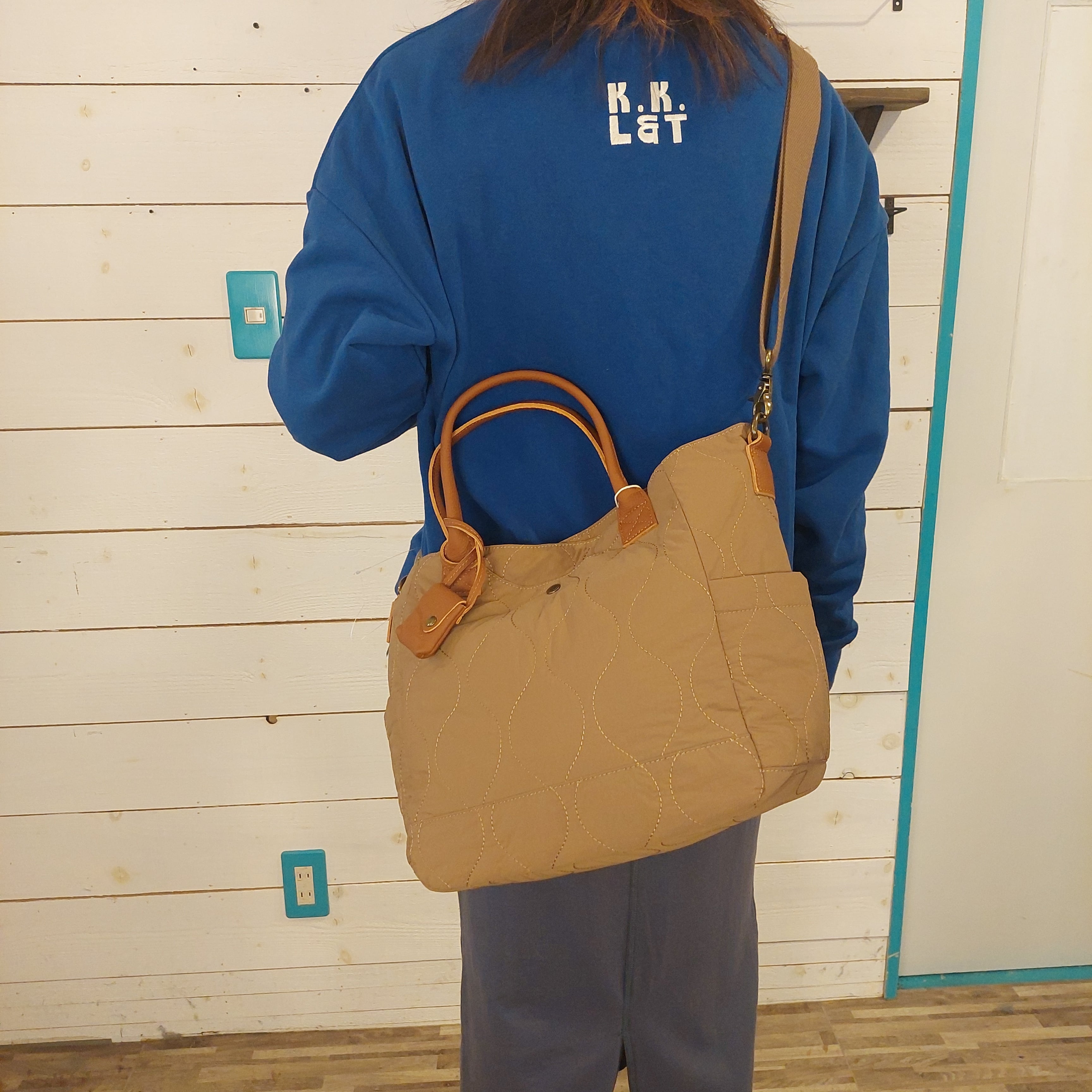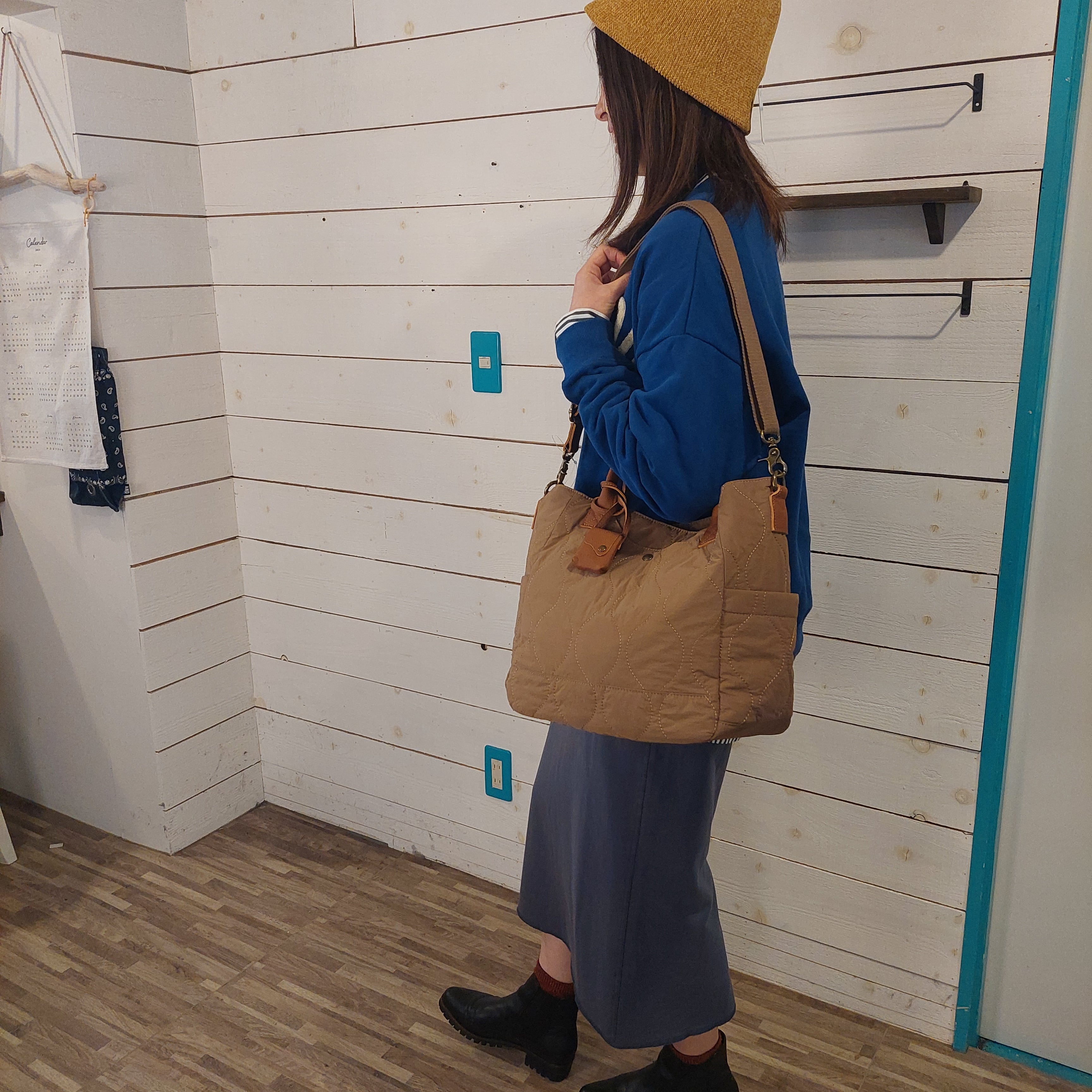 ・軽量で持ち運びやすさが特徴のナイロン生地にキルティング加工を施しました。