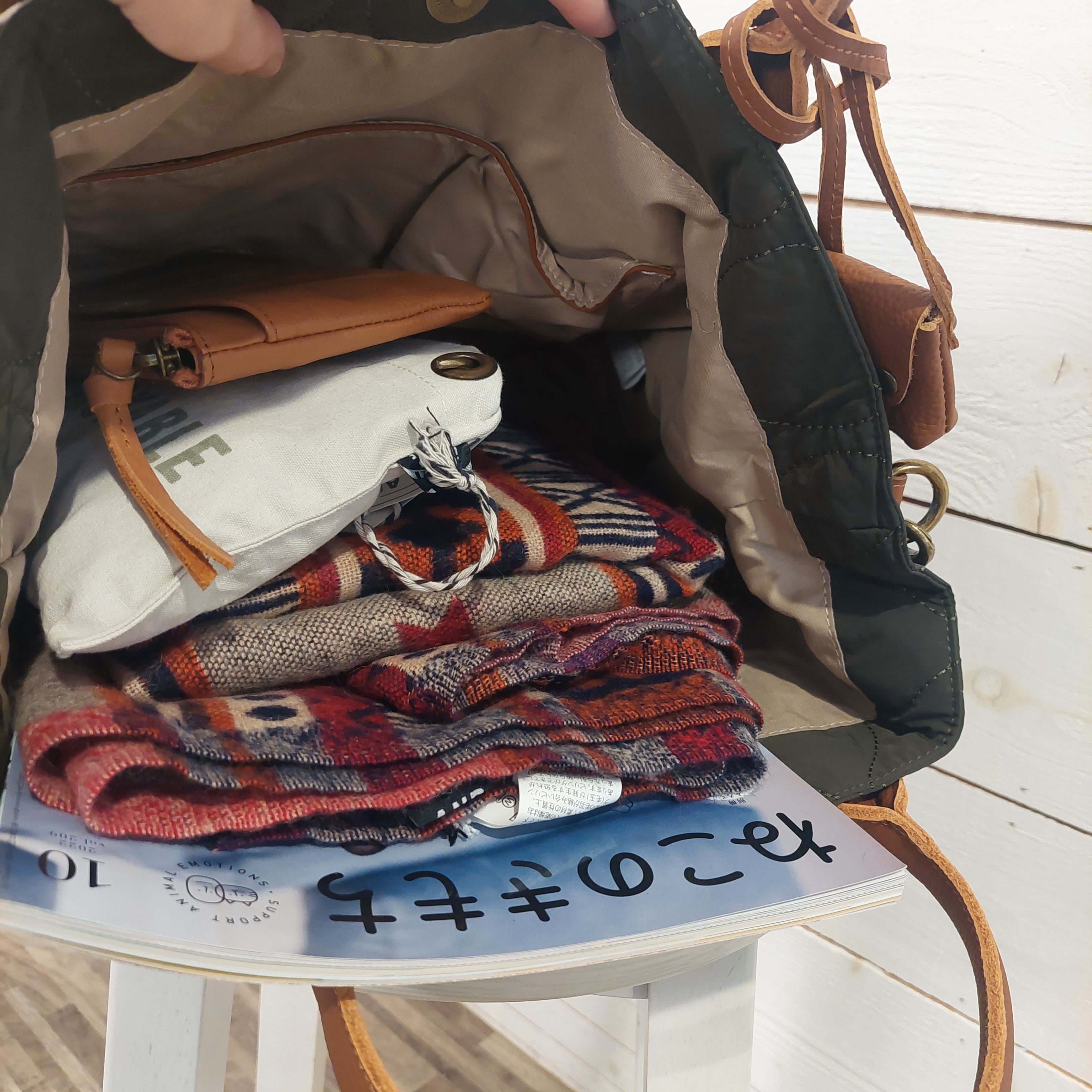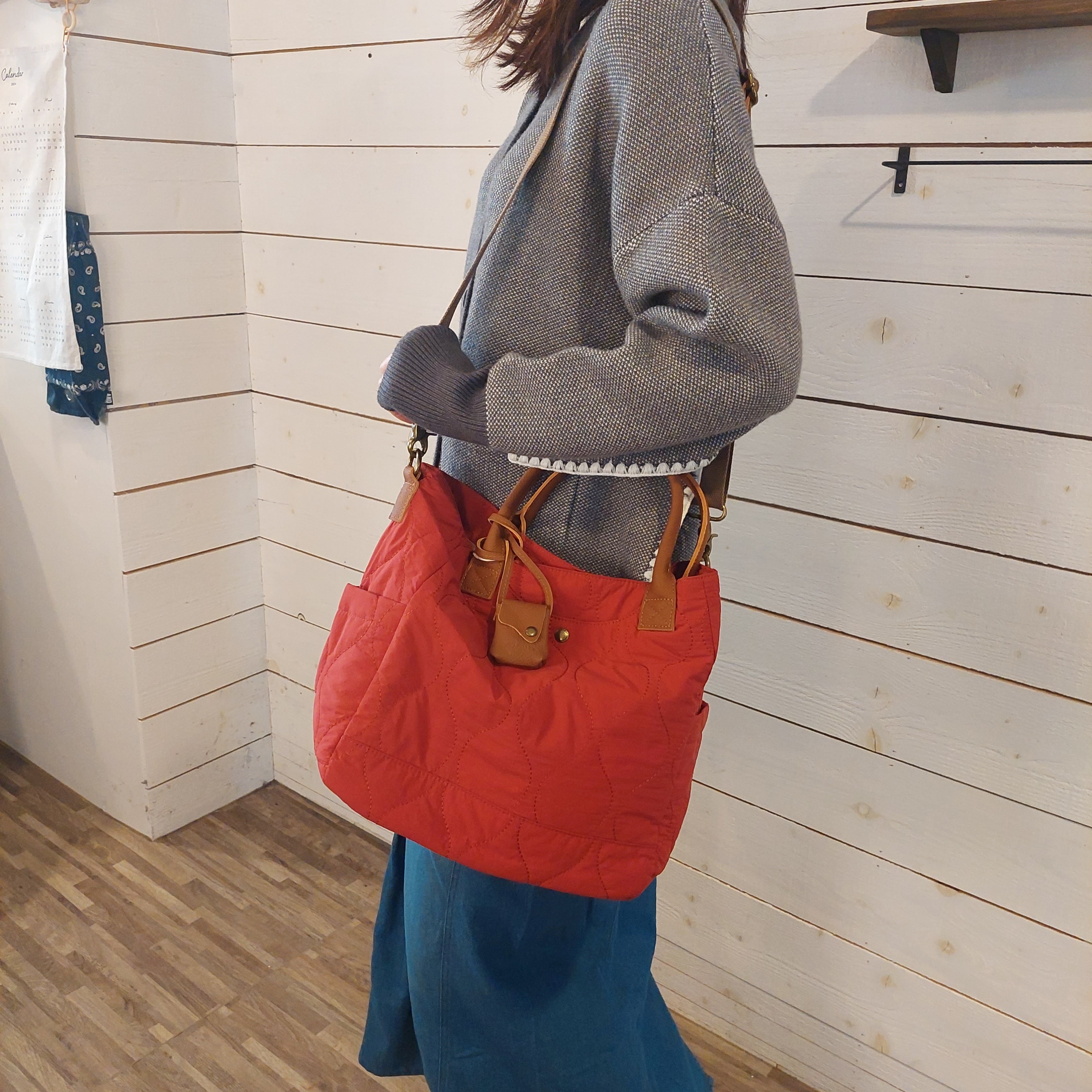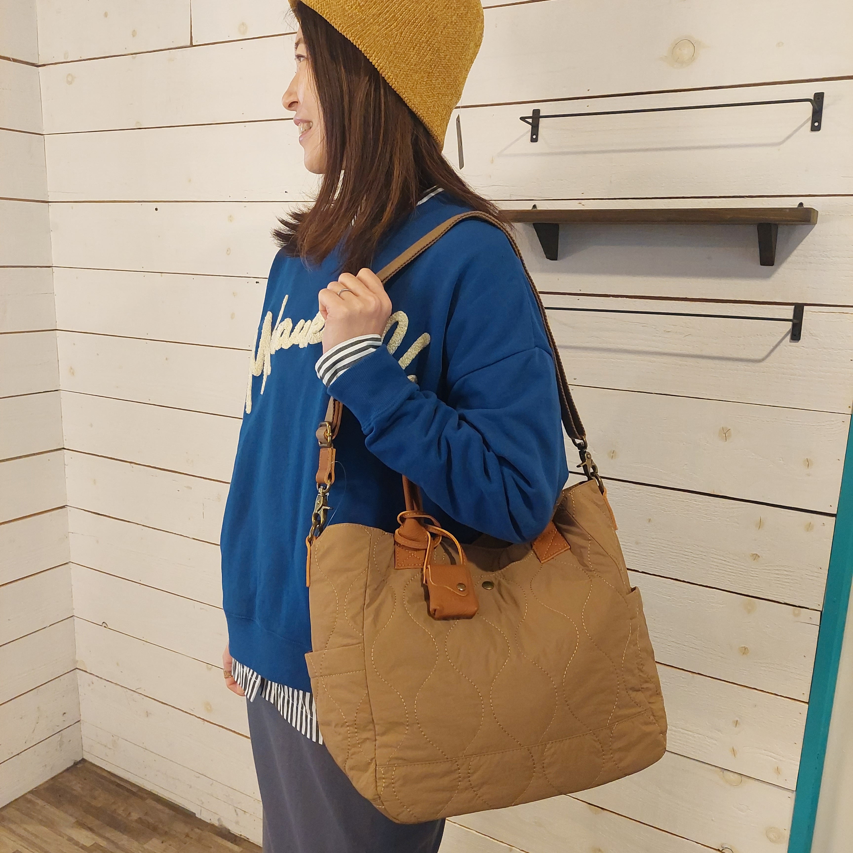 ・軽量で持ち運びやすさが特徴のナイロン生地にキルティング加工を施しました。